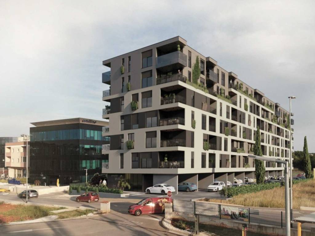 Fort Movidal is a land fortress located on the Monvidal hill in Pula. It was built by the Austrian Empire during the second half of the 19th century to protect the main port of its navy. The fort was located in Sector I of the Coastal Region of Pula (German: Küstenabschnitt Pola). It served for the defense of land and sea and was facing from the northeast to the southwest, and the range of its cannons was from 800 to 1,000 meters. Right in the Monvidal district, there is this larger residential building with a total of 6 floors. It is located right next to the Pula bypass, in the immediate vicinity of a large shopping center. It is only a few minutes away from the city center of Pula, while the proximity of the ring road provides a connection with the first Pula beaches and the Istrian upsilon. The apartments are located from the first to the sixth floor, while on the ground floor of the building there are parking spaces that each apartment owns. The building has a total of 90 residential units of different square footage. Each apartment is equipped with electric underfloor heating in the bathrooms, high-quality ceramics and laminate, Ariston Velis boilers, inverter air conditioners, burglar-proof entrance doors and internal white room doors. We offer apartments with one, two or three bedrooms. The property in question is located on the first floor and has a total living area of 57.13m2. It consists of an entrance hall with a wardrobe, a living room with a kitchen and a dining room, two bedrooms, a bathroom and a loggia. For more information about the apartment itself (floor plan, payment stages, deadlines), contact your agent! Dear clients, the agency commission is charged in accordance with the General Business Conditions: www.dux-nekretnine.hr/opci-uvjeti-poslovanja