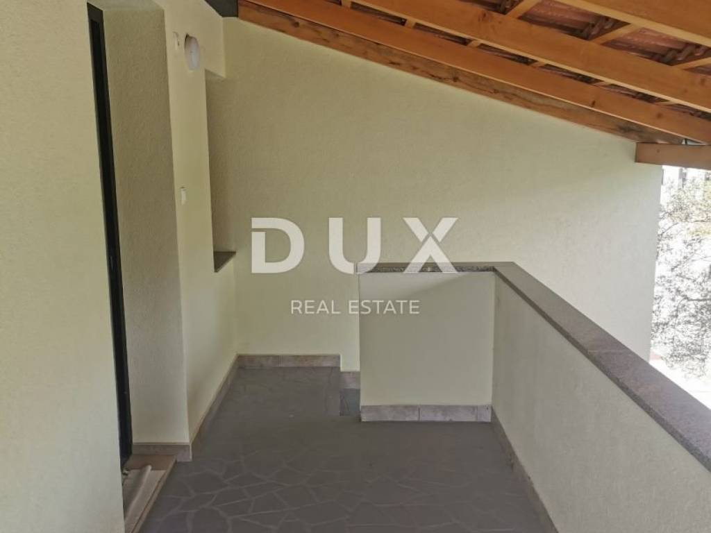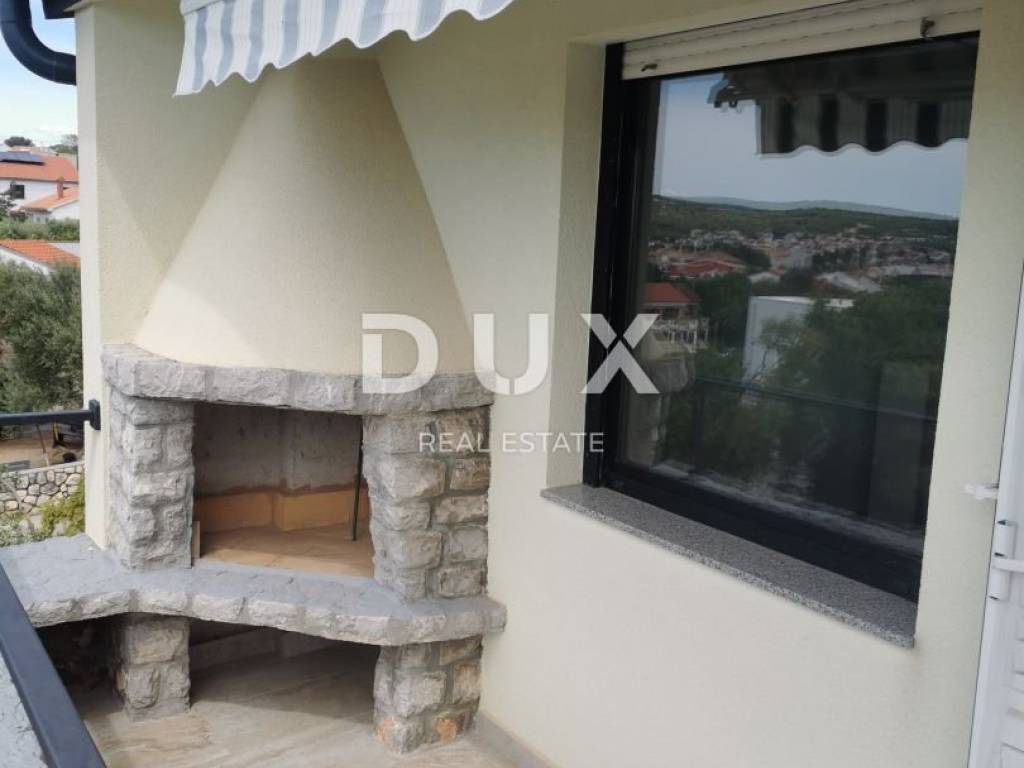 ISLAND OF KRK, CITY OF KRK - Apartment with a sea view On the island of Krk in the city of Krk, we offer this two-room apartment of 56 m2 in an attractive location. The apartment located on the first floor of a family house consists of a covered entrance with a terrace, an entrance hall, two bedrooms, a bathroom, a kitchen, a dining room, a living room with access to a terrace with a wonderful view of the city of Krk and the sea. Built-in fireplace/barbecue on the terrace. The apartment is partially furnished, air conditioning, aluminum joinery, awning on the terrace. The apartment has one parking space. This apartment has an attractive location, a beautiful view and proximity to all facilities. Only 350 meters from the sea and less than 500 meters from the city center. The apartment was used as a tourist rental and recorded high ratings on tourist platforms and above-average occupancy. Proper ownership documentation, real estate without encumbrances. Dear customers, the intermediary commission is charged according to the Terms of Business. www.dux-nekretnine.hr/opci-uvjeti-poslovanja.