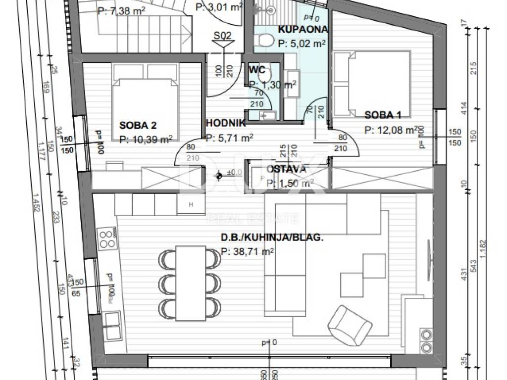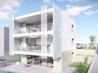 TOP LOCATION 200 meters from the sea, residential building with 3 residential units in the center of Krk. On the ground floor of a unique, quality-built building, there is an apartment with a living area of 75 m2, which offers a combination of practicality and comfort. With a spacious hallway, storage room, pantry, bathroom, separate toilet, two bedrooms and an "Open-space" concept kitchen, dining room and living room, this apartment has everything you need for a pleasant stay in the city of Krk. The living room leads to a covered terrace of 27 m2, an ideal place to relax and enjoy the fresh air. It is equipped with air conditioning in all rooms and underfloor heating with separate regulators in the rooms. High-quality CORTIZO ALU carpentry, high-quality floor and wall coverings and high-quality sanitary ware add a luxurious touch to this modern apartment. With two secured parking spaces, you will have a practical solution for parking your vehicle. The infrastructure will be completely connected and preparations will be made for video surveillance. The completion of the works is planned for June 2024, and if you want to take over the furnished apartment, you can expect handover by professional interior designers in the fall of 2024. Interior renderings available on request. *** Dear clients, the agency commission is charged in accordance with the General Business Conditions: www.dux-nekretnine.hr/opci-uvjeti-poslovanja