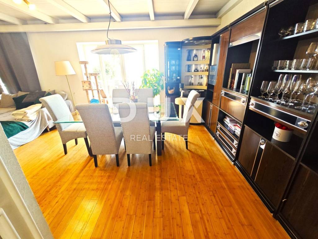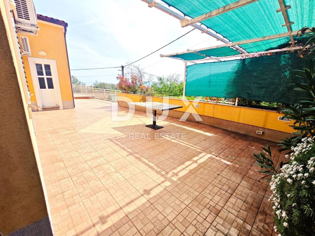 We are mediating the sale of a beautiful detached house in Poljane, not far from Ičić. The house is attractive and regularly maintained, located in a quiet part of the village. It is surrounded by greenery, and the location offers a beautiful view of the sea. The property consists of a ground floor and one floor. On the ground floor there is a garage of 40m2, a boiler room and a tavern of 80m2. On the first floor there is an apartment of 163 m2 with a terrace that surrounds the entire floor. From the terrace you enter the garden, which is tastefully decorated. The apartment consists of three bedrooms, two bathrooms, hallway, kitchen with dining room and a spacious living room with a view of the sea. The apartment is nicely decorated, and the space is very functional. The owners also have project documentation for the swimming pool. Very attractive property! Dear clients, the agency commission is charged in accordance with the General Business Conditions: www.dux-nekretnine.hr/opci-uvjeti-poslovanja