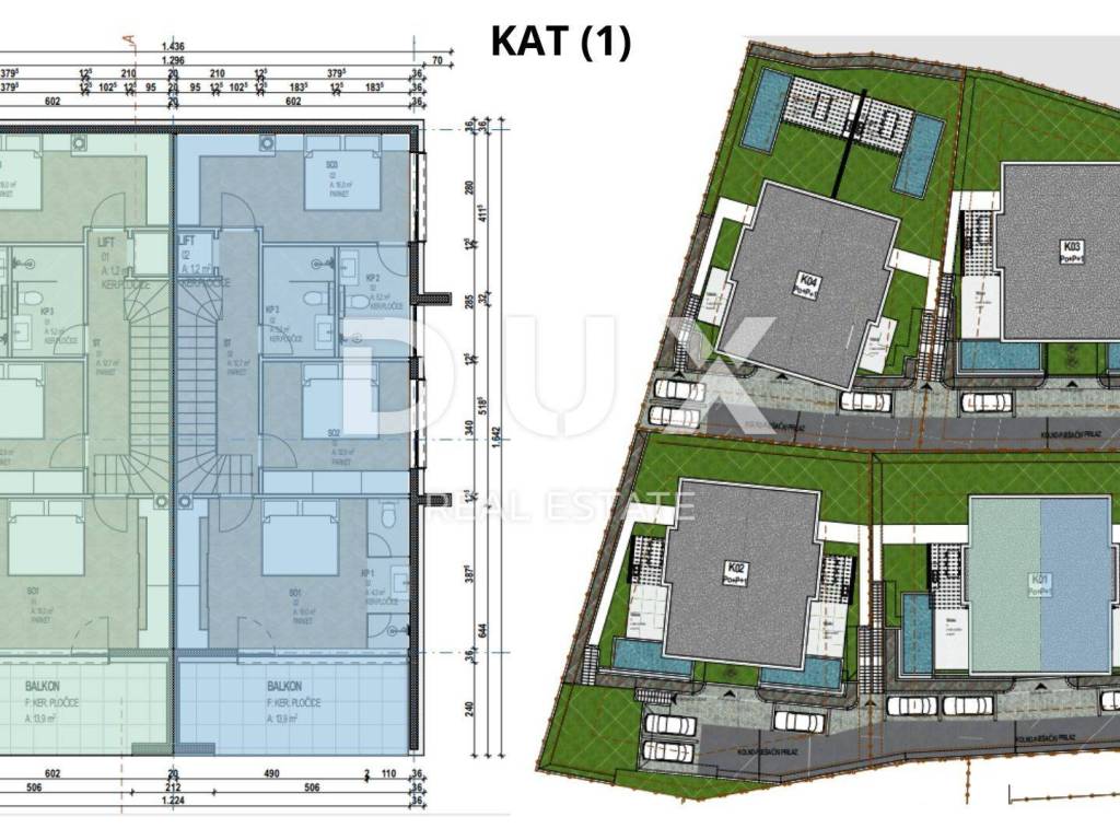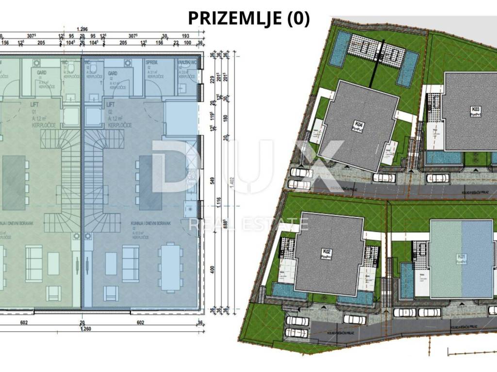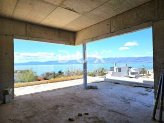 Impressive new construction - semi-detached house with two three-story apartments in Kostrena, with a panoramic view of the sea. Located in an excellent location, 200 meters as the crow flies from the coast of the Adriatic Sea, it impresses with its design, spacious interior, high-quality construction and unique elements. The apartment extends through the basement, ground floor and first floor, and the garden has outdoor parking, a swimming pool, a summer kitchen and beautiful terraces with enchanting views. The basement of 76.64 m2 is not just a classic parking space, it consists of a garage for two cars, a tavern with a chimney, a technical room/house and an internal elevator that connects all floors. The ground floor has an extraordinary combination of kitchen, living room and dining room that creates a central space for socializing by the fireplace and has direct access to a large terrace and outdoor space, where the 24 m2 overflow pool and outdoor kitchen are located. On the ground floor there is also a practical wardrobe at the entrance and two modernly equipped bathrooms. The area of the ground floor is 74.22 m2. A modern internal staircase connects the ground floor with the first floor, with a total area of 90.47 m2, where there are three bedrooms and three bathrooms and two balconies - an ideal place to relax at sunset. The property offers top-quality materials and equipment, such as underfloor heating with a heat pump, hidden ceiling air conditioners, ALU carpentry from a quality manufacturer, burglar-proof doors, and it is worth mentioning the ceiling heights of > 300 cm, which give the space a special feeling of luxury, comfort and spaciousness. . Access is provided directly from the newly asphalted road, with complete infrastructure (water, electricity, sewage, optics, telephone). Documentation and additional information available on request. TOP REAL ESTATE! The search for an exceptionally high-quality, modernly designed and functionally designed property could end right here, in Kostrena, with a panoramic view of the Adriatic Sea! *** Dear clients, the agency commission is charged in accordance with the General Business Conditions www.dux-nekretnine.hr/opci-uvjeti-poslovanja