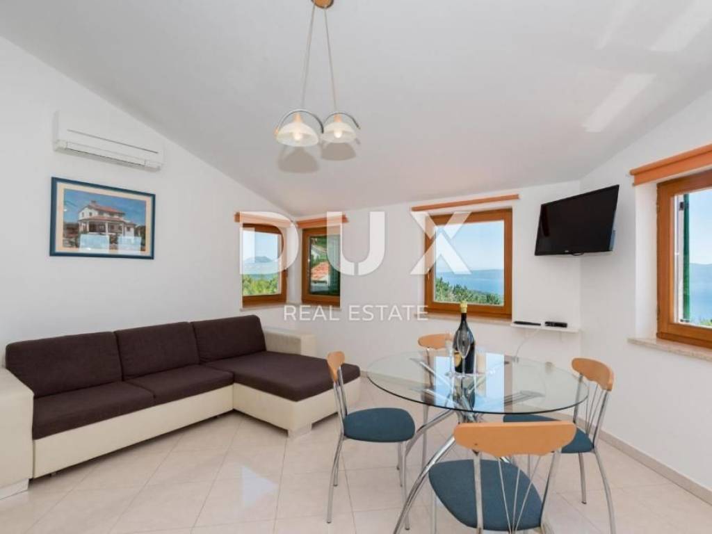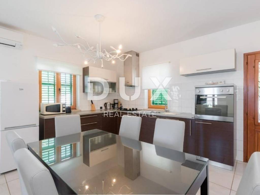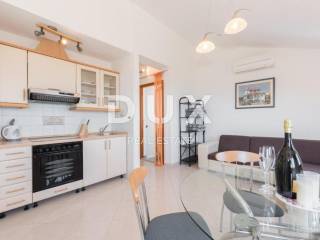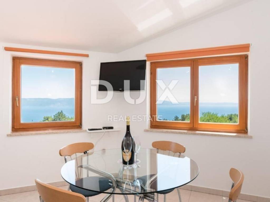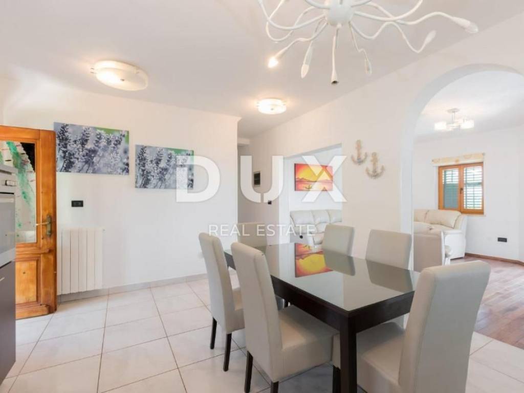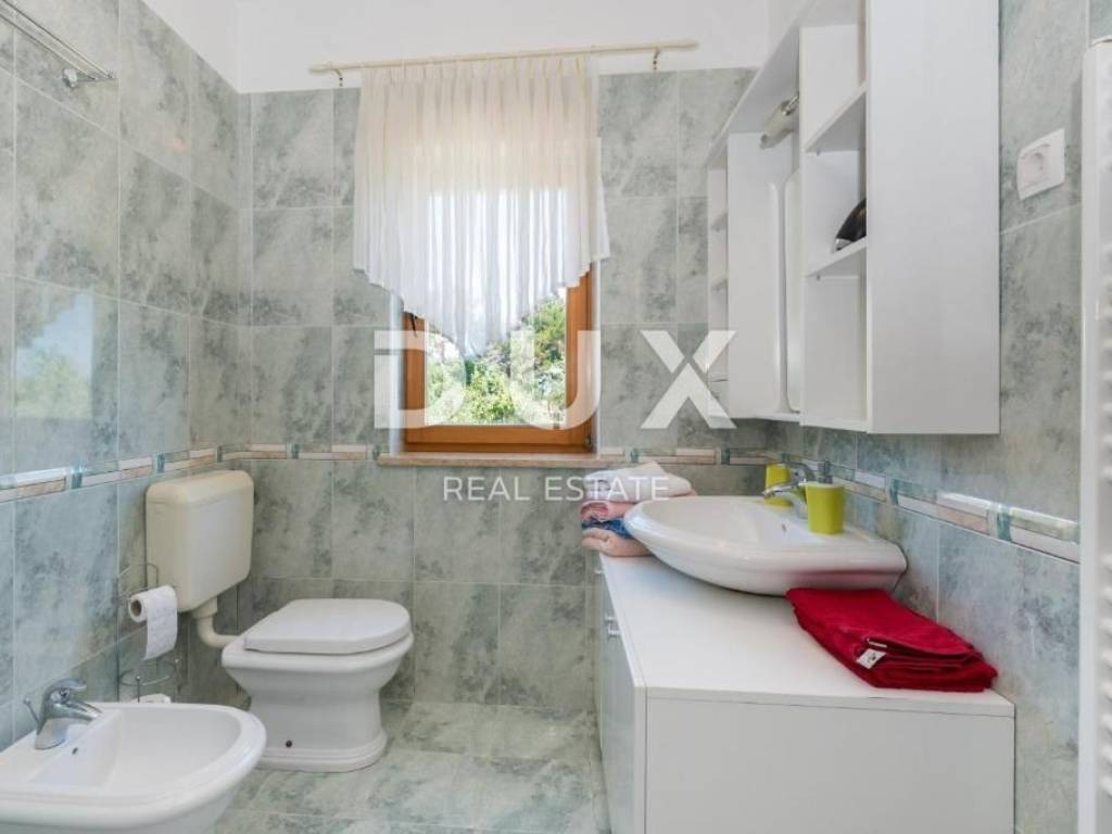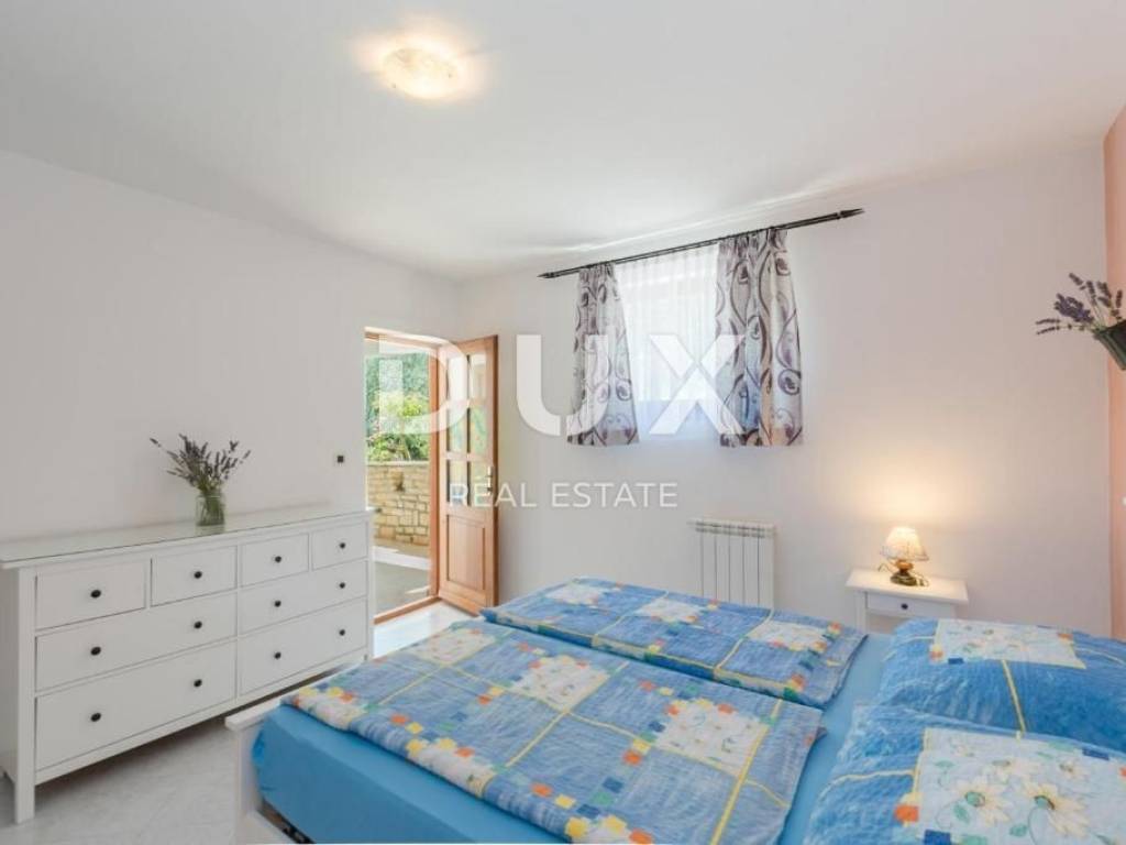Rabac is located on the east coast of Istria and is 5 km from Labin. It is decorated with crystal clear sea and colorful nature, springs, waterfalls, promenades and other hidden pearls. In recent years, Rabac has been a very important tourist center in that part of Istria; attracts a large number of tourists from all over the world, who stay in beautiful hotels and nearby apartments. In the immediate vicinity of Labin, there is a spacious house for sale, first row to the sea, with the most beautiful view of the sea and the island of Cres! The house consists of a basement, ground floor and first floor and has a total area of 200 m2. Basement: In the basement, which covers an area of 70.5 m2, there is an equipped kitchen and bathroom, a room with a fireplace and a large space for socializing with board games. In the basement there is also a separate room that serves as a studio apartment, from which there is access to a terrace with a pool with a beautiful view of the sea. There is also a boiler room and a storage room in the basement. Ground floor: On the ground floor there is an apartment consisting of a hallway, kitchen with dining room, living room, two bedrooms, bathroom, storage room and a covered terrace with a fantastic view of the sea. Floor: On the first floor we find another apartment consisting of an entrance hall, hallway, bathroom, bedroom and living room with kitchen and terrace. The house is equipped with oil central heating and air conditioning. The 700 m2 yard offers enjoyment at the pool and spending time with the family at a family lunch with a barbecue and outdoor dining area. There is also the possibility of buying an additional 533 m2 of construction land, which is located right next to the house and offers the possibility of building another house or other facilities. The price of the house with additional land is 880,000 euros. Do not miss the opportunity and become the owner of this house in an extraordinary location, first row to the sea, which you can use for tourist purposes as it has been cleared so far. Dear clients, the agency commission is charged in accordance with the General Business Conditions: www.dux-nekretnine.hr/opci-uvjeti-poslovanja