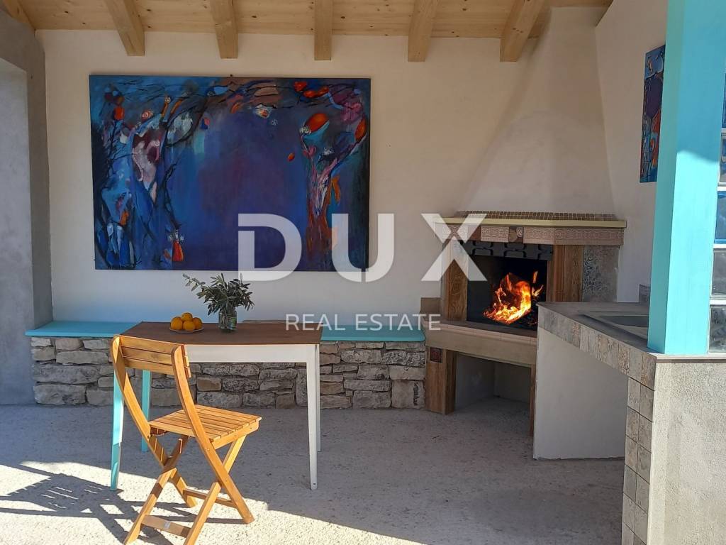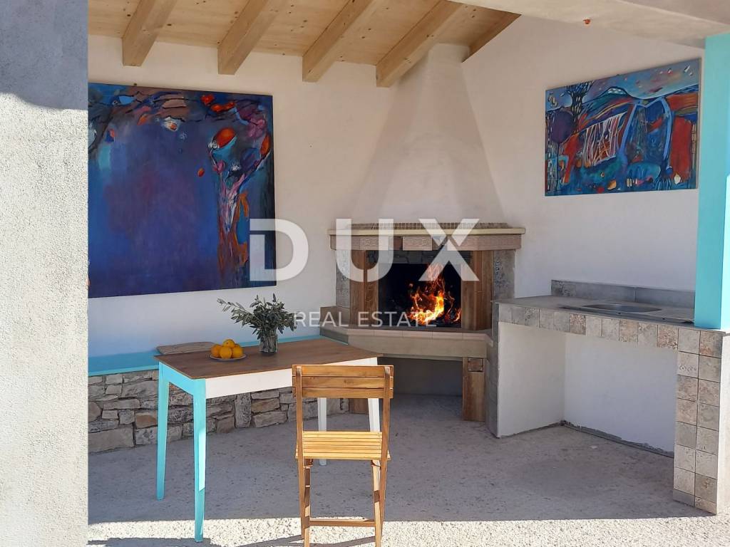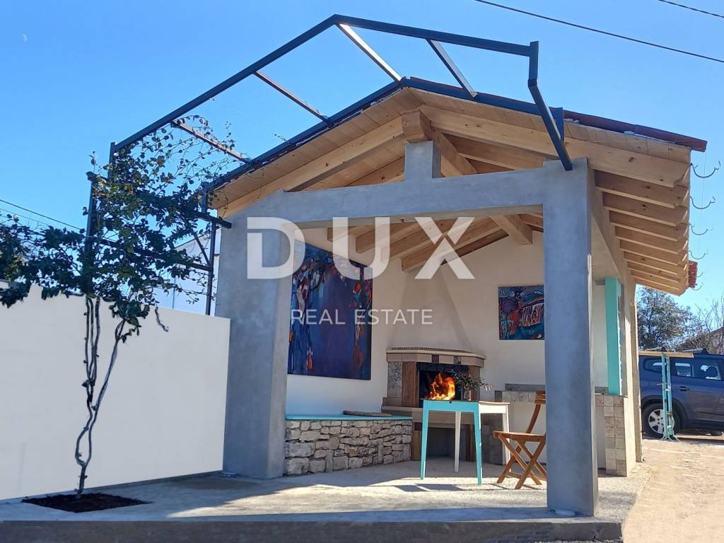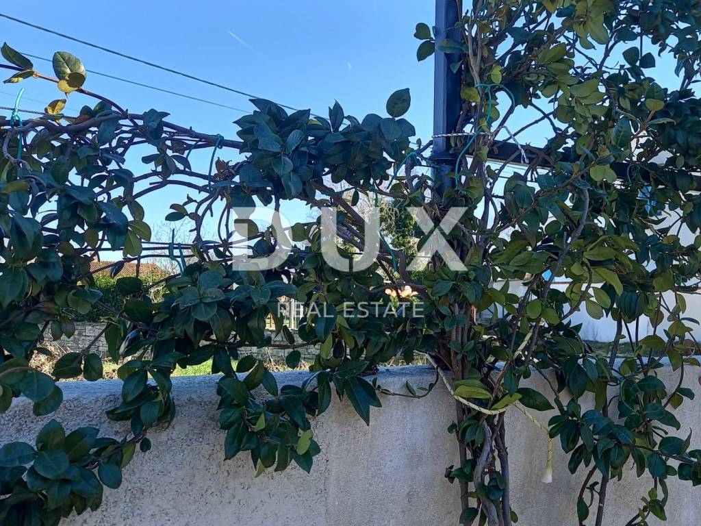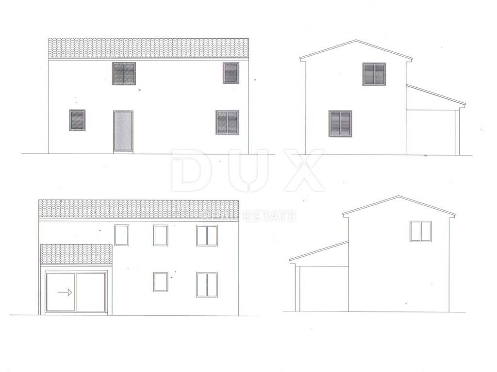 Zemljište s izgrađenom kućom u roh-bau fazi kuća pod krovom, ožbukana izvana, postavljena vanjska stolarija, iskopan bazen, septička u funkciji, izgrađena vanjska kućica s kaminom i kompletirani ogradni zidovi.