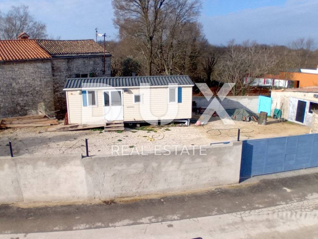 Na zemljištu se trenutno nalazi i mobilna kućica dimenzija 3x8 m, potpuno opremljena i spojena na septičku jamu. Kupac ju može dodatno otkupiti uz nadoplatu.
