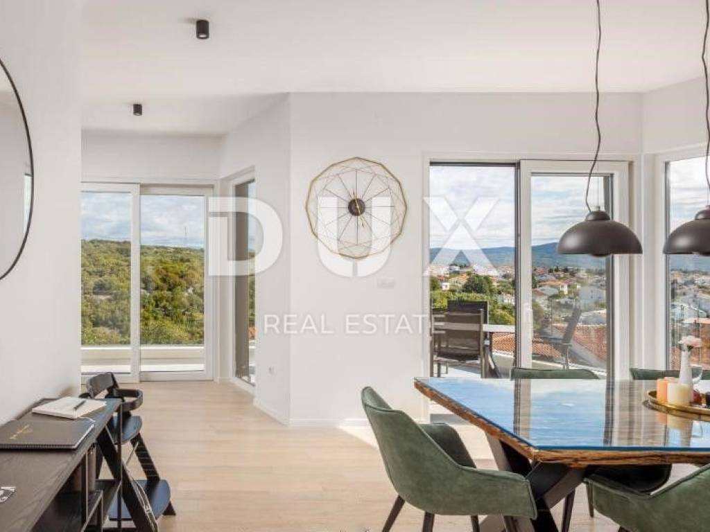 On the island of Krk, in the city of Krk, we offer this furnished three-room apartment with a large balcony and a beautiful view of the city of Krk and the sea. It is located on the second floor of a residential building. The apartment has a living area of 84 m2, while the terrace is 30 m2. The apartment consists of three bedrooms, two bathrooms, a kitchen and a large living room that has been converted into a spacious dining room and a balcony. The apartment has two parking spaces. Less than 500 meters from the city center and the first beaches, and all other facilities (school, kindergarten, shopping centers, restaurants) nearby. This apartment stands out with its spacious terrace and a beautiful view of the sea and the city itself. Only one bedroom does not have a sea view. The apartment is used as a tourist rental and has above average occupancy. The apartment is competently furnished and ready to move in immediately. The documentation is in order, the property is free of encumbrances.