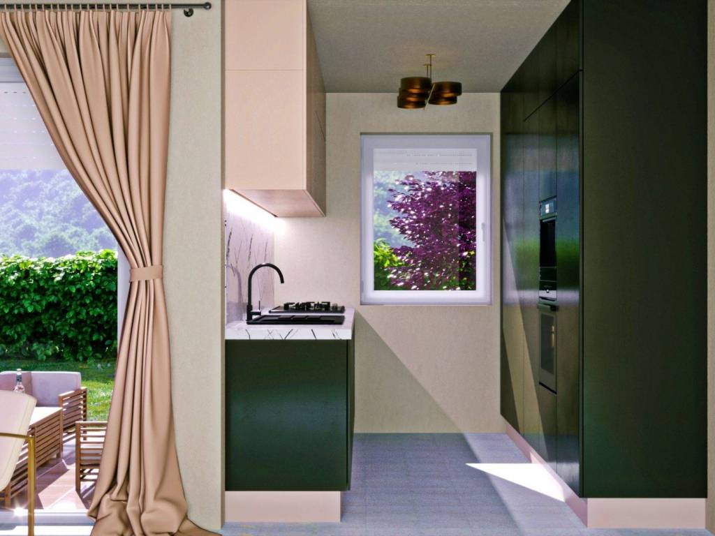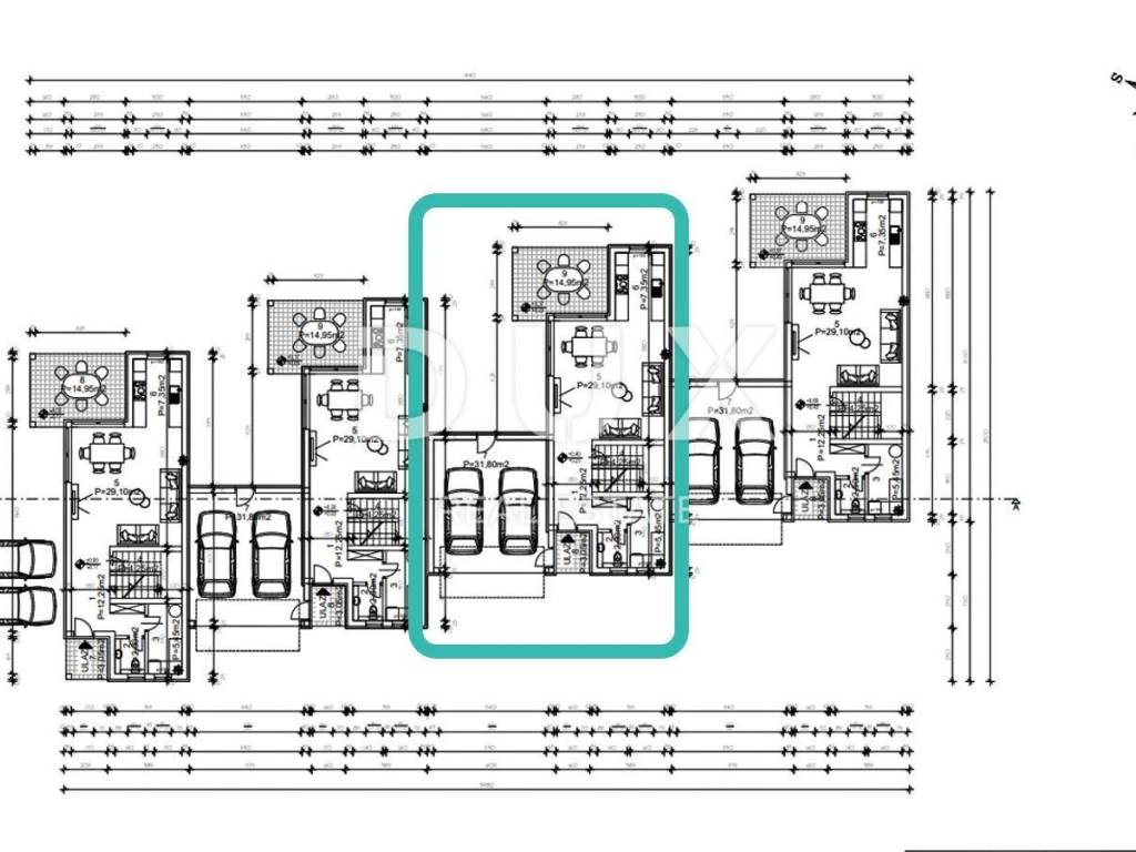 On the southeastern coast of Istria, where green hills meet the sea, where nature and heritage meet, there are two towns of similar size but with different but mutually complementary characters - Labin and Rabac. The picturesque town of Labin rises on a hill 320 meters high, only five kilometers from the white pebble beaches in Rabac. Intertwined with rich history and mining that marked this region, Labin, which was declared an independent republic for a short time, is today a fascinating city of contradictions; old and new, history and present, tourism and art. Not far from the town of Labin, a house of modern design with a garage is for sale. It is surrounded by nature, family houses and holiday homes and offers a perfect balance of rural surroundings and proximity to urban amenities. In addition to the convenient location, the property is distinguished by the quality of construction and modern design, which is characterized by a regular geometric form and regular lines in the space, as well as an interior with a compact floor plan and airy space. The house is designed as one residential unit that extends over two floors; ground floor and first floor. The ground floor consists of an open concept space that unites the kitchen, dining room and living room with access to a covered terrace, a guest toilet and a technical room. The ground floor plan is complemented by a two-car garage. The floor consists of two bedrooms. Both rooms have their own bathrooms and one room has its own terrace. The yard is landscaped and horticulturally landscaped and fenced. The location, structure and comfort make this property an ideal opportunity for a peaceful family life as well as an investment for the purpose of tourist rental. The stated price refers to the turnkey phase with installed sanitary ware and a kitchen with appliances. Dear clients, the agency commission is charged in accordance with the General Business Conditions: www.dux-nekretnine.hr/opci-uvjeti-poslovanja