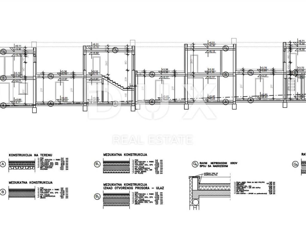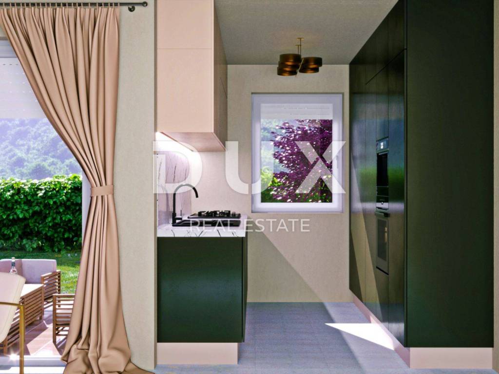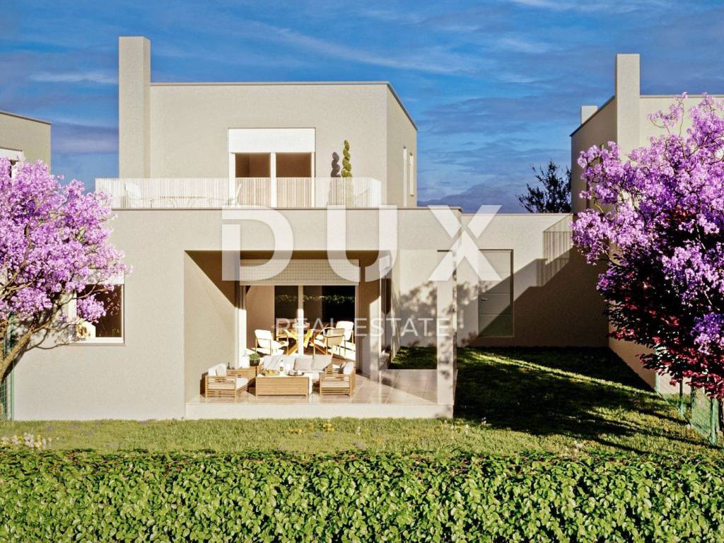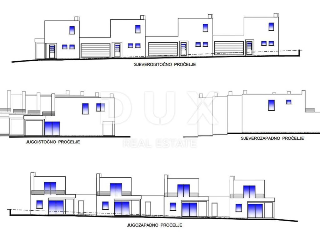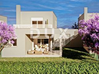 On the southeastern coast of Istria, where green hills meet the sea, where nature and heritage meet, there are two towns of similar size but with different but mutually complementary characters - Labin and Rabac. The picturesque town of Labin rises on a hill 320 meters high, only five kilometers from the white pebble beaches in Rabac. Intertwined with rich history and mining that marked this region, Labin, which was declared an independent republic for a short time, is today a fascinating city of contradictions; old and new, history and present, tourism and art. Not far from the town of Labin, there is a new building with a modern design for sale. It is surrounded by nature, family houses and holiday homes and offers a perfect balance of rural surroundings and proximity to urban amenities. In addition to the convenient location, the property is distinguished by the quality of construction and modern design, which is characterized by a regular geometric form and regular lines in the space, as well as an interior with a compact floor plan and airy space. The house is designed as one residential unit that extends over two floors; ground floor and first floor. The ground floor consists of an open concept space that unites the kitchen, dining room and living room with access to a covered terrace, a guest toilet and a technical room. The ground floor plan is complemented by a two-car garage. The floor consists of two bedrooms. Both rooms have their own bathrooms and one room has its own terrace. The yard is landscaped and horticulturally landscaped and fenced. The location, structure and comfort make this property an ideal opportunity for a peaceful family life as well as an investment for the purpose of tourist rental. The stated price refers to the turnkey phase with installed sanitary ware and a kitchen with appliances. Dear clients, the agency commission is charged in accordance with the General Business Conditions: www.dux-nekretnine.hr/opci-uvjeti-poslovanja
