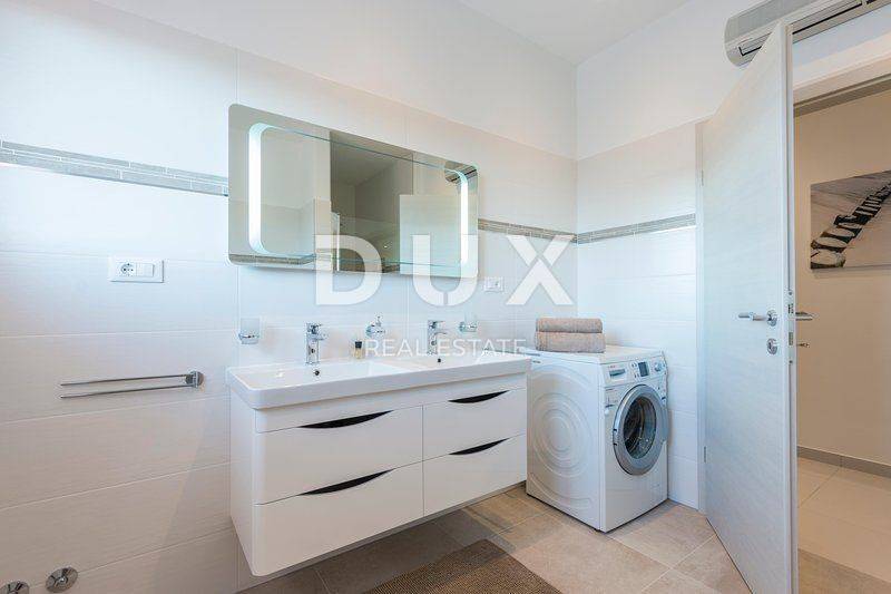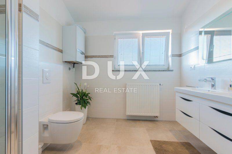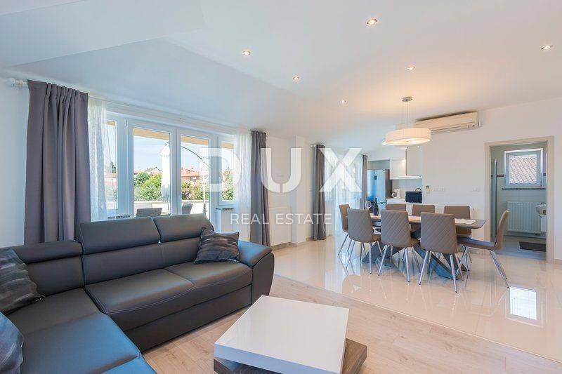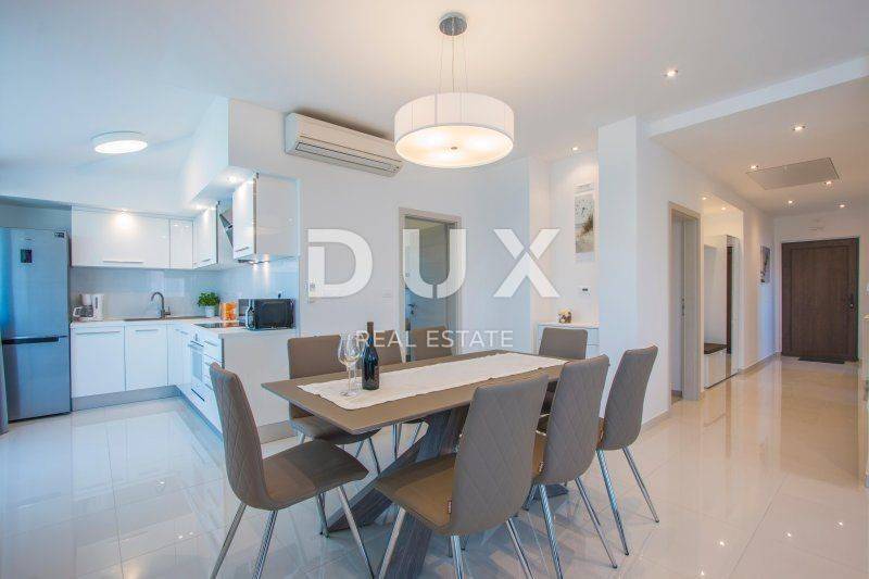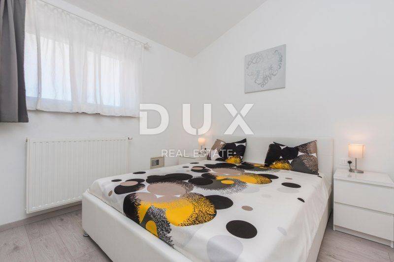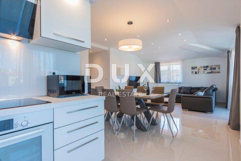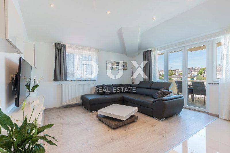 ISTRIA, MEDULIN Luxurious apartment in a great location! Medulin is one of the representatives of Istrian tourism and is one of the twenty most famous bathing names on the Adriatic. The dynamic development of Medulin rests on the valorization of the natural basis and physiognomy of the tame landscape. Every visitor to Medulin can find a real oasis of peace and quiet here, rich in the landscapes of this Mediterranean landscape, but at the same time they can spend a very dynamic and content-rich vacation here. This residential building with several apartments is located only 300m from the town center. On the second floor is the property in question, the total living area of which is 94.72m2. It consists of an entrance hall, living room with kitchen and dining room, two spacious bedrooms, two bathrooms and a large balcony. The apartment is fully equipped and is being sold as such. The apartment has gas central heating, while the cooling is regulated by an inverter air conditioner. An excellent opportunity for investment in a place like Medulin, which is a safe location for renting apartments for tourist purposes, and through that a safe return on investment. Dear clients, the agency commission is charged in accordance with the General Business Conditions: www.dux-nekretnine.hr/opci-uvjeti-poslovanja