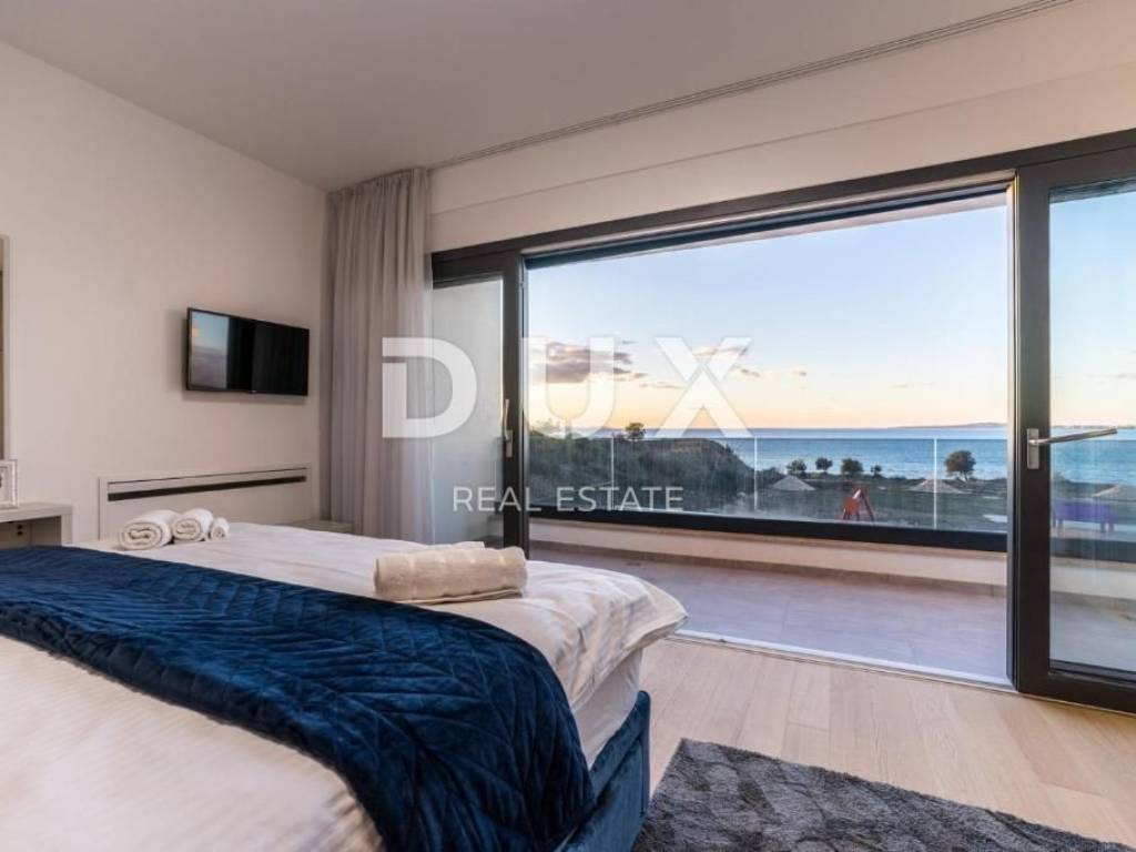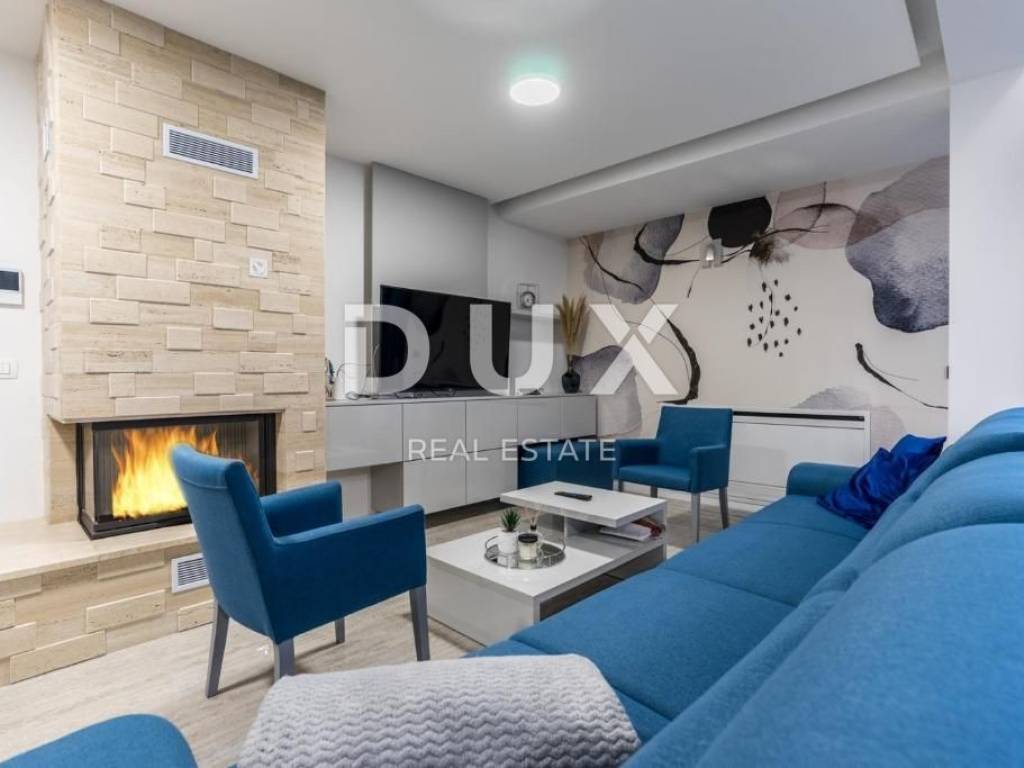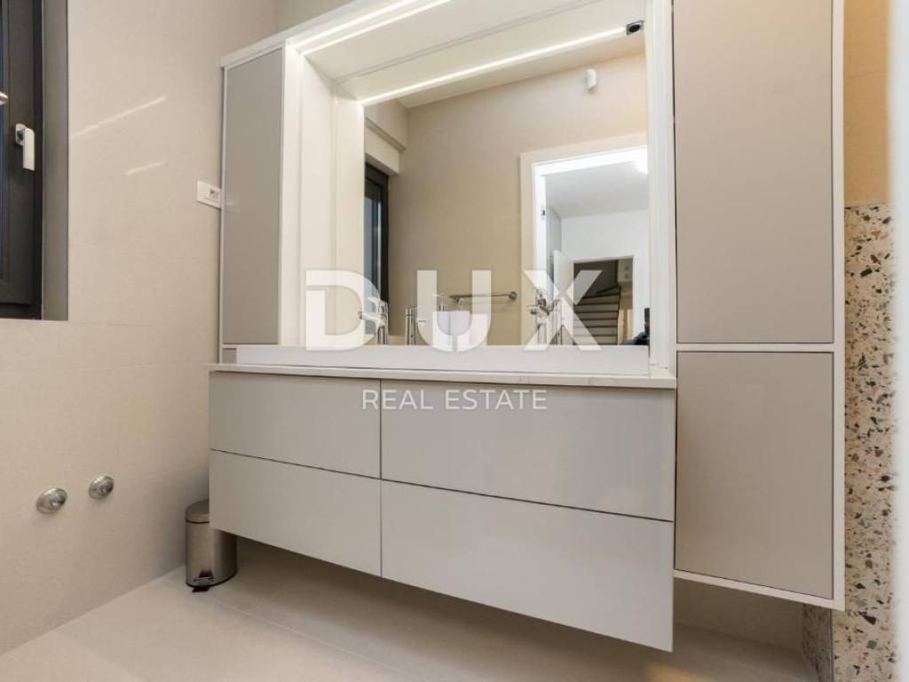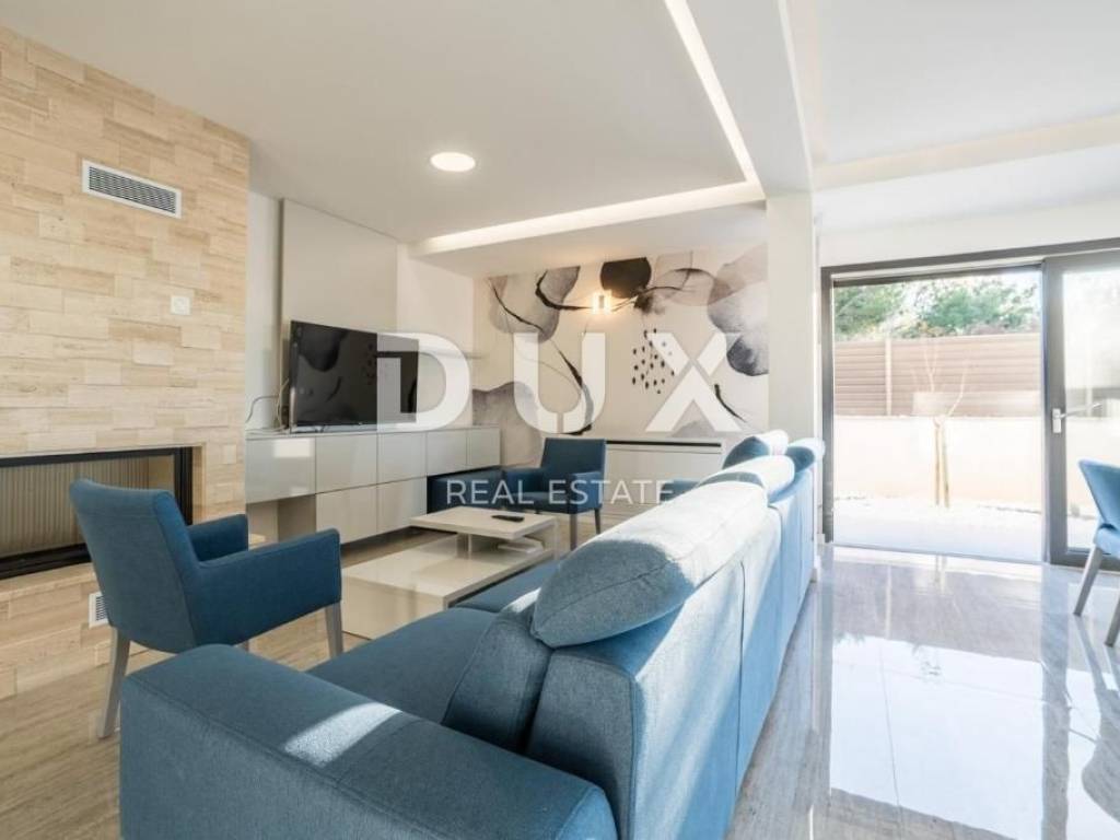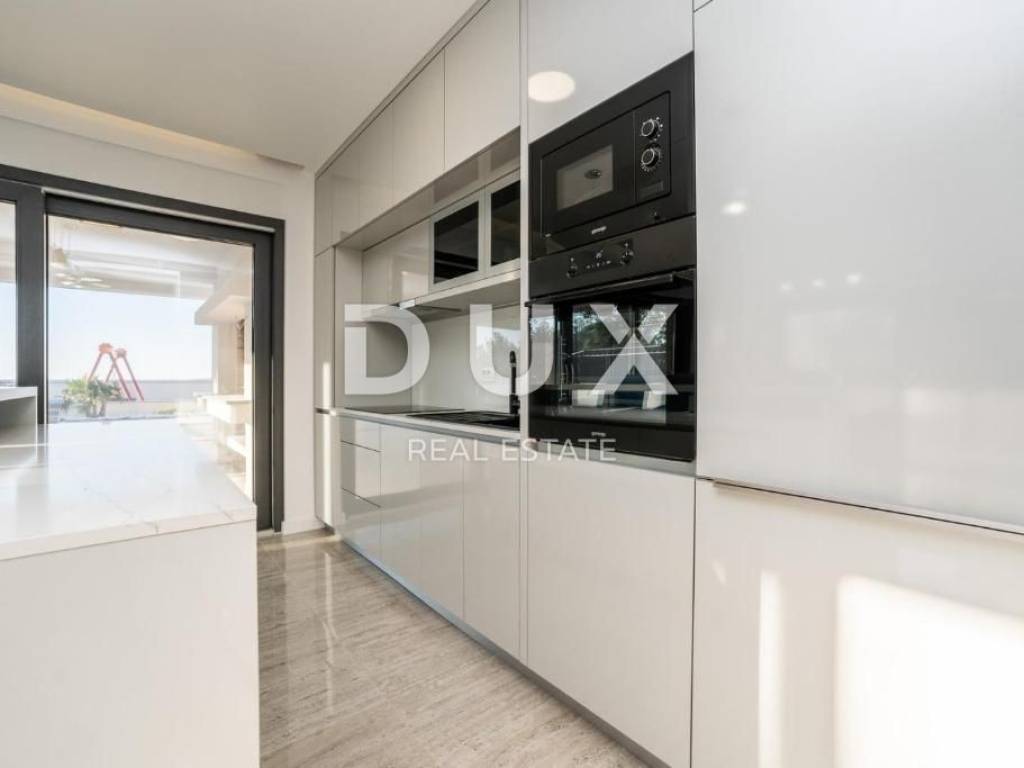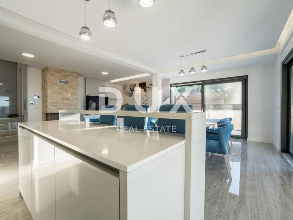 The town of Zaton is an extremely popular tourist destination, given the beautiful beaches in the area and the proximity of the urban center of Zadar, which is only 15 km away. Right next to Zaton is the historic town of Nin, known for its many interesting historical and cultural monuments dating back to prehistoric times. For example, you can see the remains of the Roman forum there, and the remains of medieval and ancient Croatian war and merchant ships called kondurs were also found in Nin. In Nin there is also the longest sandy beach in Croatia called Kraljičina plaža. In the Nin lagoon there is also a locality with healing mud Peloid, whose beneficial properties were known even in Roman times. For sale is a luxurious villa in Zaton, just 100 meters from the sea. Its garden, designed with the same precision, emphasizes functionality and comfort. This villa offers an enchanting view of the sea and the surrounding greenery from anywhere inside it - from the ground floor, through the upper floor to the roof terrace. The total area of this property is 520 m2, including 194.23 m2 of living space, 293 m2 of garden, a children's playground of 62 m2 and a 30 m2 swimming pool. The interior of the villa is spread over two floors. The ground floor contains a living room with a dining room and a kitchen fully equipped with all appliances and accessories, a toilet and a storage room. Large glass sliding walls allow access from the dining room and kitchen to a spacious covered terrace with a large barbecue, next to which there is a heated swimming pool equipped with deckchairs and umbrellas. The courtyard near the pool also offers an outdoor shower, while a separate children's playground is equipped with a soft floor to ensure safety during children's activities. A staircase lined with quality oak wood 4 cm thick leads to the first floor, where there are four comfortable bedrooms, each with its own bathroom. Two rooms have access to the balcony with a view of the sea and nature around the house. Each room has been designed with special attention to comfort and practicality, equipped with custom-made furniture, while the master bedroom has its own wardrobe. The villa also has a partially covered roof terrace of 64.53 m2, providing additional space for relaxing, sunbathing and enjoying the wonderful panoramic view of the surroundings. Underfloor heating and wall-mounted air conditioners for cooling ensure a comfortable temperature in all rooms. This property is extremely special not only because of its architecture and decoration, but also because of the unique location that offers access to two types of beaches - pebble and sandy, and the proximity of shops, public transport, ATMs, as well as two cities: Nin and Zadar, emphasizes the practicality of the location , making this villa a perfect combination of exclusivity and practicality. Dear clients, the agency commission is charged in accordance with the General Business Conditions www.dux-nekretnine.hr/opci-uvjeti-poslovanja