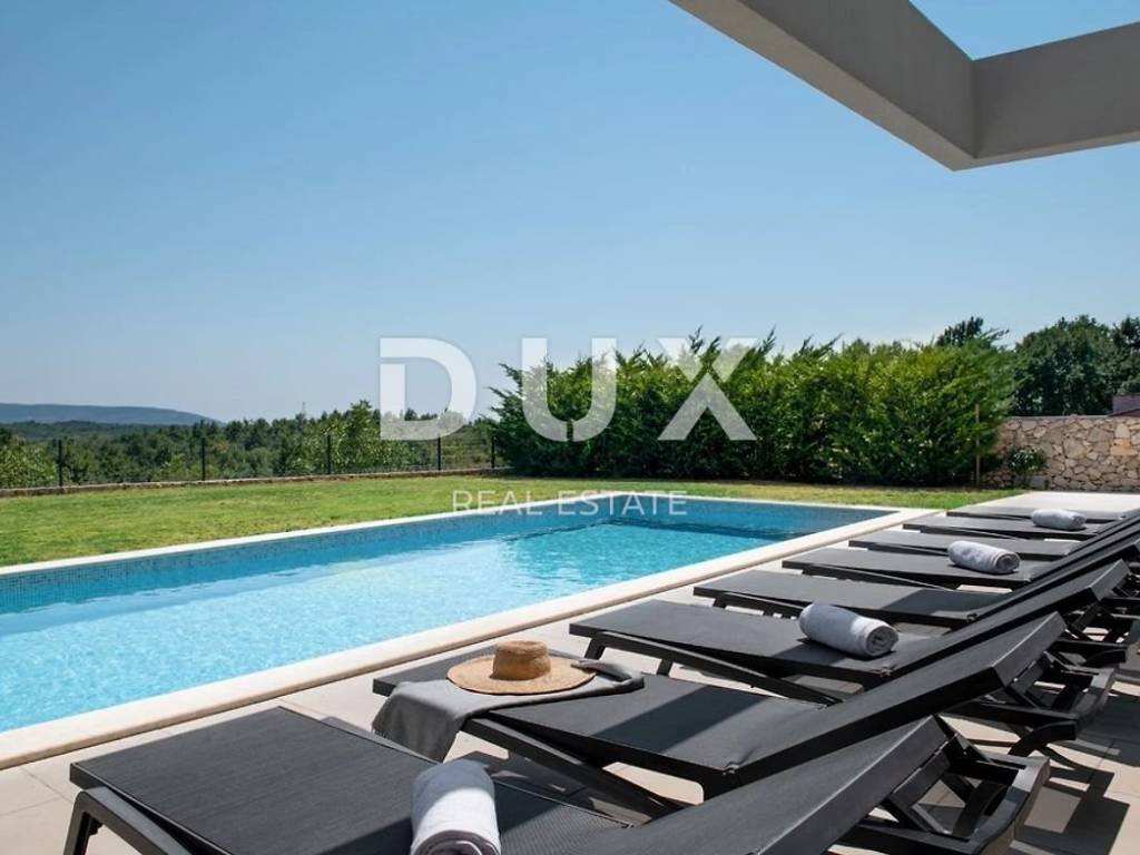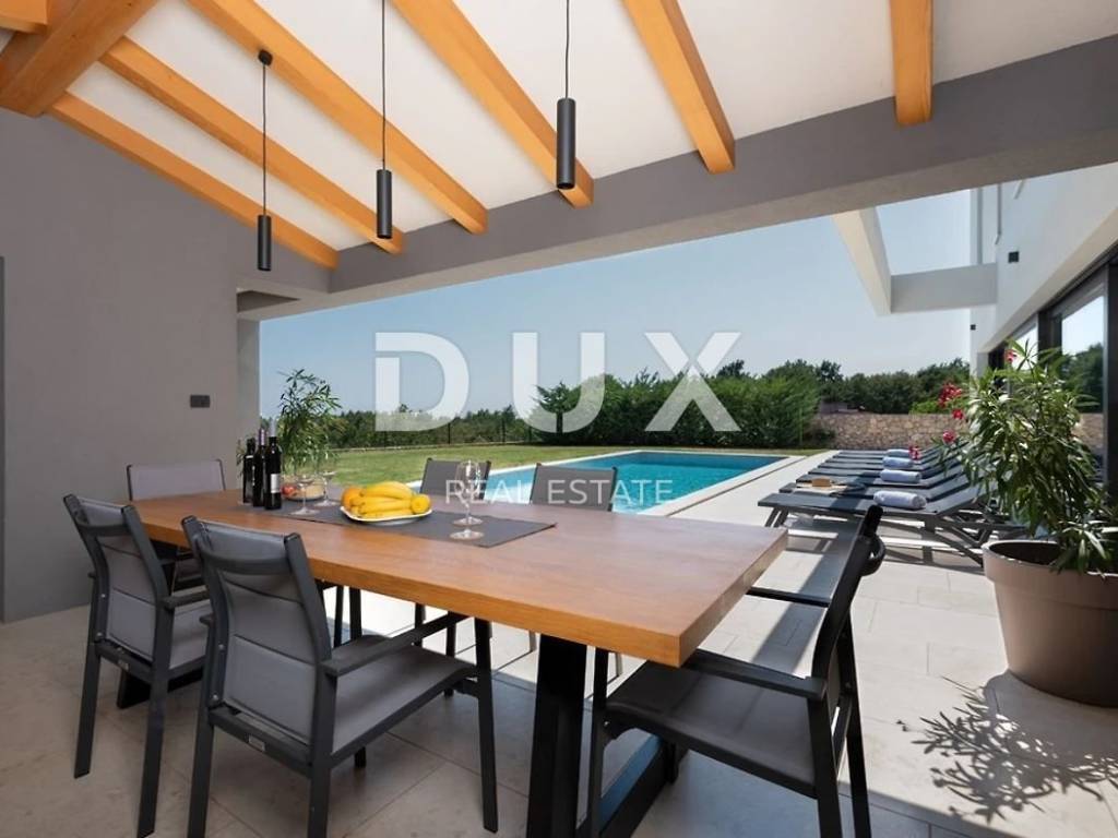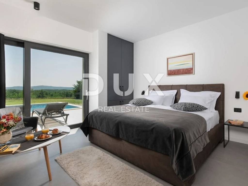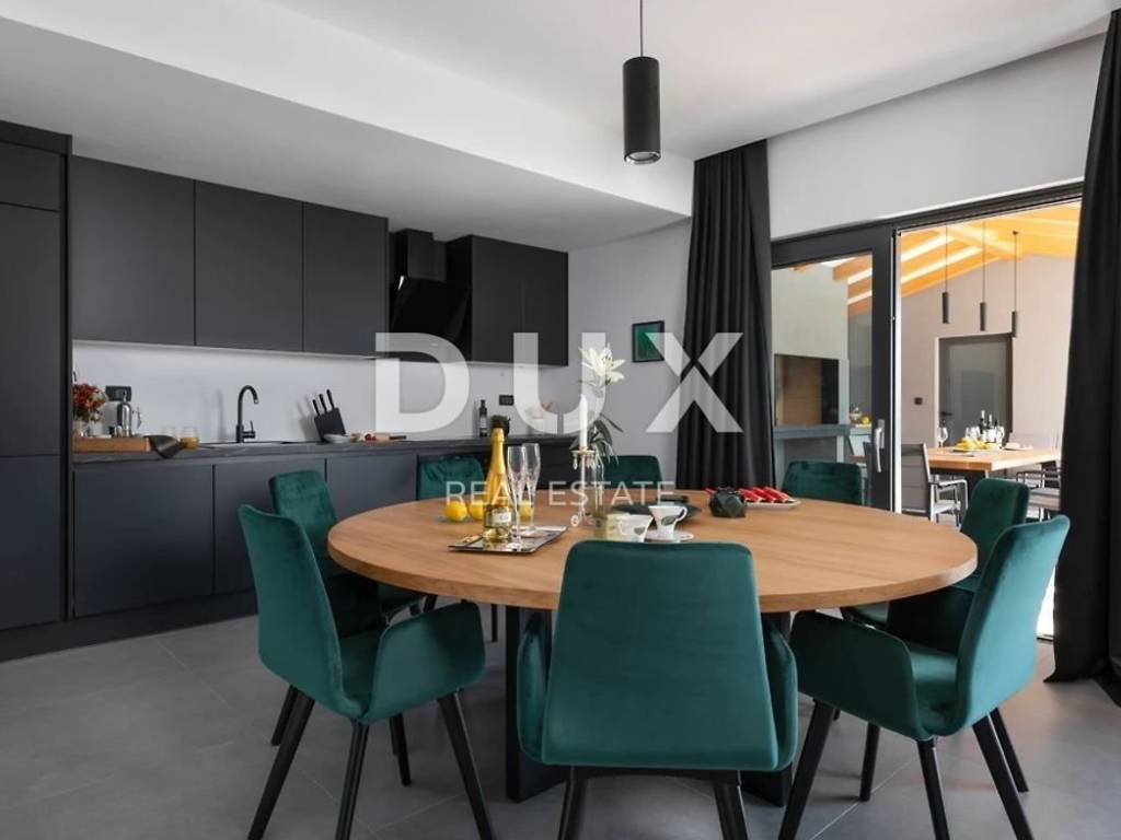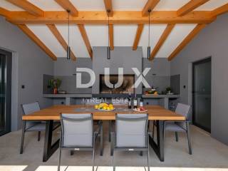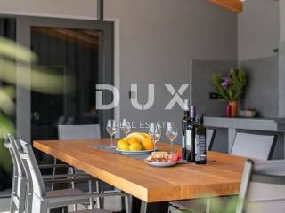 ISTRIA, LABIN - Newly built multi-storey house with swimming pool and additional land In the eastern part of Istria, only three kilometers from the sea, is the medieval town of Labin, a city of rich history and cultural heritage, today a city of galleries and artists who create and live here all year round. The main town square will delight you with its excellently preserved loggia from the 16th century, from which the main town gate of St. Flora. Above the door are carved the coat of arms of Labin and the Venetian lion, a symbol of the rule of Venice. A cannon from the Austrian period and a number of other interesting details, you will discover while walking around the town. 7 km from the center of Labin, for sale is this interesting newly built 190 m2 storey house. On the ground floor of the villa there is a kitchen, dining room and living room, bathroom, one bedroom, technical room, two toilets, sauna, storage room and storage room. The large glass wall in the living room offers a view of the beautifully landscaped garden, where there is a covered summer kitchen and a swimming pool with a sunbathing area of 39 m2. The ground floor and first floor are connected by an internal staircase, and there are three bedrooms on the first floor, each with its own bathroom. On the large garden of 983 m2 there is a spacious swimming pool with a sunbathing area of 39 m2 for enjoying warm days, and there is also a covered summer kitchen, ideal for enjoying meals outdoors. The villa is sold completely decorated and furnished. In addition, the price includes a building plot of 670 m2 located next to the house, providing additional space and potential for expansion or additional facilities. Ownership in order. The house is rented for tourists and there is the possibility of taking over an already established business, which is why it is ideal for investment. Dear clients, the agency commission is charged in accordance with the General Business Conditions www.dux-nekretnine.hr/opci-uvjeti-poslovanja
