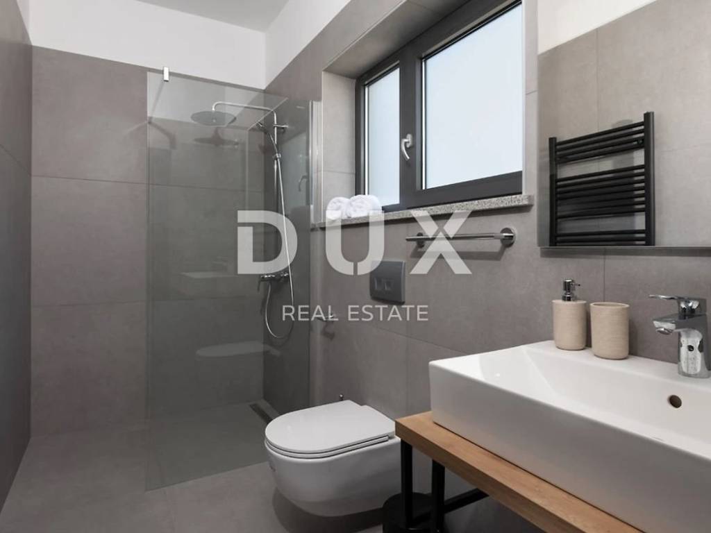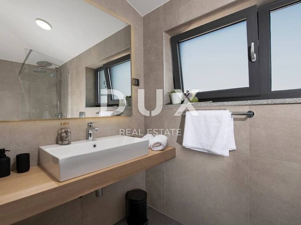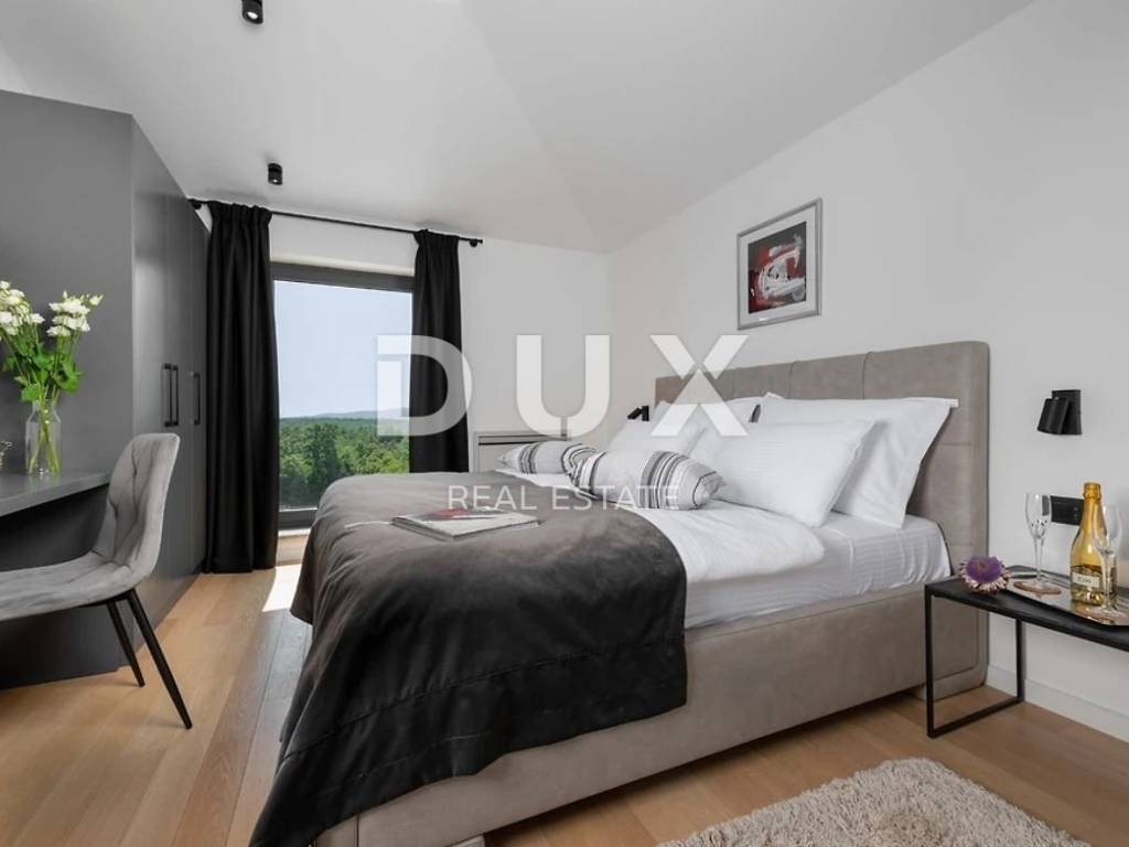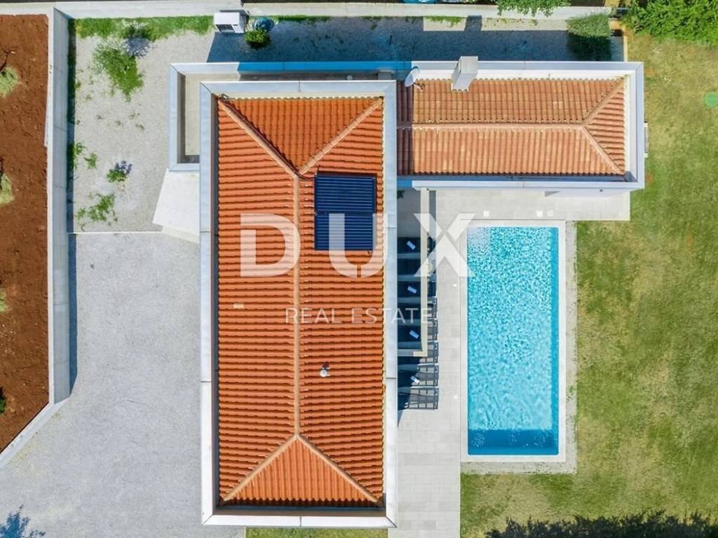 ISTRIA, LABIN - Newly built multi-storey house with swimming pool and additional land In the eastern part of Istria, only three kilometers from the sea, is the medieval town of Labin, a city of rich history and cultural heritage, today a city of galleries and artists who create and live here all year round. The main town square will delight you with its excellently preserved loggia from the 16th century, from which the main town gate of St. Flora. Above the door are carved the coat of arms of Labin and the Venetian lion, a symbol of the rule of Venice. A cannon from the Austrian period and a number of other interesting details, you will discover while walking around the town. 7 km from the center of Labin, for sale is this interesting newly built 190 m2 storey house. On the ground floor of the villa there is a kitchen, dining room and living room, bathroom, one bedroom, technical room, two toilets, sauna, storage room and storage room. The large glass wall in the living room offers a view of the beautifully landscaped garden, where there is a covered summer kitchen and a swimming pool with a sunbathing area of 39 m2. The ground floor and first floor are connected by an internal staircase, and there are three bedrooms on the first floor, each with its own bathroom. On the large garden of 983 m2 there is a spacious swimming pool with a sunbathing area of 39 m2 for enjoying warm days, and there is also a covered summer kitchen, ideal for enjoying meals outdoors. The villa is sold completely decorated and furnished. In addition, the price includes a building plot of 670 m2 located next to the house, providing additional space and potential for expansion or additional facilities. Ownership in order. The house is rented for tourists and there is the possibility of taking over an already established business, which is why it is ideal for investment. Dear clients, the agency commission is charged in accordance with the General Business Conditions www.dux-nekretnine.hr/opci-uvjeti-poslovanja