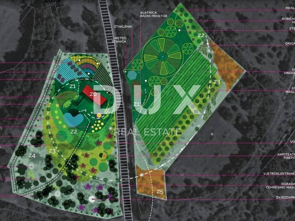 Nekretnina je zamišljena kao eko održivo imanje; mjesto odvijanja edukativnog sadržaja uz proizvodne aktivnosti, koje na svojim površinama i objektima objedinjuje rješenja koja se mogu primijeniti na jednostavan, praktičan i održiv način kroz načela suradnje te ekološke i društvene odgovornosti.