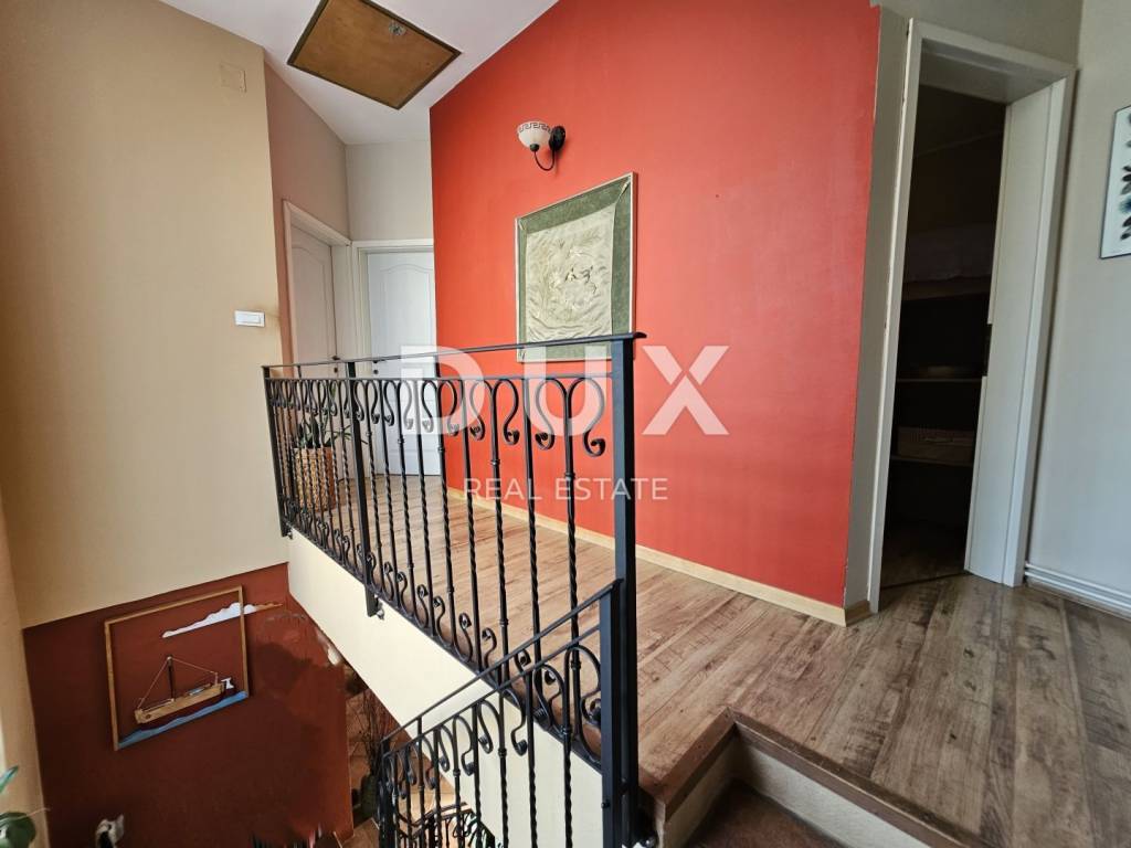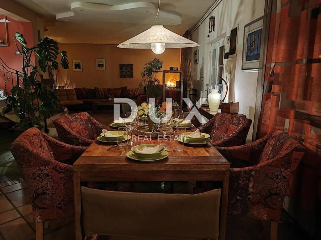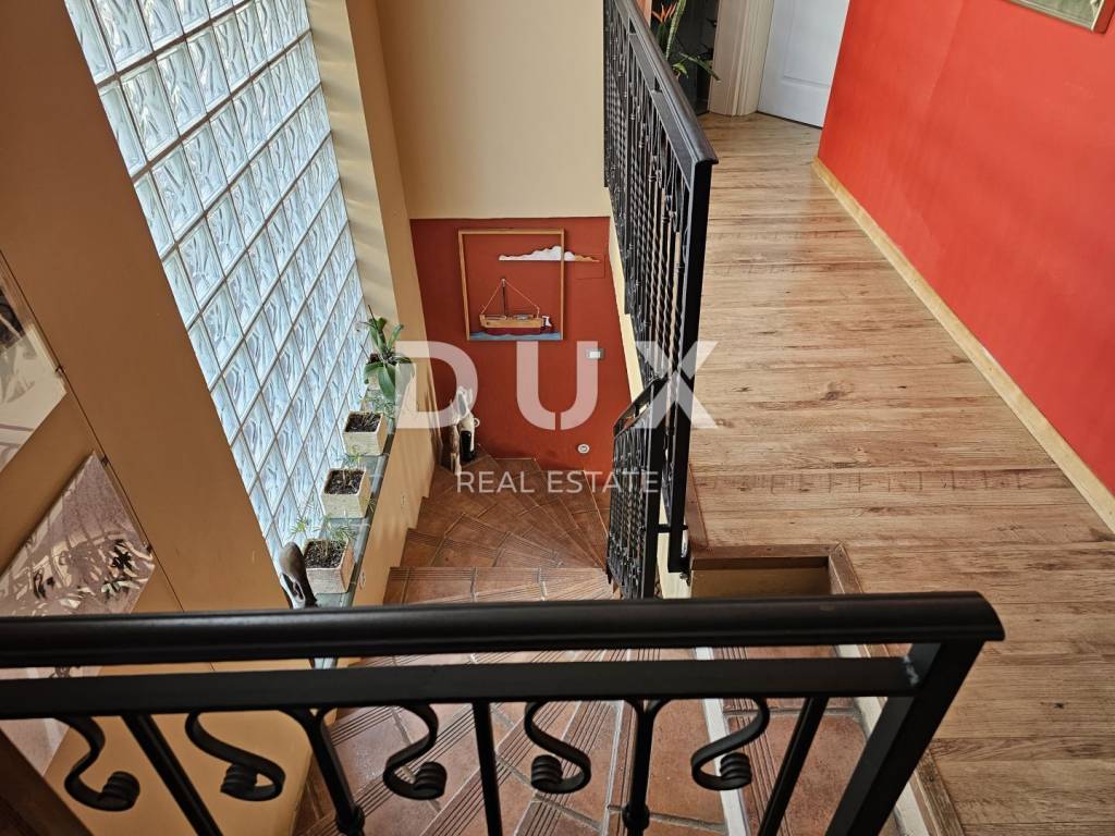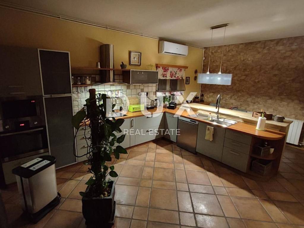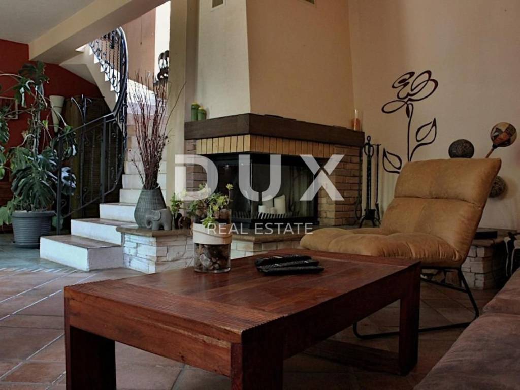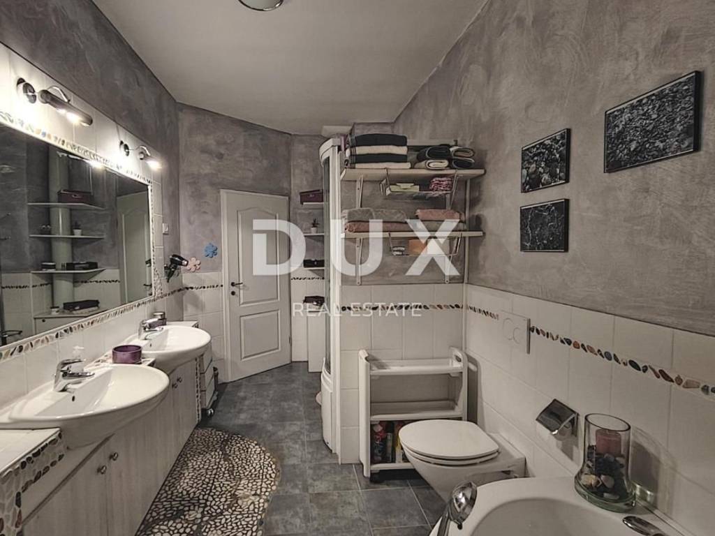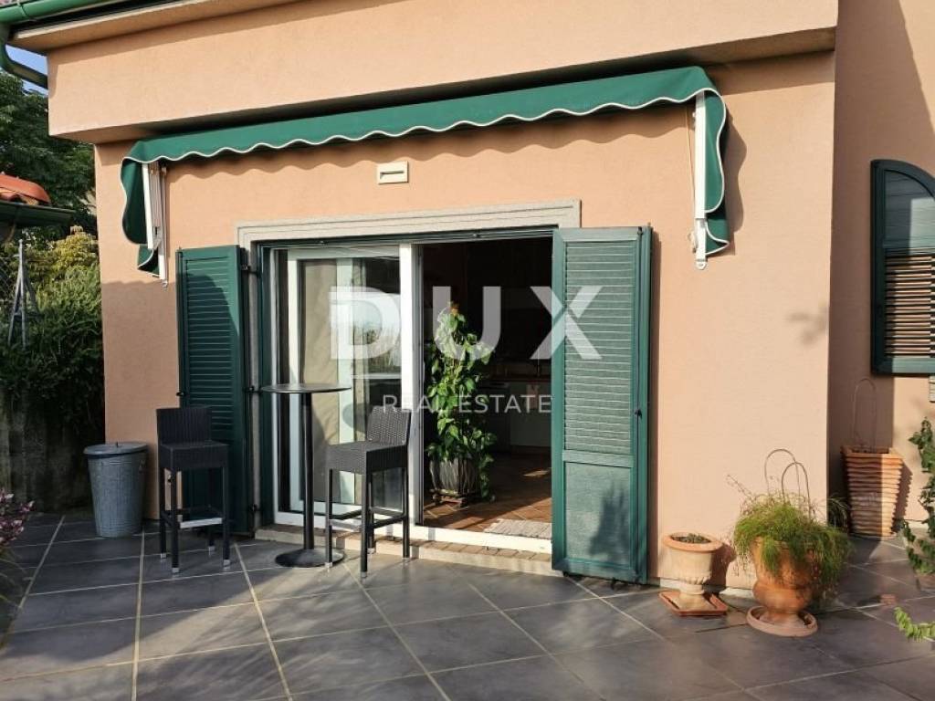 KOSTRENA - Coastal-style villa with pool Detached seaside house located in an excellent location, with a pool of 32 m2 and a beautiful view of Kvarner. The house has an "open-space" ground floor where there is a bathroom, kitchen, dining room and living room. The living room leads to a large covered terrace. Internal stairs lead to the first floor, where there are three bedrooms and two bathrooms. The master bedroom has a walk-in closet and access to a balcony with a panoramic view. The land has a cascade configuration, so the stairs lead to the swimming pool in complete intimacy, bordered by plants. Three cascades follow with olives, figs, almonds and pomegranates. An automatic irrigation system was implemented. The Mediterranean plants on the property are over 15 years old. The land has three entrances and parking for a large number of cars. The house is secured with an alarm and a CCTV system with the possibility of remote monitoring. The possibility of heating in three ways: air conditioning, fireplace in the living room with exhaust of hot air through all rooms and central gas (the tank is located on the land, and the central unit is in the large bathroom). The house is located at a distance of 400 meters on foot from the sea and a few minutes from all municipal facilities. *** Dear clients, the agency commission is charged in accordance with the General Business Conditions www.dux-nekretnine.hr/opci-uvjeti-poslovanja