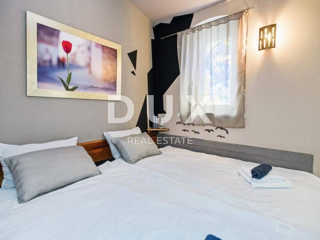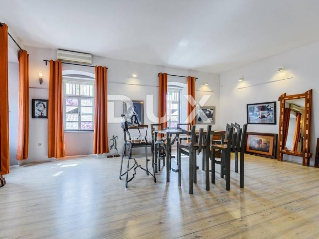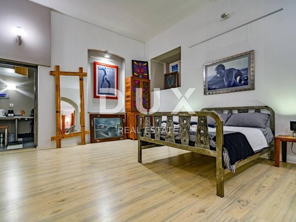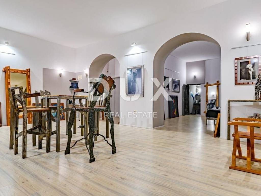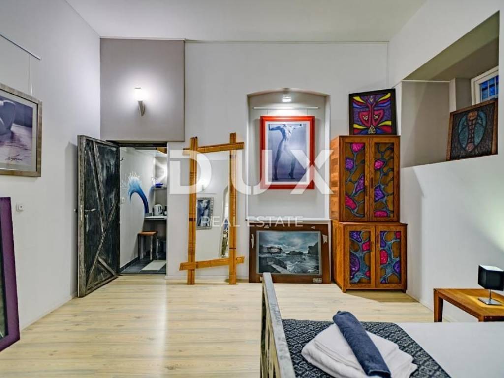An artistic apartment for sale on the Peninsula in Zadar. The apartment with a total living area of 86 m2 is located on the second floor of a historic building in the city center itself. The concept of the space is designed as an open space that resembles an art gallery. From the main door, we enter through the corridor into a spacious room with high ceilings, which consists of two parts. On the right side, through two arcade passages, we enter the gallery space with works of art and a large table. On the left side there is a handmade bed and the entrance to the kitchen. A small hallway leads to another bedroom and bathroom. The apartment is air-conditioned and was completely renovated in 2013, when the floor coverings and carpentry were changed and new furniture was installed. Due to its extremely favorable position in the very center of the city, this apartment with an already well-established tourist business represents a top investment in tourism. In the immediate vicinity, there are two tourist attractions, the contemporary installations Greeting the Sun and the Sea Organ, which enchant with an interesting play of color and sound in the evening when the magical sunset takes place. Zadar is a historical city and tourist center of Northern Dalmatia. Zadar is also the city with the largest number of preserved cultural and historical monuments that bear witness to the history of this city, which is more than 3000 years old. In addition, Zadar has a rich gastronomic offer, and its unique position in the heart of Dalmatia makes this city the tourist center of the entire Adriatic.