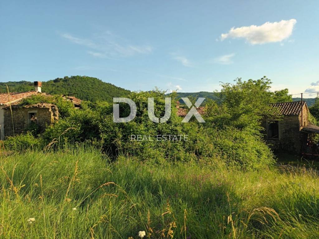 In the vicinity of the town of Buzet, three Istrian stone ruined houses on a spacious plot are for sale. The houses are separated from each other but connected to another building. The first house is a two-story house with a floor plan area of 129m2. The second house is also a semi-detached building with a floor plan area of 76m2. The third house is located last in the row and has a floor plan area of 54m2.