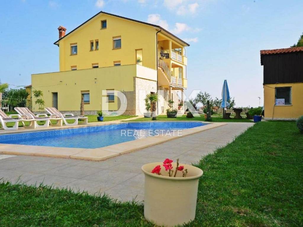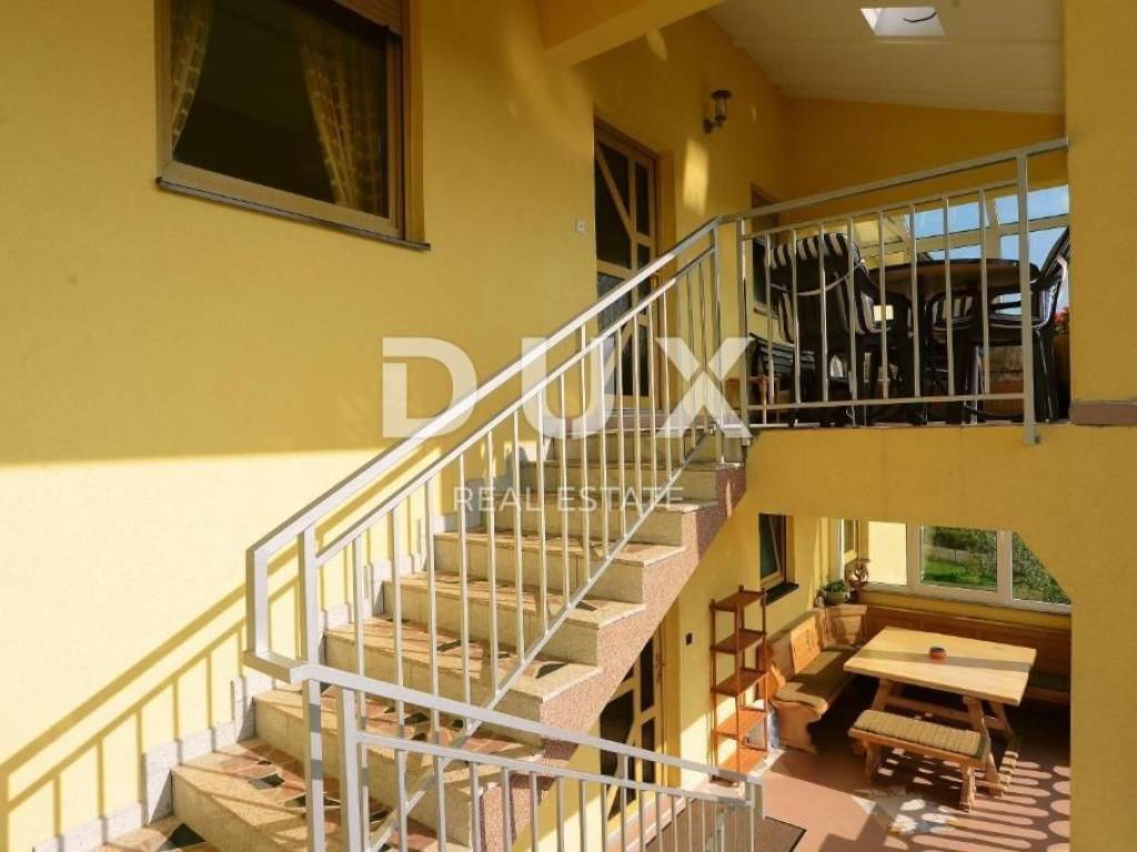 On the southeastern coast of Istria, where green hills meet the sea, where nature and heritage meet, there are two towns of similar size but with different but mutually complementary characters - Labin and Rabac. The picturesque town of Labin rises on a hill 320 meters high, only five kilometers from the white pebble beaches in Rabac. Intertwined with rich history and mining that marked this region, Labin, which was declared an independent republic for a short time, is today a fascinating city of contradictions; old and new, history and present, tourism and art. Not far from the town of Labin, a spacious house with a swimming pool is for sale. The house is divided into a ground floor and two floors and consists of an office space and two residential units. Business space of 166 m is located on the ground floor of the house. On the first floor there is a residential unit consisting of a living room, dining room, kitchen, pantry, two bathrooms, three bedrooms, a covered terrace and a balcony. On the second floor there is a residential unit consisting of a dining room, kitchen, pantry, four bathrooms, five bedrooms, a covered terrace and a balcony. Both residential units have a separate entrance and are fully equipped and furnished. The yard is fenced and decorated in a Mediterranean style. It contains a swimming pool with a sunbathing area, a tavern and a storage room. This property, within walking distance of all amenities essential for life, is an exceptional opportunity for family life as well as an investment investment in a successful tourist rental.