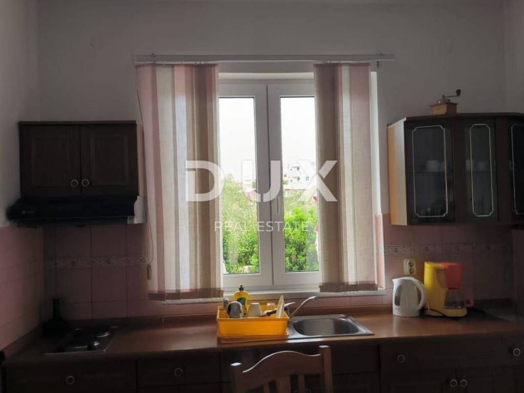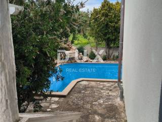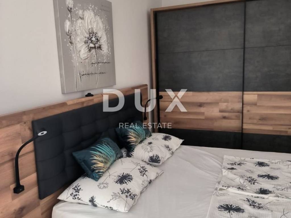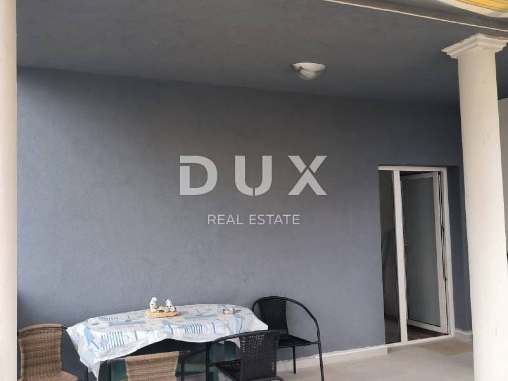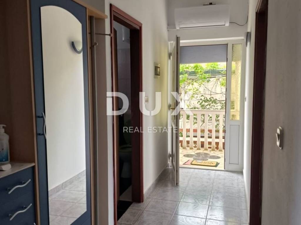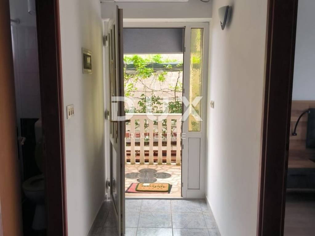 In a quiet location, just a few minutes' walk from the first beaches, a 2BR+DB apartment with a yard and a private pool is for sale. Through the fenced gate we enter the yard, inside which there is a swimming pool, seating furniture and barbecue, and from the same stairs we enter the apartment. The apartment consists of a hallway, a kitchen with a dining room, two bedrooms, one of which has access to a large and spacious terrace. An air conditioner has been installed. Parking spaces are located on the common area. Ownership 1/1 Operating license.