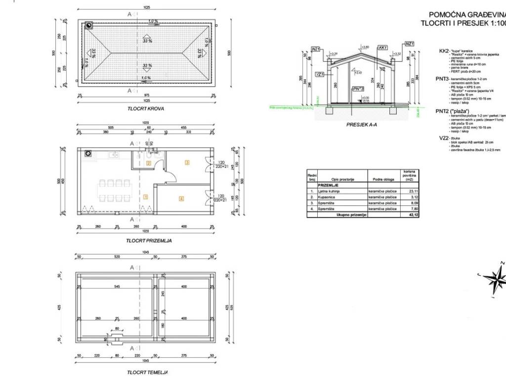 Next to the house there is an auxiliary building with a net area of 42.12 m, which consists of a summer kitchen, a bathroom and two storage rooms.