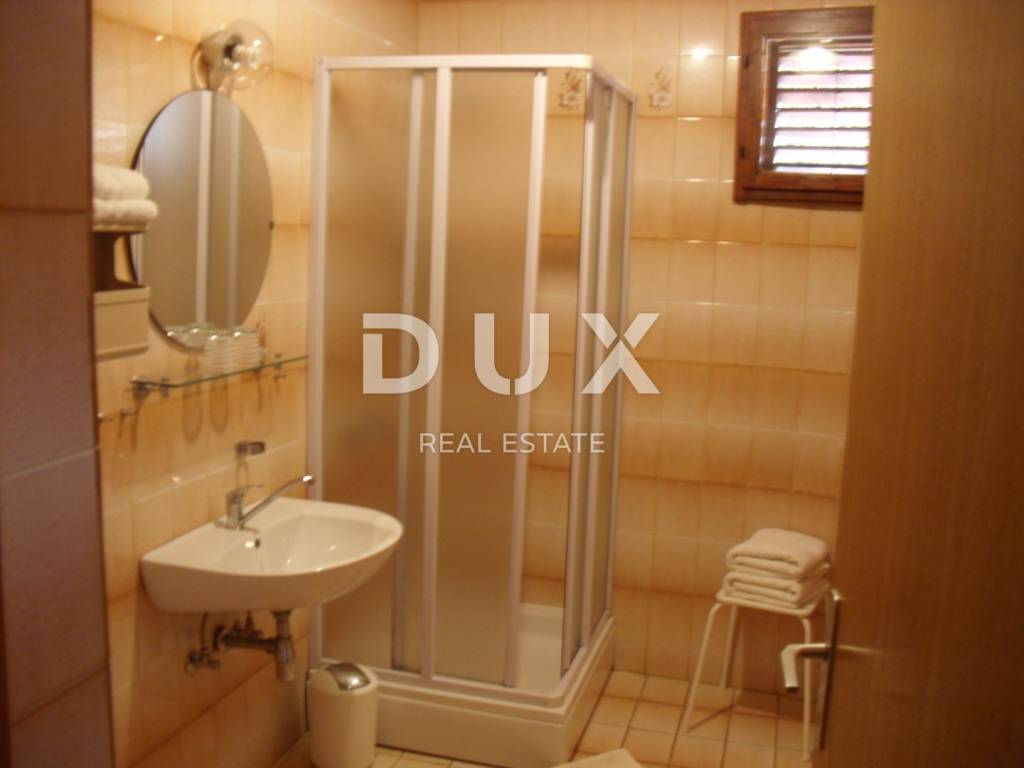 House with 346m2 of living space on a plot of 523m2 consists of a basement with garage, storage and boiler room, ground floor with two one-bedroom apartments and first floor with spacious two-bedroom apartment. An internal staircase connects the garage, the main entrance door and one apartment on the ground floor and the apartment on the first floor while the second apartment on the ground floor has its own entrance and a separate garage. Each apartment on the ground floor consists of a hallway, bedroom, kitchen and living room and terrace. The apartment on the first floor, which occupies the entire floor, consists of a hallway, two bedrooms, kitchen with spacious and lighted dining room and living room with access to a large terrace with beautiful sea views and a green belt. The house was partially renovated in 2013 including the roof. The carpentry is aluminum / wood while underfloor heating on solar / electricity and air conditioning in each residential unit provide great comfort. The garden of 317m2 allows three more parking spaces while the garden with Mediterranean plants is a unique oasis for enjoying the warm days. This property is adorned with an exceptional location only 100m from the sea with the proximity of all amenities and is an excellent investment for tourist rental but also life in a quiet part of Krk.