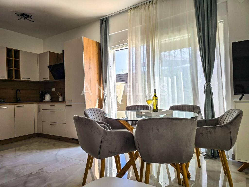 Just 3 km from the city center of Pula is this beautiful newly built semi-detached house with a swimming pool with a total area of 80 m2. The living space is divided into two floors, ground floor and first floor. The ground floor has a living room, kitchen and dining room in an open-space concept, bathroom and one bedroom. Upstairs there are two more bedrooms and a large bathroom.