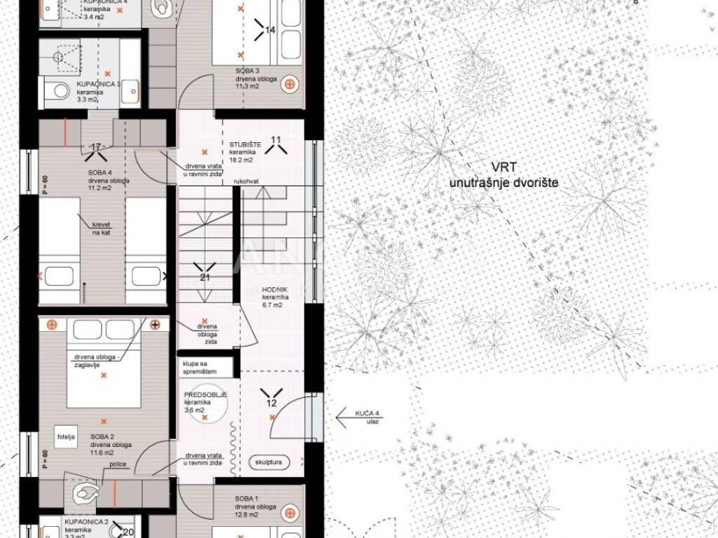 Kuća 4: spavaći trakt 6 soba sa kupaonicama i sobe za druženje