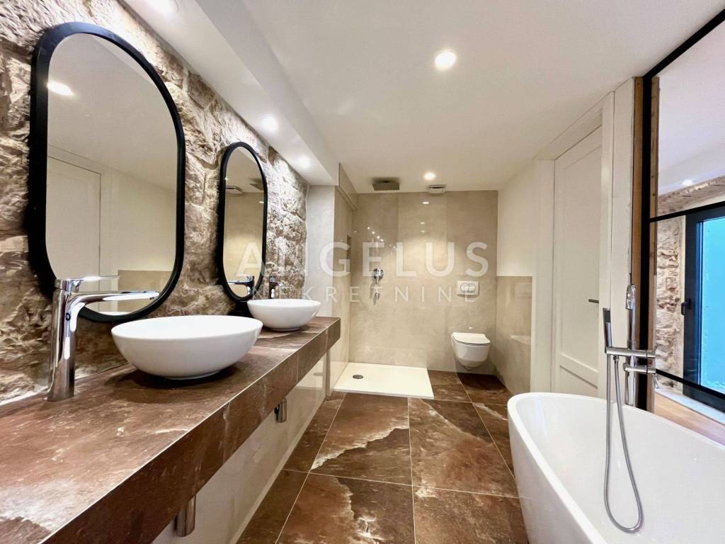 A beautiful luxury apartment approx. NKP 150m2 has been completely adapted, the adaptation was extensive so that all the installations in the apartment were changed, new floors were made, the stone was protected, the beams were also changed, the external carpentry and sheds were changed, everything was done with the latest technologies and equipped with high-quality materials.
