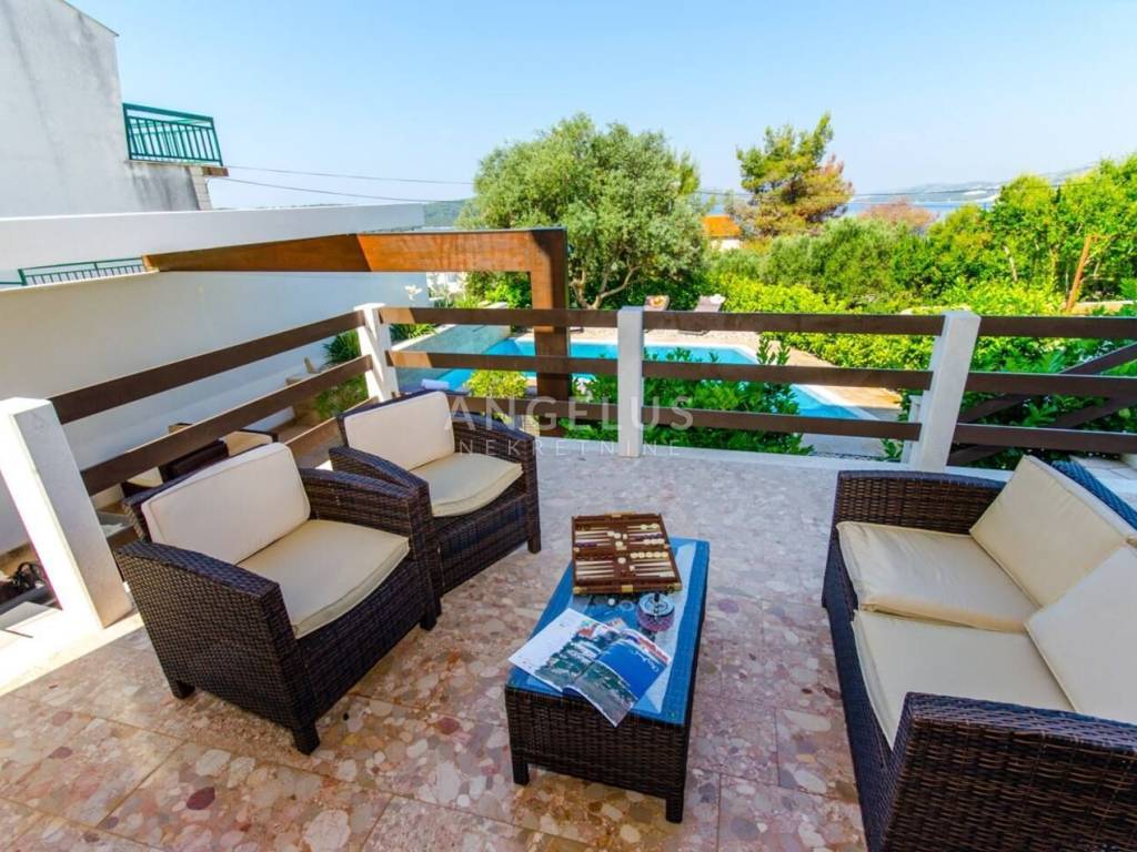 The house is located on the island of Ciovo in Okrug Gornji. Ciovo is connected by a drawbridge with the city of Trogir, from which it is 5 km away, to the airport 8 km, but it is also connected by sea to the airport, which can avoid traffic jams. Distance to Split is 30 km, and to Sibenik 60 km. The house is about 200 m from the sea.