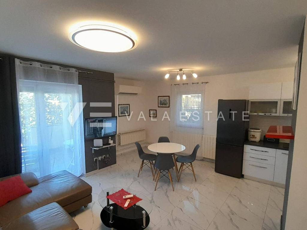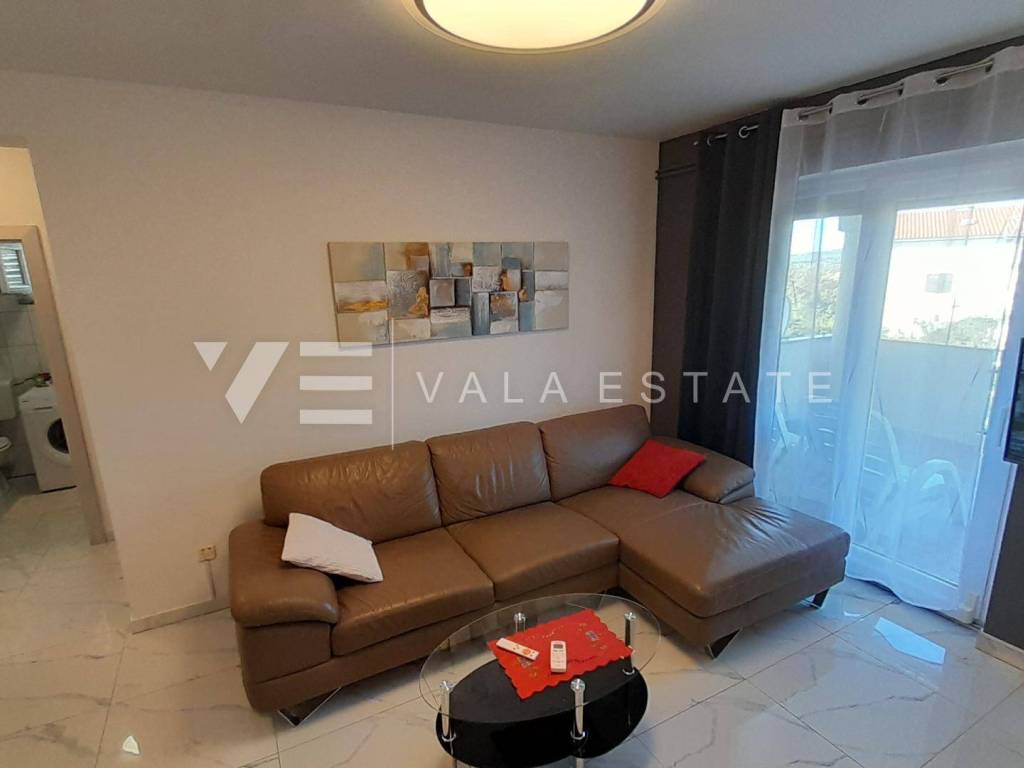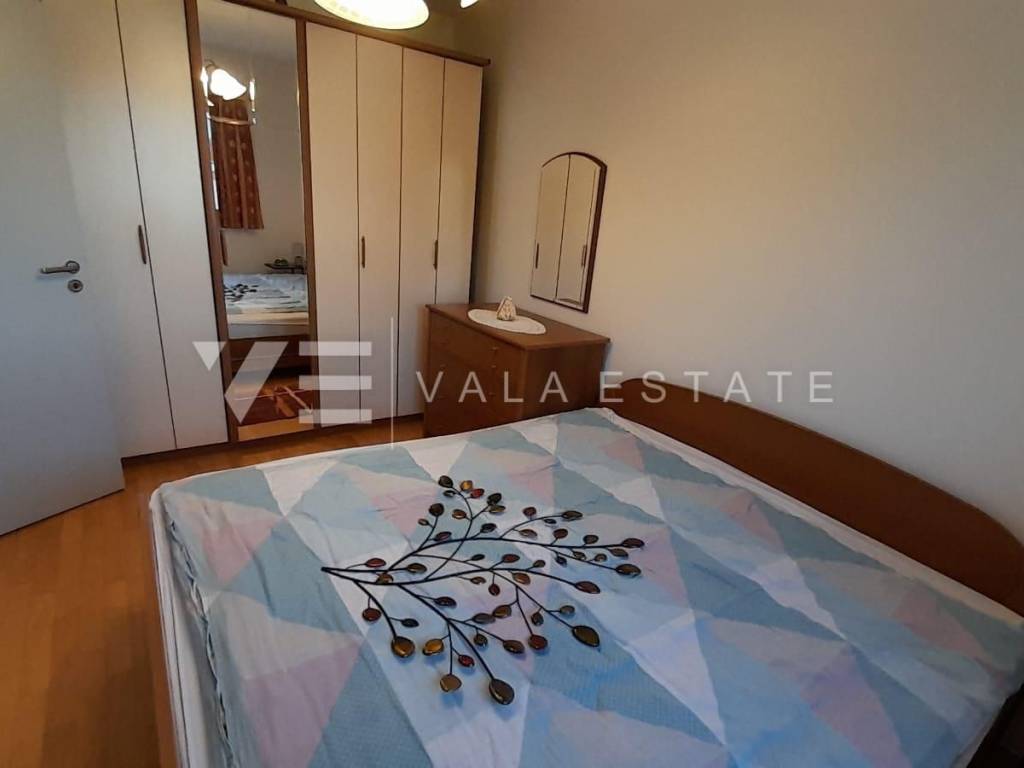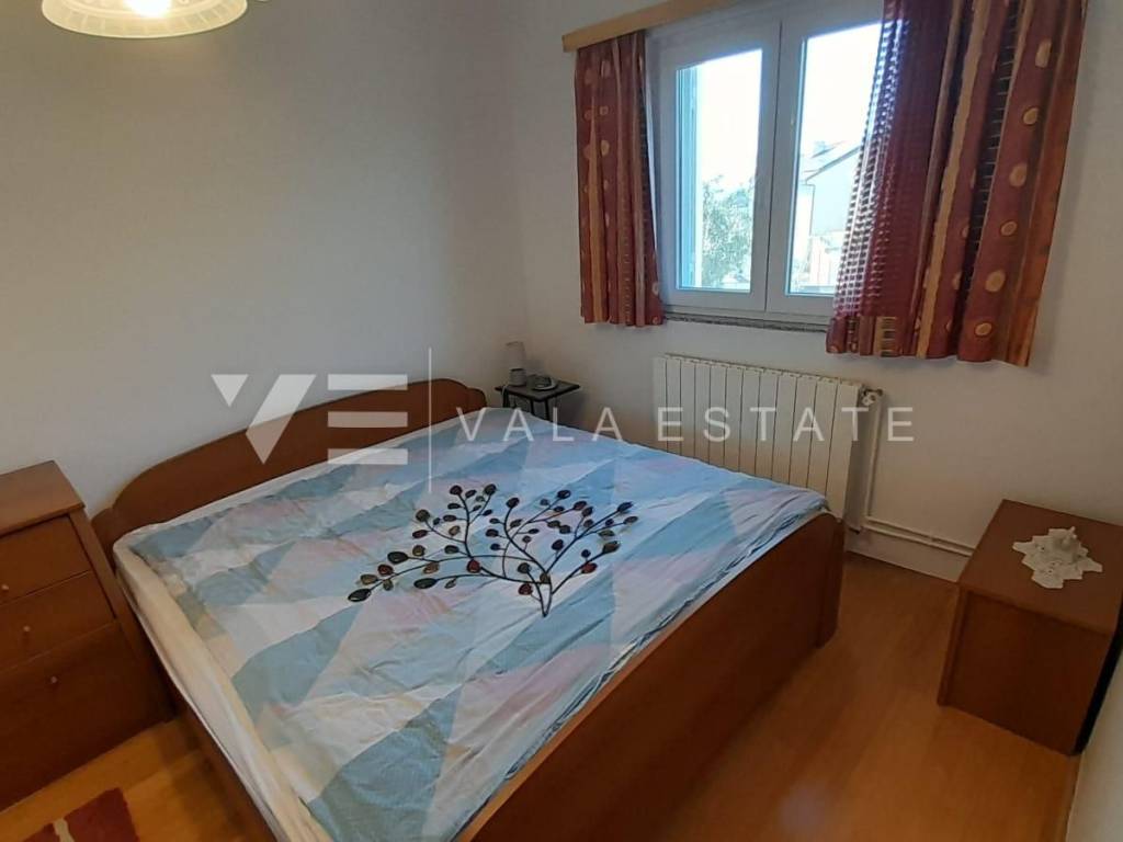 Real estate island of Krk, town of Krk - for sale is a comfortable furnished apartment on the first floor of a multi-family house with a partial sea view. The total living area of the apartment is 62 m2 and is divided into an entrance area, bathroom, two bedrooms, living room with kitchen and dining room with access to a loggia. It has one parking space in the common courtyard of the building and a storage room in the basement of 6 m2. The apartment has been renovated, is of high quality construction and equipment, is being sold fully furnished, is air-conditioned, has PVC joinery, central heating, security doors, proper documentation and is ready to move in. It is located in a prime location, only 400 m from the beach and just a few minutes walk from the town center with all the necessary amenities. Due to its location, it is an excellent opportunity for personal use or for tourist rental.