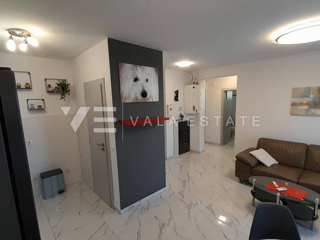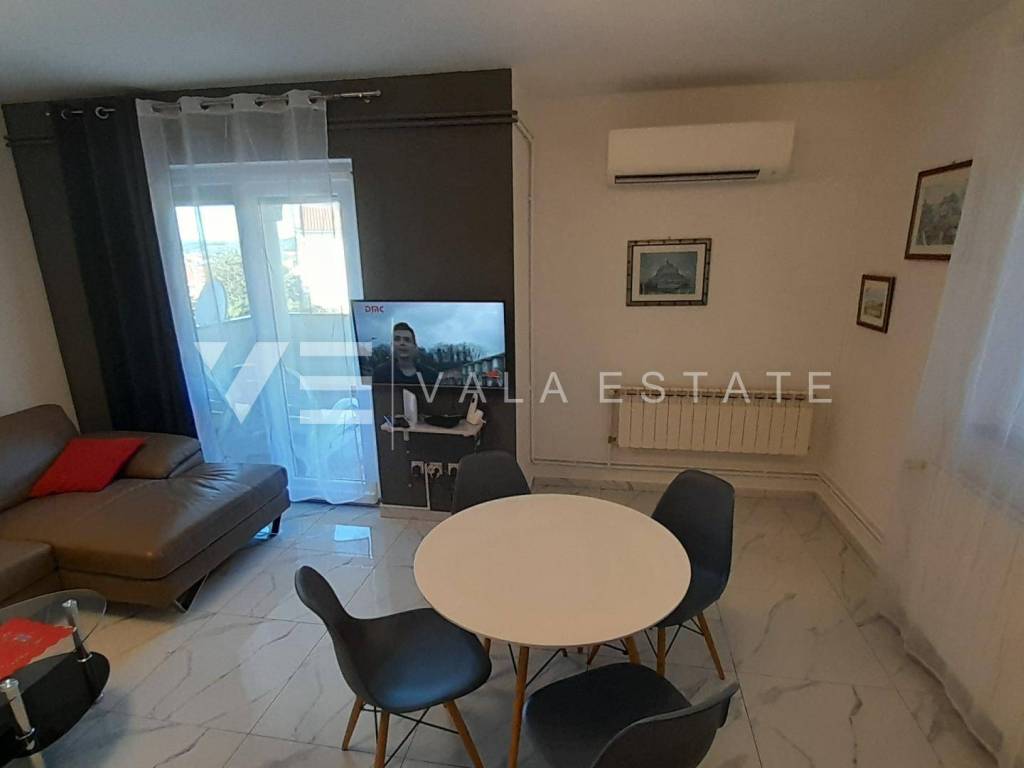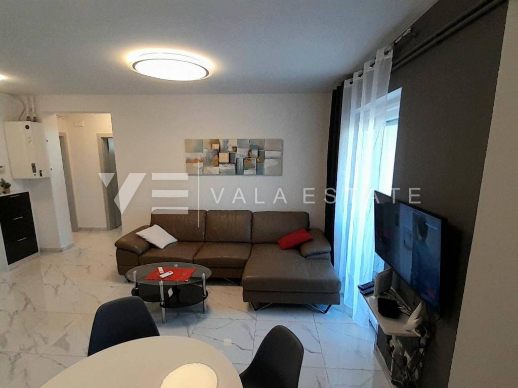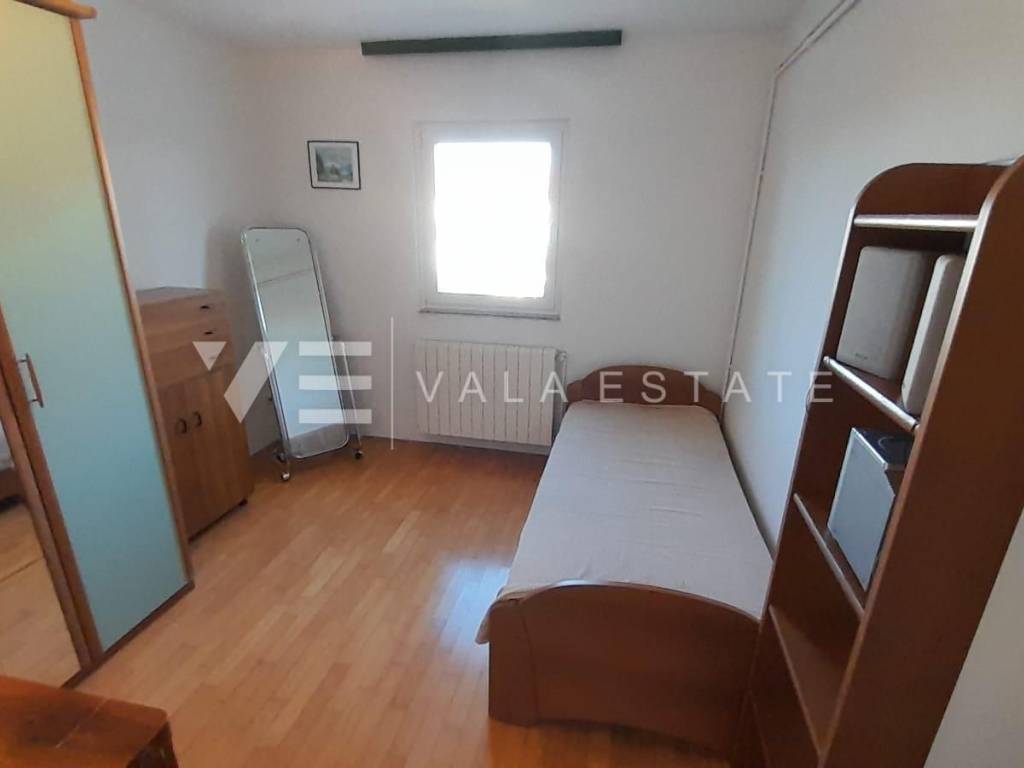 Real estate island of Krk, town of Krk - for sale is a comfortable furnished apartment on the first floor of a multi-family house with a partial sea view. The total living area of the apartment is 62 m2 and is divided into an entrance area, bathroom, two bedrooms, living room with kitchen and dining room with access to a loggia. It has one parking space in the common courtyard of the building and a storage room in the basement of 6 m2. The apartment has been renovated, is of high quality construction and equipment, is being sold fully furnished, is air-conditioned, has PVC joinery, central heating, security doors, proper documentation and is ready to move in. It is located in a prime location, only 400 m from the beach and just a few minutes walk from the town center with all the necessary amenities. Due to its location, it is an excellent opportunity for personal use or for tourist rental.