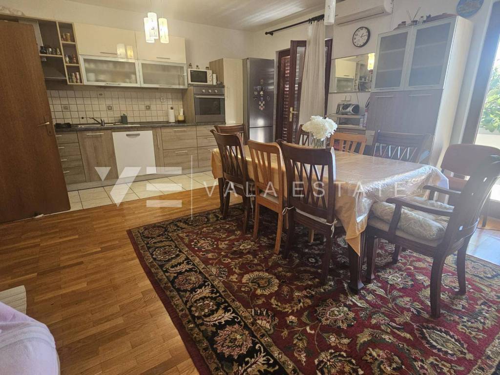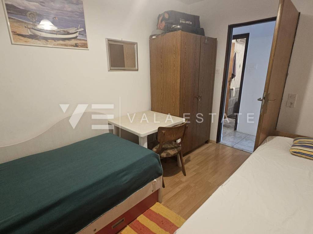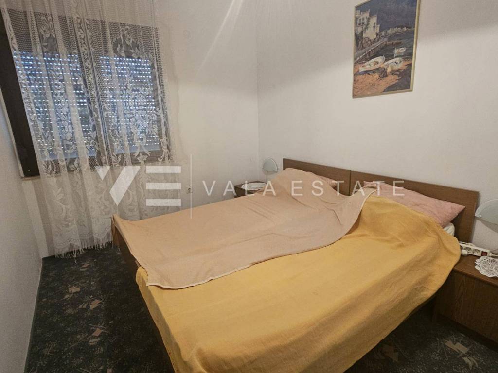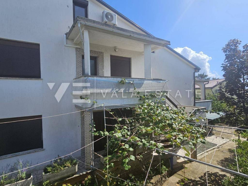 Real estate island of Krk, town of Krk - semi-detached house for sale with three furnished apartments arranged within 185 m2. In the basement there is a one-bedroom apartment consisting of a covered entrance porch, bedroom, kitchen with dining area and bathroom. On the high ground floor there is an apartment consisting of an entrance area, two bedrooms, bathroom, a space that combines the kitchen, dining area and living room and a covered spacious terrace with a partial view of the sea. On the first floor, which is reached by an external staircase, there is an apartment consisting of a kitchen with dining area, bathroom and two bedrooms. The unfinished attic, which is reached by internal stairs through the apartment on the first floor, consists of two rooms with a side exit to a small balcony with an open view of the balcony. The house is neatly maintained, fully furnished, has wooden and PVC exterior joinery, is air-conditioned and ready to move in. On the beautifully landscaped and greened garden there is a smaller studio apartment, and at the entrance to the courtyard of the house there are three parking spaces. It is located in a great location just 350 m from beautiful beaches and the center with all amenities. This property is an exceptional opportunity for investment for the purpose of tourist rental or for your own residence.