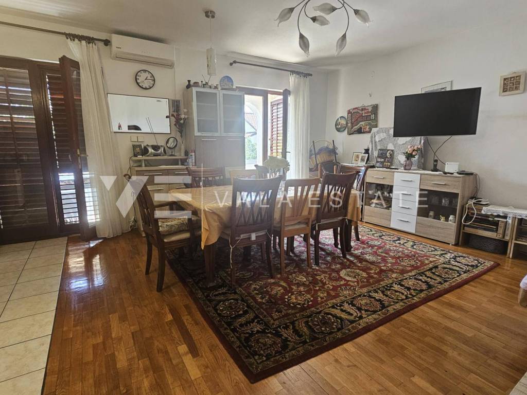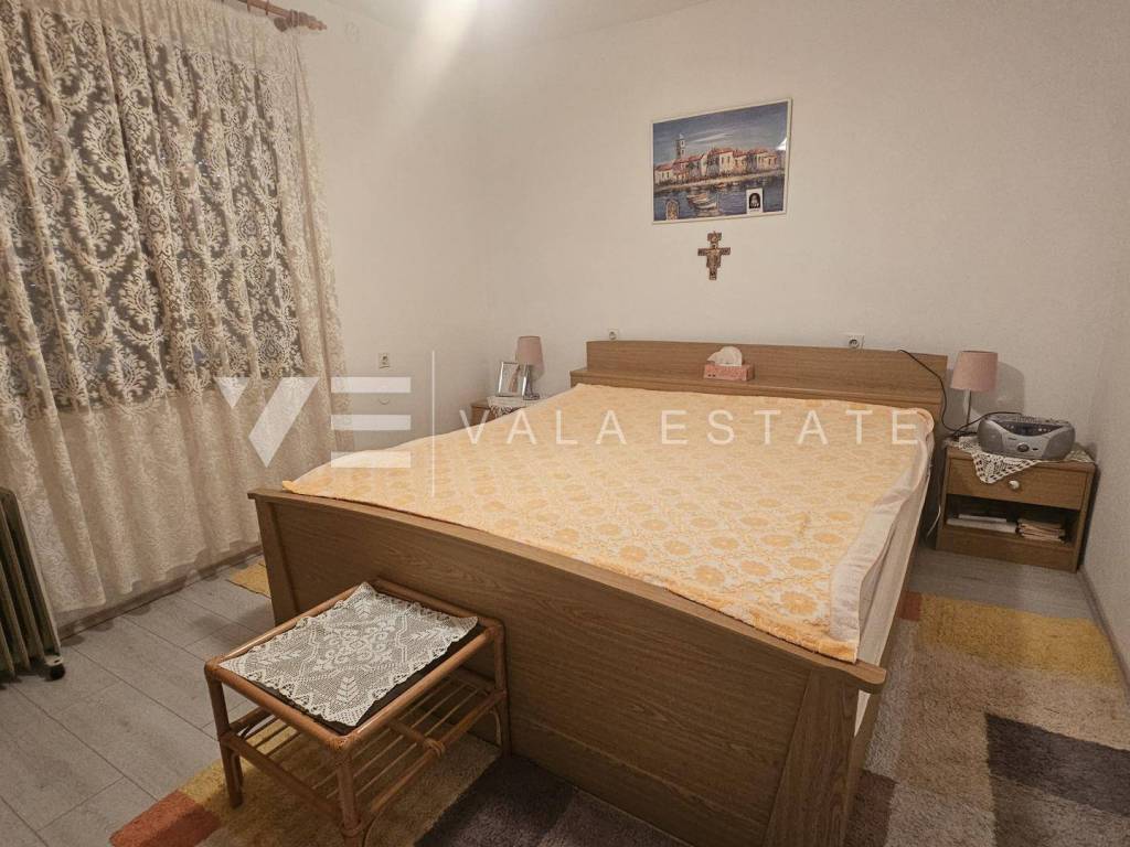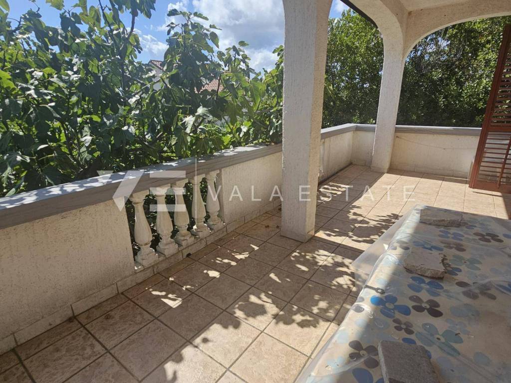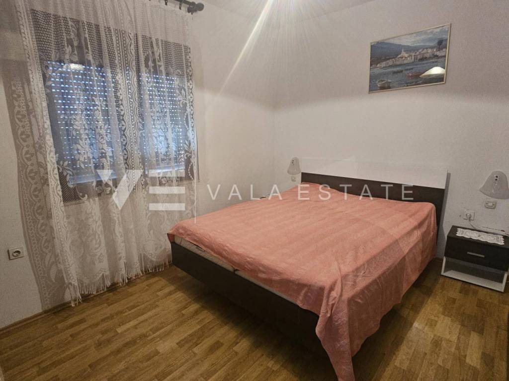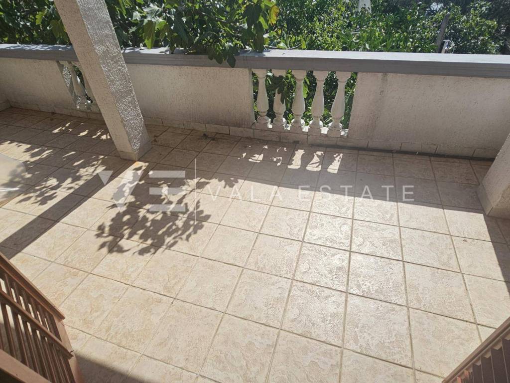 Real estate island of Krk, town of Krk - semi-detached house for sale with three furnished apartments arranged within 185 m2. In the basement there is a one-bedroom apartment consisting of a covered entrance porch, bedroom, kitchen with dining area and bathroom. On the high ground floor there is an apartment consisting of an entrance area, two bedrooms, bathroom, a space that combines the kitchen, dining area and living room and a covered spacious terrace with a partial view of the sea. On the first floor, which is reached by an external staircase, there is an apartment consisting of a kitchen with dining area, bathroom and two bedrooms. The unfinished attic, which is reached by internal stairs through the apartment on the first floor, consists of two rooms with a side exit to a small balcony with an open view of the balcony. The house is neatly maintained, fully furnished, has wooden and PVC exterior joinery, is air-conditioned and ready to move in. On the beautifully landscaped and greened garden there is a smaller studio apartment, and at the entrance to the courtyard of the house there are three parking spaces. It is located in a great location just 350 m from beautiful beaches and the center with all amenities. This property is an exceptional opportunity for investment for the purpose of tourist rental or for your own residence.