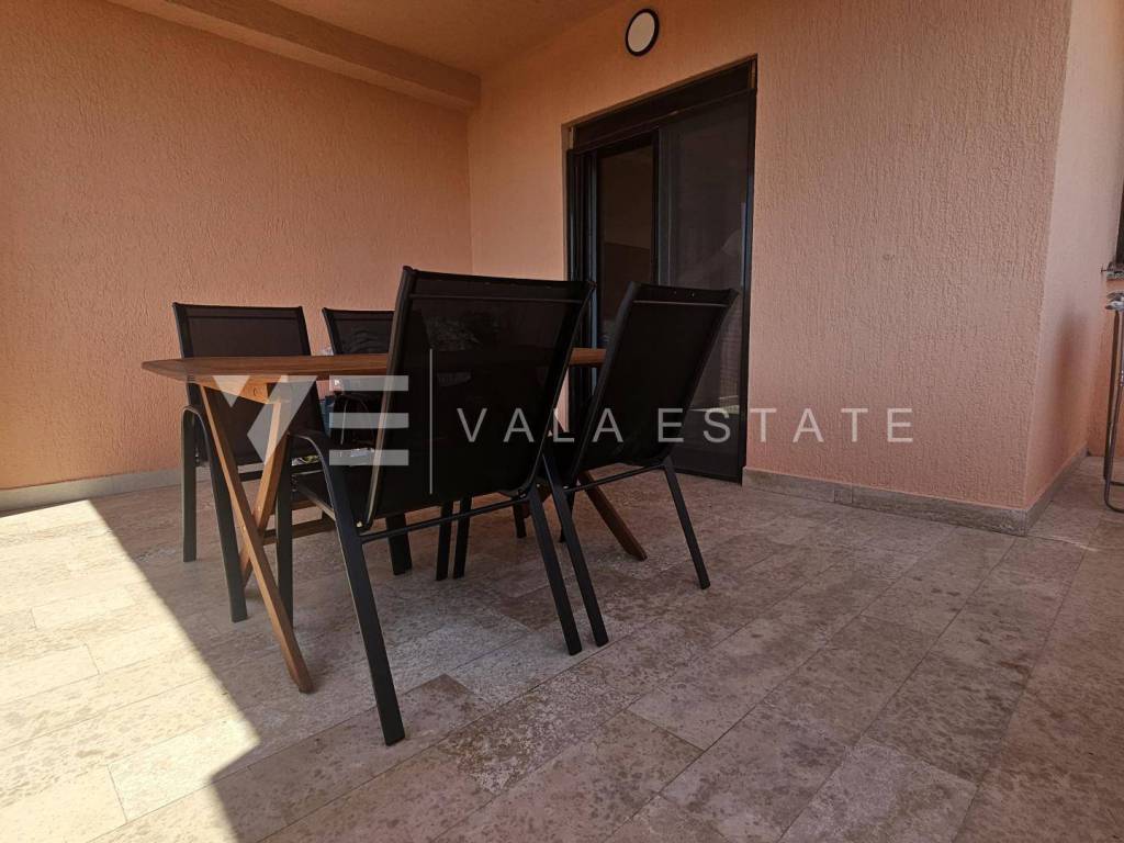 Real estate island of Krk, town of Krk - for sale is a furnished apartment on the first floor of a multi-family house with a beautiful sea view. The total living area of the apartment is 53 m2 and is distributed over an entrance hall, two bedrooms, a bathroom, a living room with a kitchen and a dining room with access to a covered balcony. It has one parking space in the common courtyard of the building. The apartment is of high quality construction and equipment, is sold fully furnished, is air-conditioned, has wooden joinery and is ready to move in. It is located in a prime location, only 600 m from the beach and just a few minutes walk from the town center. Due to its location, it is an excellent opportunity for personal use or for tourist rental. The Vala Estate Malinska agency will provide you with a safe and transparent transfer of ownership and all necessary documentation.