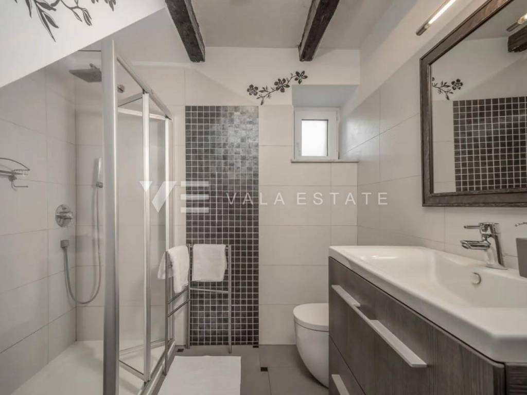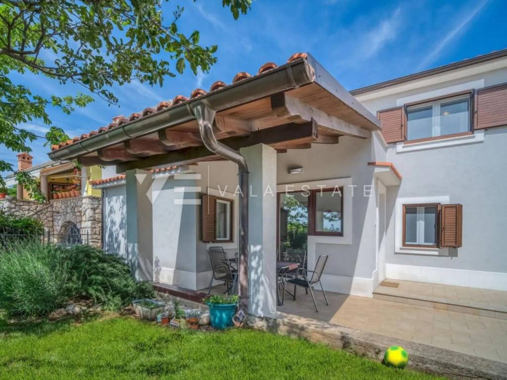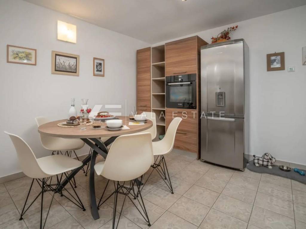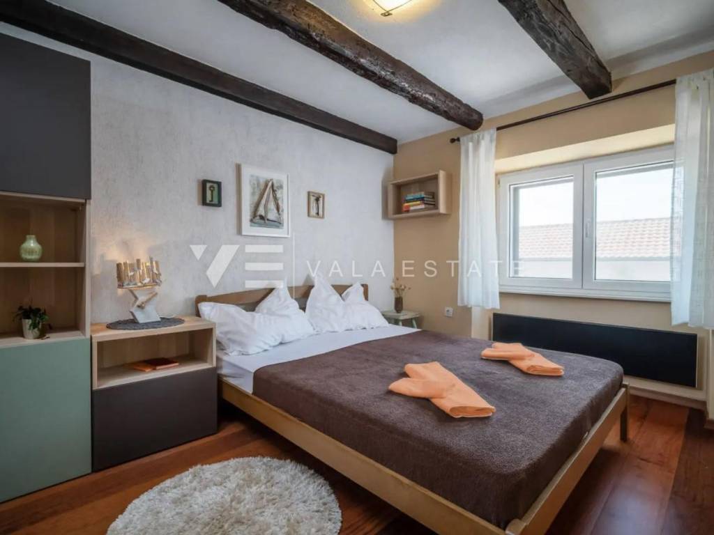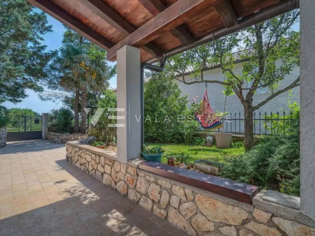 Real estate island of Krk, Dobrinj area - in a beautiful location in a quiet environment, a renovated semi-detached house with a landscaped garden is for sale. The house has a living area of 169 m2 and extends over the ground floor and first floor. On the ground floor there is an entrance porch, bathroom, socializing room, a space that combines the kitchen and dining room and living room. On the first floor there are two bedrooms and a spacious terrace. The garden full of greenery and Mediterranean plants occupies 400 m2, it is beautifully cared for and maintained and there is a jacuzzi, sunbathing area and a covered terrace. Four parking spaces and a beautifully landscaped storage room of 20 m2 are located across the road on an area of 270 m2. Quality materials, joinery and flooring were used during the renovation. The house is air-conditioned, has electric radiators and a wood-burning stove, is fully equipped and furnished and is ready to move in immediately. The location is quiet, 4000 m from the beach. It is categorized as a holiday home and is an excellent opportunity for investment in an already very well-established business. Vala Estate Malinska Agency will provide you with a safe and transparent transfer of ownership and all necessary documentation.