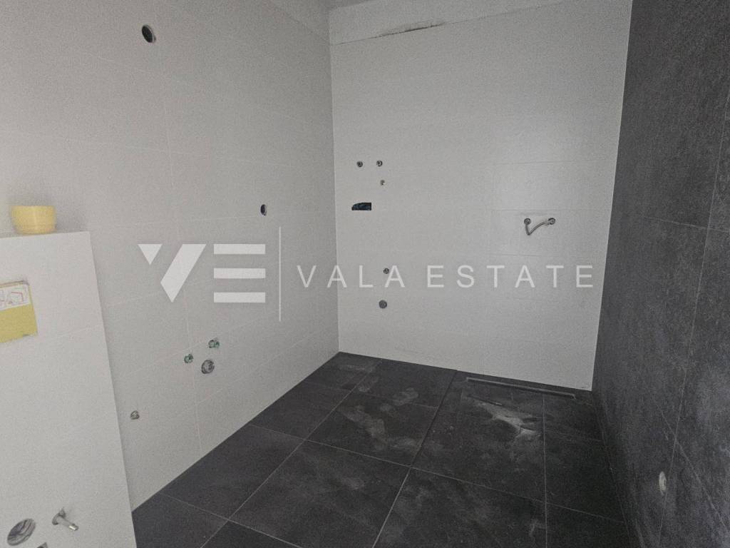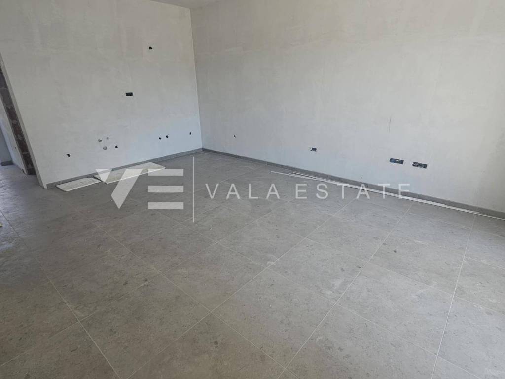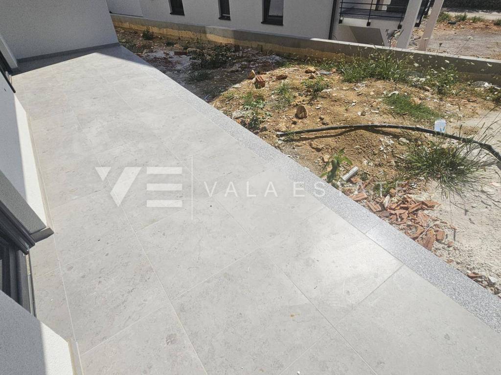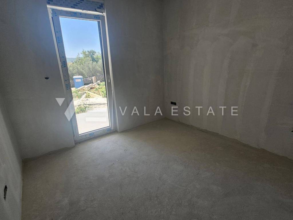 Real estate Island of Krk, Soline bay - for sale is an apartment on the ground floor of a new building consisting of a total of six residential units. The apartment has a living area of 63 m2 and consists of an entrance hall, two bedrooms, bathroom, kitchen, dining room and living room with access to a covered terrace and garden of 60 m2. It has one parking space in the common courtyard of the building. Quality materials and equipment are used for the construction, including ceramic floor coverings, quality sanitary ware, electric underfloor heating in the bathroom, room air conditioning, built-in high-quality ALU and PVC carpentry and burglar-proof doors. It is located in a great location near the sea, beautiful beaches and the center with all the necessary facilities. The property is currently under construction, with planned completion expected by the end of 2025.