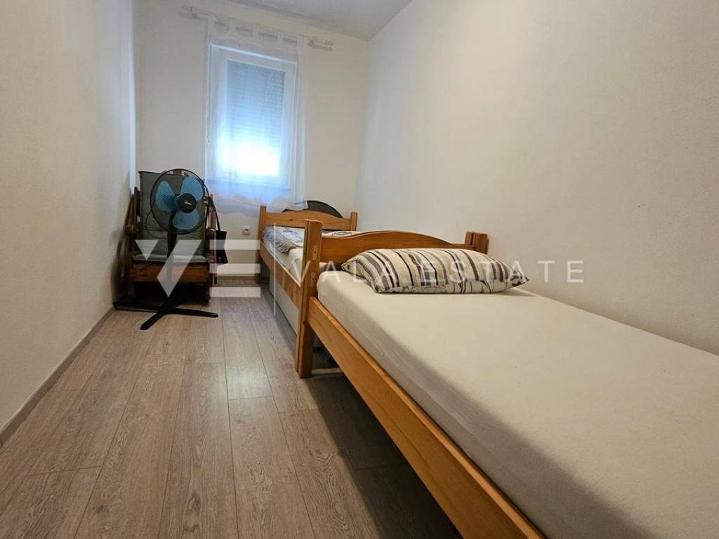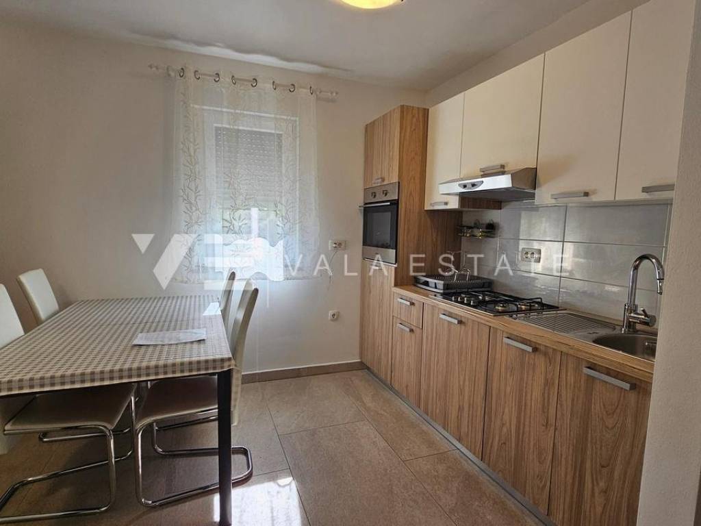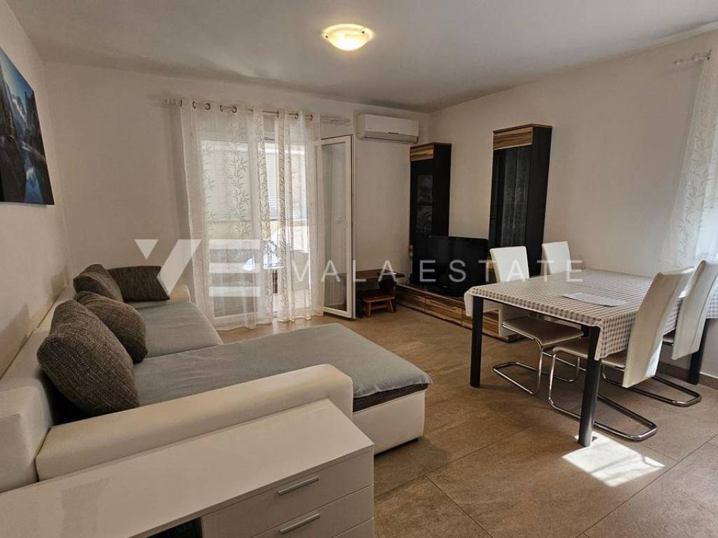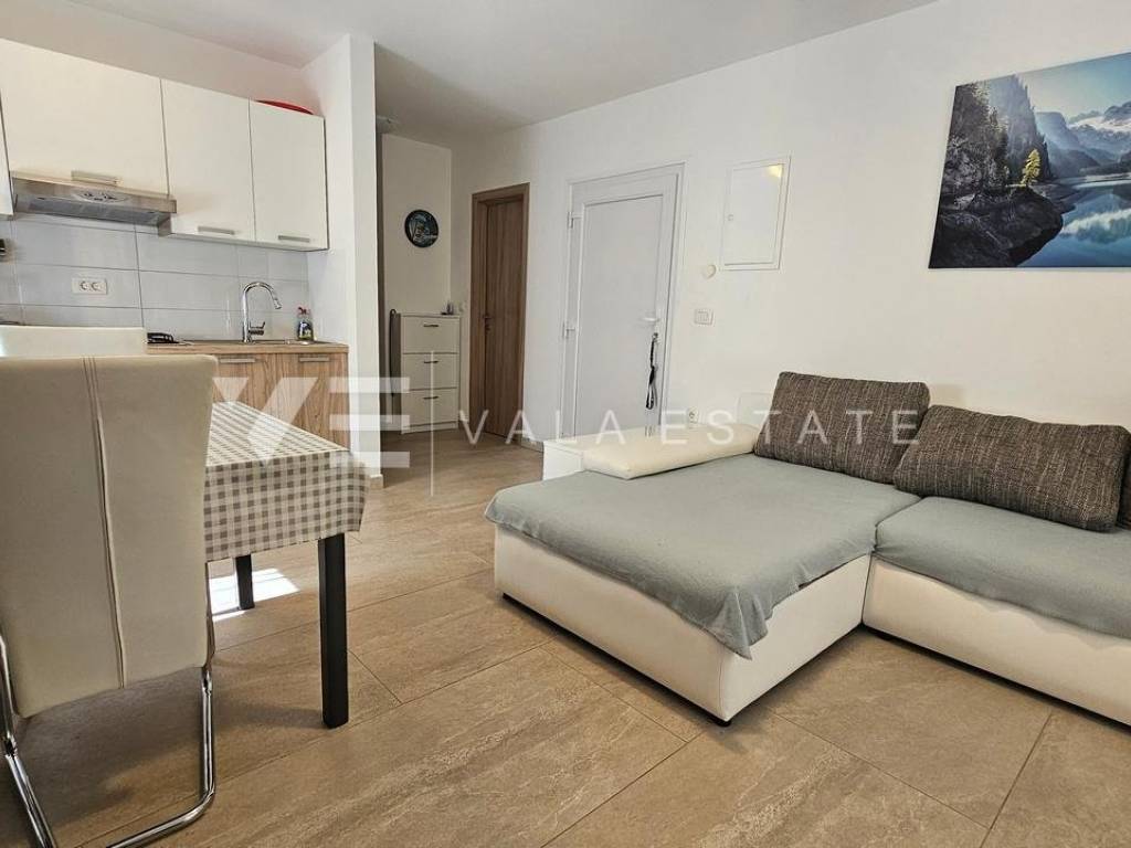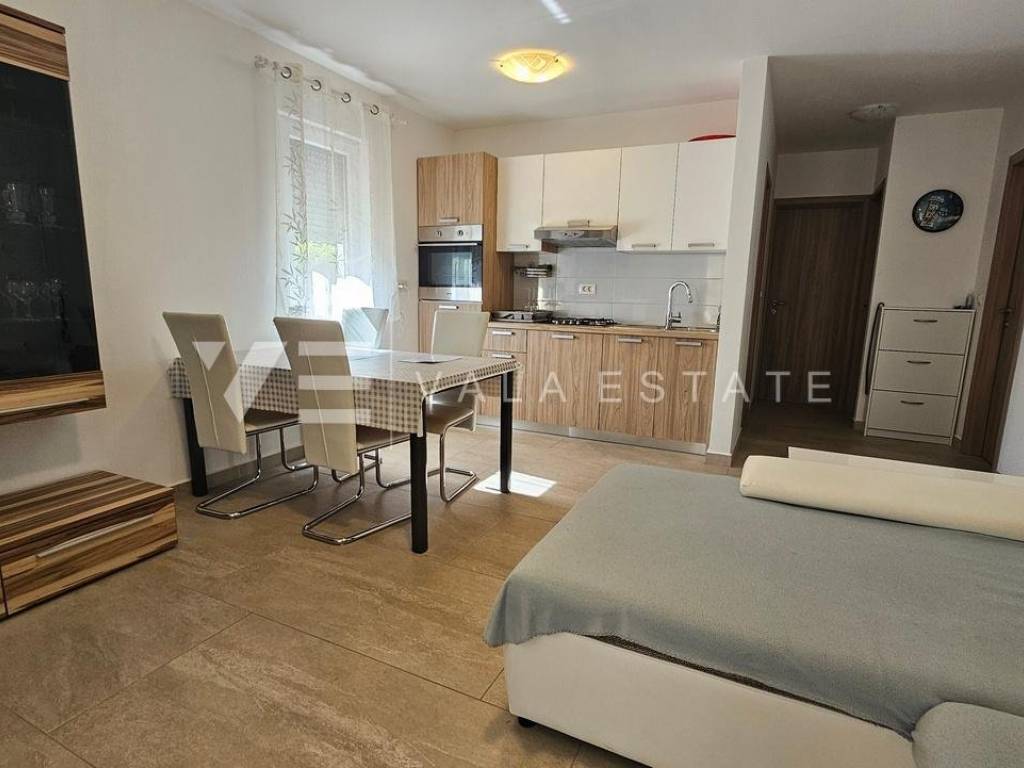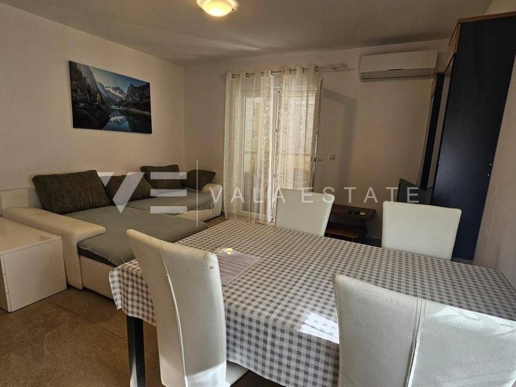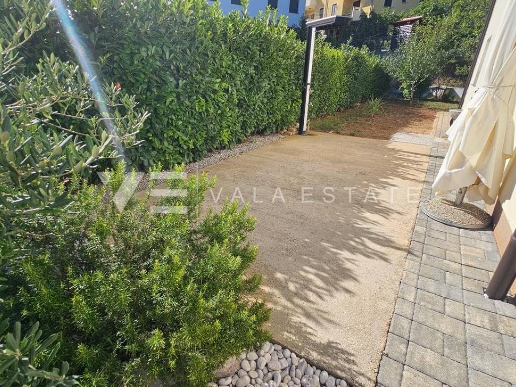 Real estate island Krk, Soline bay - for sale is a furnished apartment in a quiet location near the sea and beautiful beaches. The apartment with a total living area of 58 m2 is located on the ground floor of the apartment house and consists of an entrance area, a storage room, two bedrooms, a bathroom, a kitchen with a dining area and a living room with access to a closed terrace and a spacious, beautifully landscaped garden of 130 m2 where there is a brick barbecue and a shower. It also has one parking space in the common yard of the house. It is sold fully furnished, has proper documentation and is ready to move into.