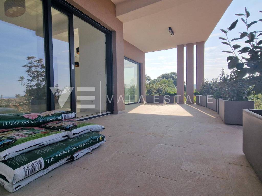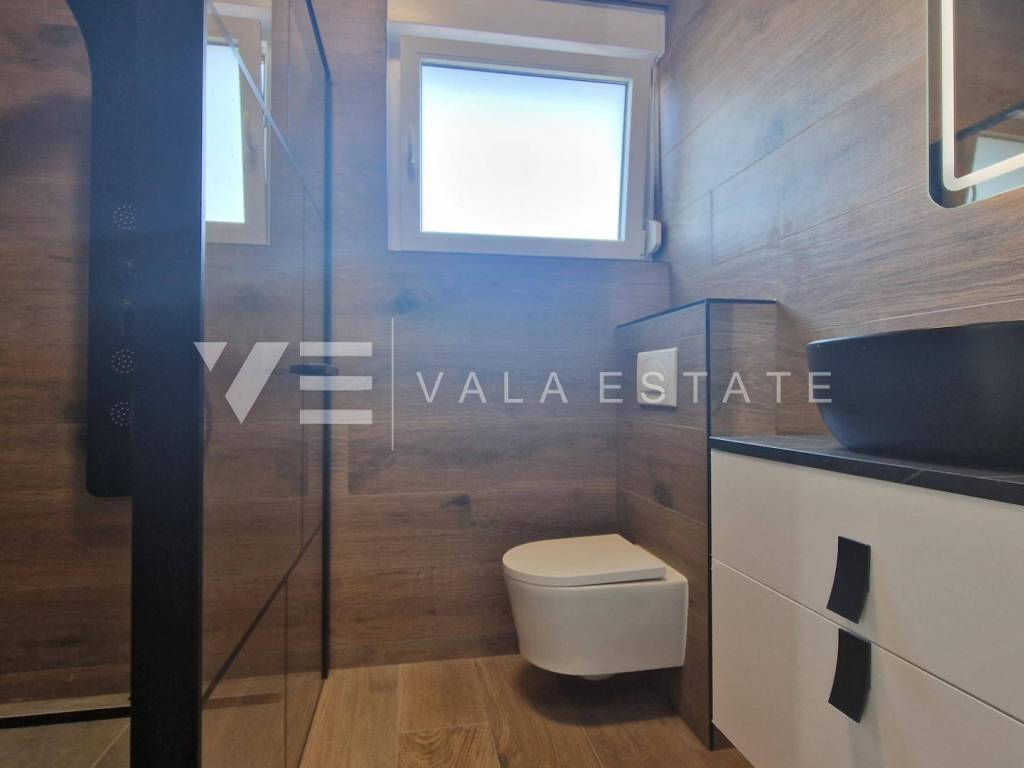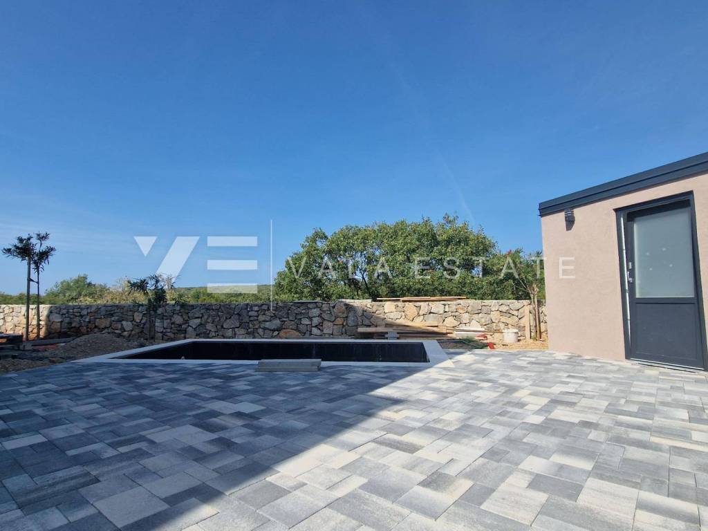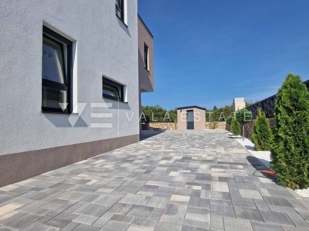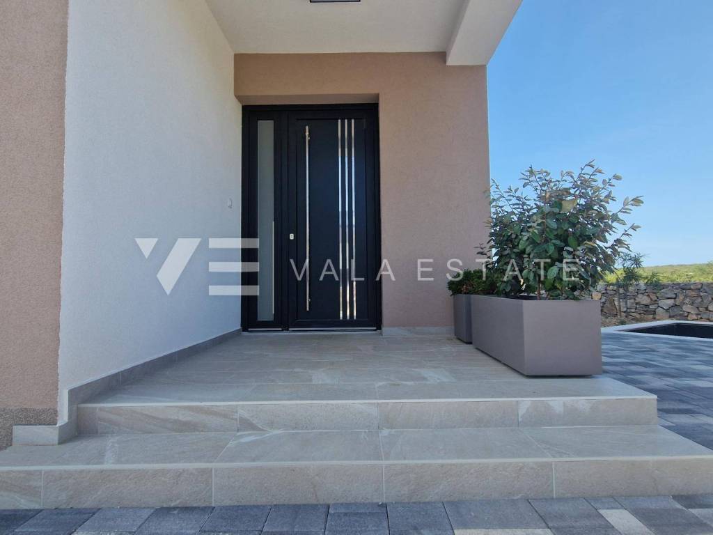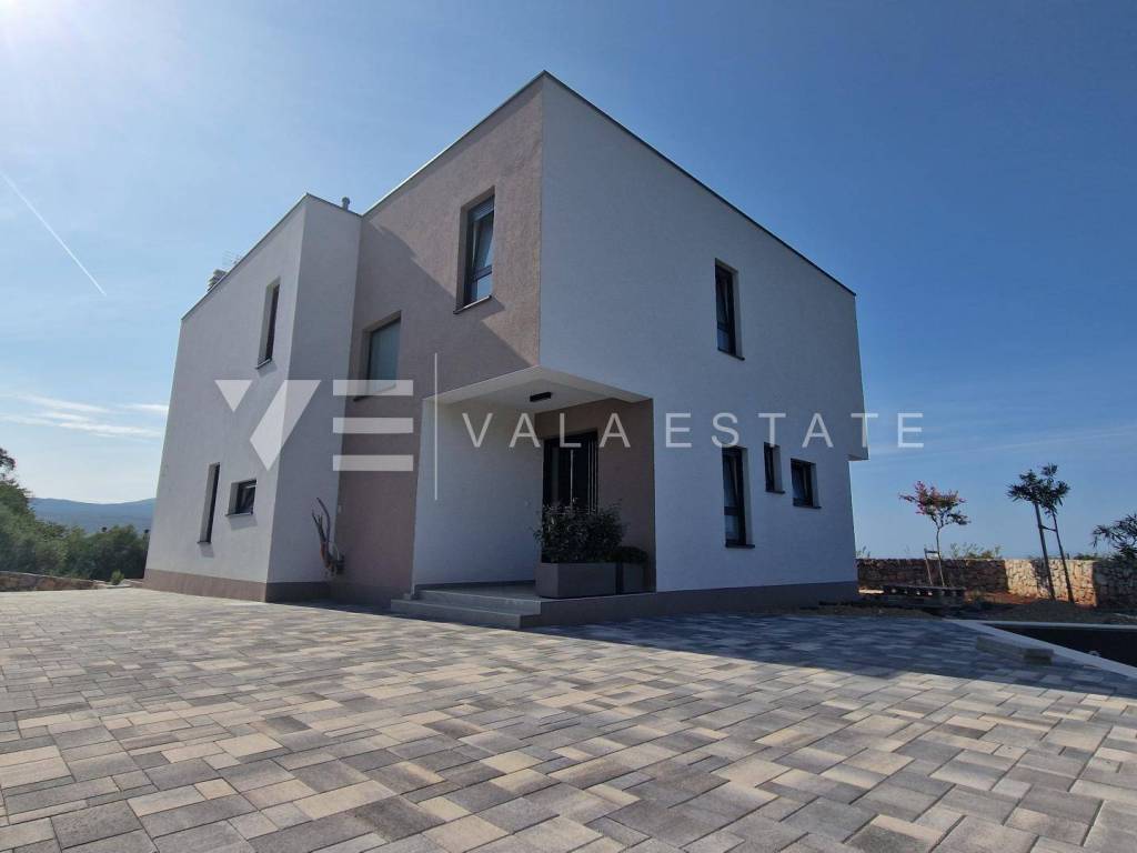 Real estate island of Krk, city of Krk and surroundings - for sale is a new luxury villa in a quiet location 1100 m from the sea and beautiful beaches. The villa was built in 2023 with high-quality construction and equipment, it has underfloor heating in the bathrooms, multi-split air conditioning in the rooms, video surveillance, high-quality PVC joinery, high-quality ceramics and sanitary ware, solar panels and a charging station for electric cars. It is spread over two floors and offers a total living area of 173 m2. The ground floor includes an entrance area, a toilet, a storage room, a sauna, a bathroom, a kitchen with a dining area and a spacious living room with access to a covered terrace. Upstairs there are three more bedrooms, each with its own bathroom and exit to the terrace with a panoramic view of the sea and a laundry room. On the beautifully landscaped and fenced garden, which provides privacy, there is a heated swimming pool, sunbathing area, garden grill, automatic irrigation and two parking spaces. This excellent property is ideal for all lovers of a peaceful vacation, but also a good opportunity for investment for tourist rental purposes.