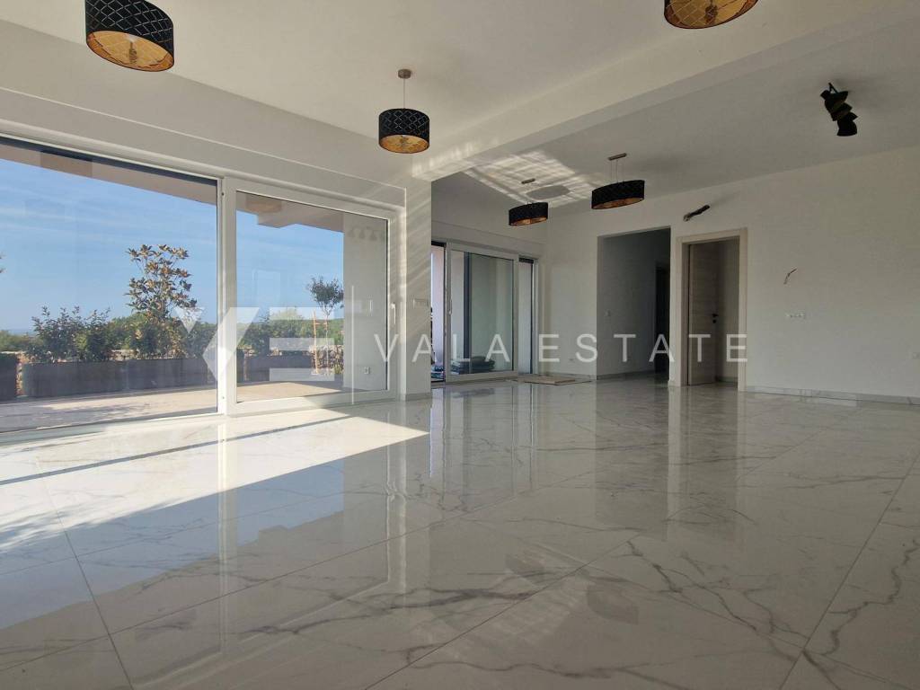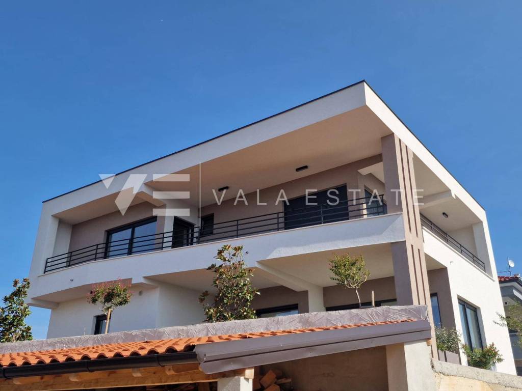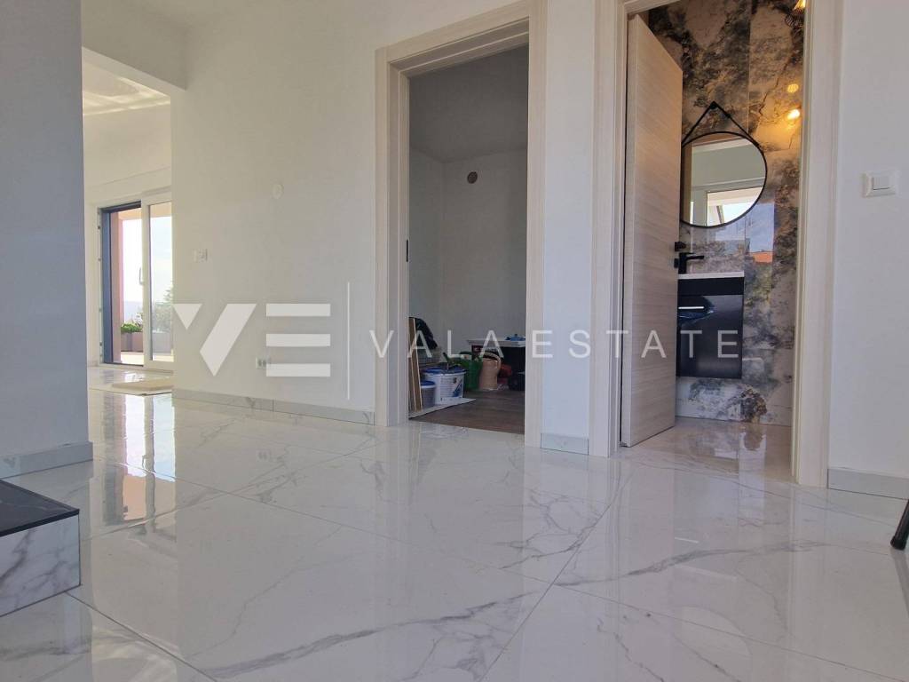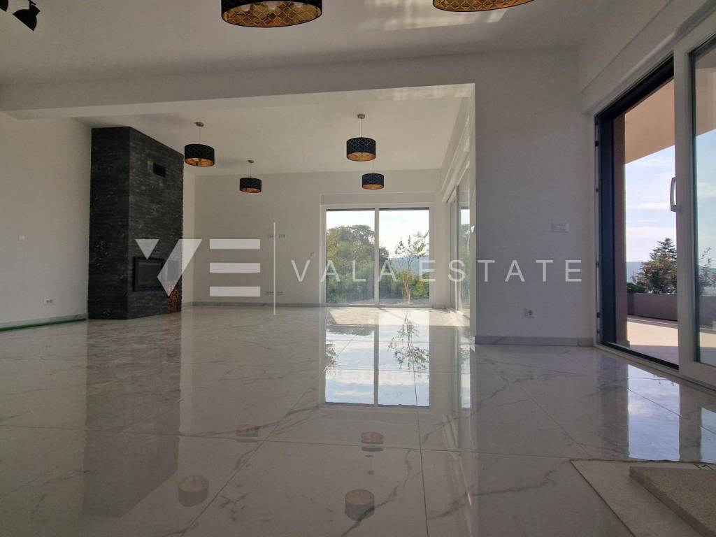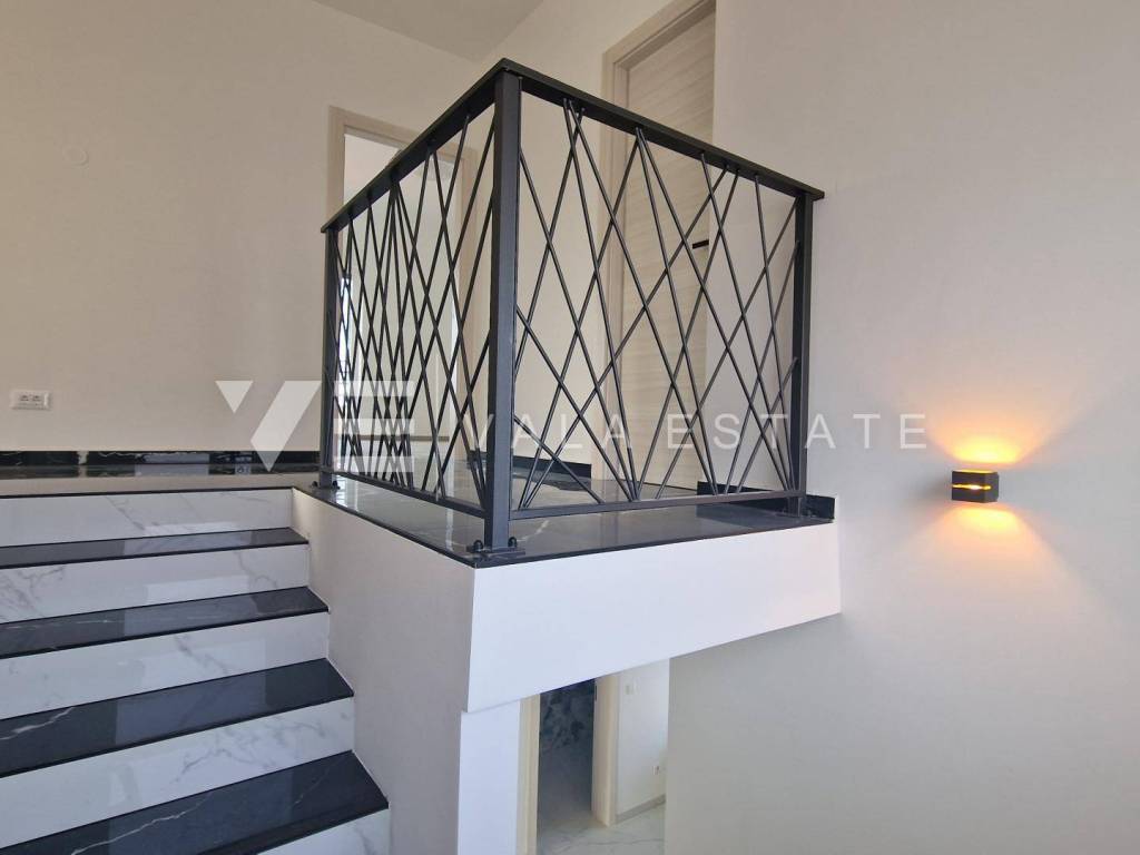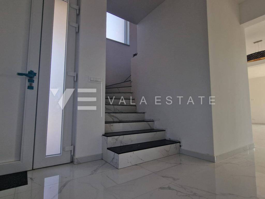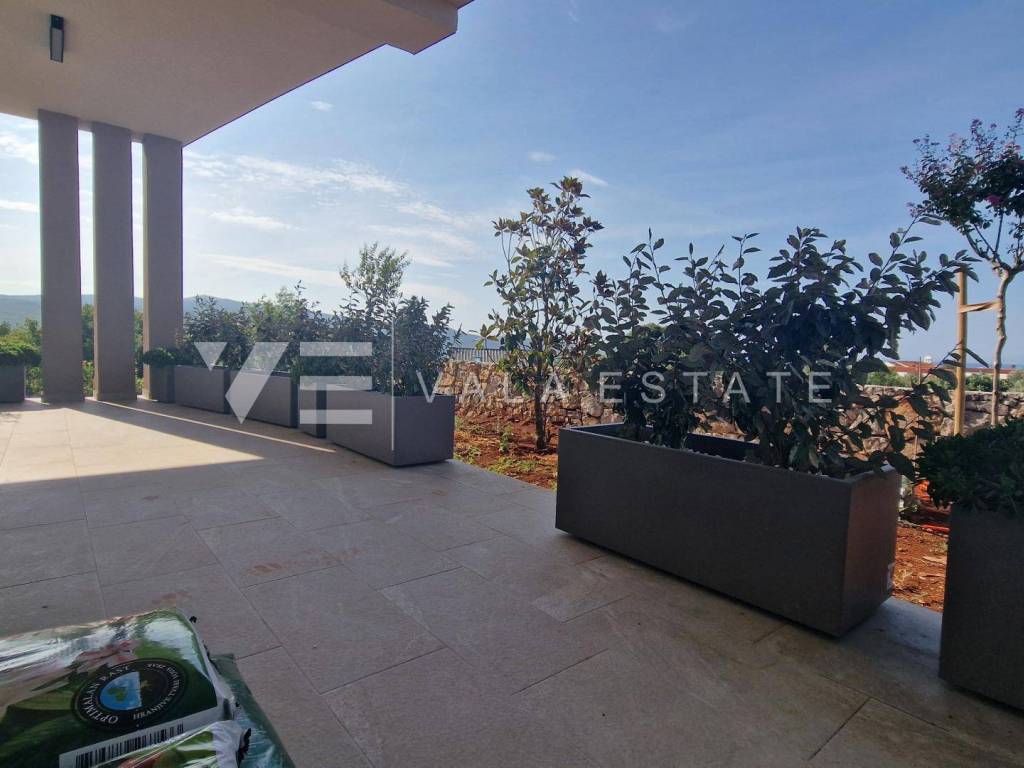 Real estate island of Krk, city of Krk and surroundings - for sale is a new luxury villa in a quiet location 1100 m from the sea and beautiful beaches. The villa was built in 2023 with high-quality construction and equipment, it has underfloor heating in the bathrooms, multi-split air conditioning in the rooms, video surveillance, high-quality PVC joinery, high-quality ceramics and sanitary ware, solar panels and a charging station for electric cars. It is spread over two floors and offers a total living area of 173 m2. The ground floor includes an entrance area, a toilet, a storage room, a sauna, a bathroom, a kitchen with a dining area and a spacious living room with access to a covered terrace. Upstairs there are three more bedrooms, each with its own bathroom and exit to the terrace with a panoramic view of the sea and a laundry room. On the beautifully landscaped and fenced garden, which provides privacy, there is a heated swimming pool, sunbathing area, garden grill, automatic irrigation and two parking spaces. This excellent property is ideal for all lovers of a peaceful vacation, but also a good opportunity for investment for tourist rental purposes.
