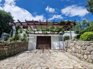 Real estate island Krk, Baška - in an attractive location only 150 m from the beautiful beach, a semi-detached house with a view of the sea and a landscaped garden is for sale. The house occupies a living area of 130 m2 and is spread over the ground floor and first floor. On the ground floor there is an entrance hall, a bathroom, a bedroom with access to a balcony and a comfortable space that combines the kitchen, dining room and living room with access to a 30 m2 terrace with a view of the sea. On the floor, which is connected by internal stairs, there is a bathroom and two bedrooms, each with its own exit to the terrace with a view of the sea. On the beautifully landscaped garden of 245 m2 there is another terrace with a barbecue and a garage of 25 m2 with two storage rooms. The house is air-conditioned, has a wood-burning fireplace, high-quality wooden joinery, a new facade was made and a new roof was installed, it is fully equipped with quality equipment and very tastefully furnished and is being sold as such. An excellent property worthy of attention!
