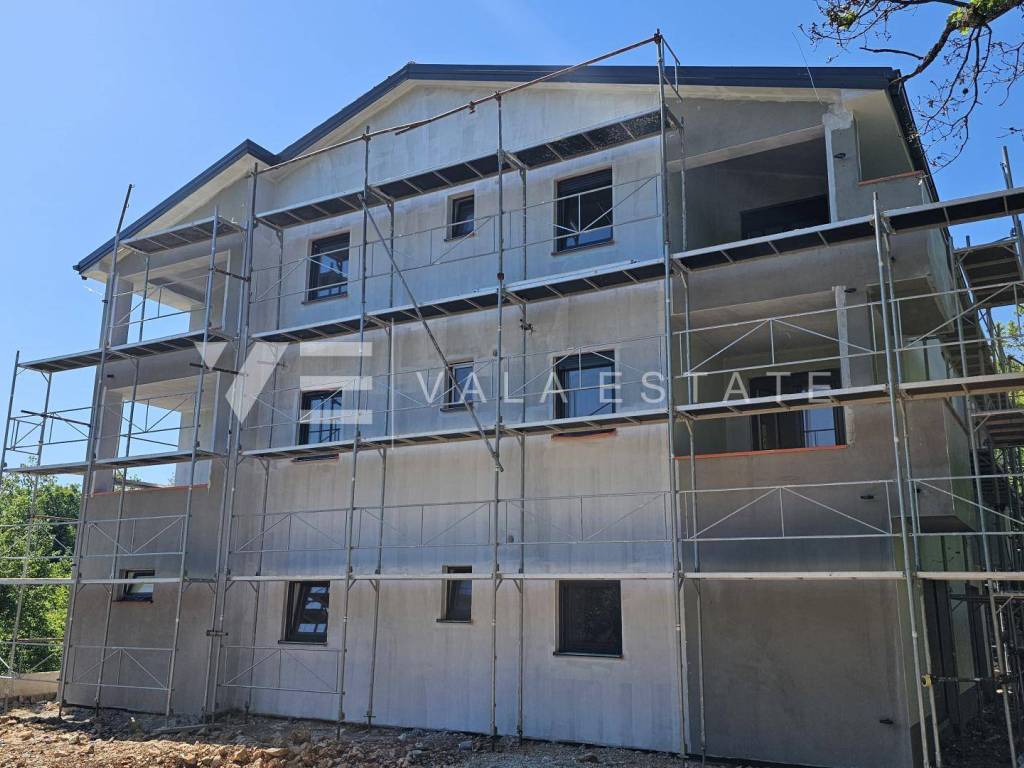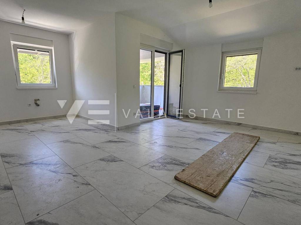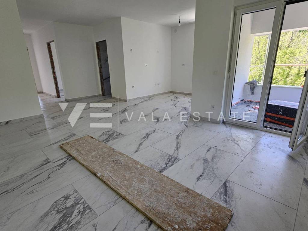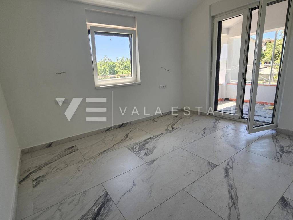 Real estate Island of Krk, Dobrinj area - for sale is an apartment on the second floor of a new building with a total living area of 71 m2 distributed in two bedrooms, bathroom, kitchen with dining room and living room and two covered terraces. He has one parking space in the common yard of the house. Quality materials and equipment are used for construction, including ceramic floor coverings, quality sanitary facilities, room air conditioning, built-in high-quality PVC carpentry with blinds and security doors. It is located in a quiet location 1500 m from the sea and beautiful beaches. The property is currently under construction, and the planned completion is expected at the end of 2025. VAT is included in the price and the buyer does not pay real estate sales tax.