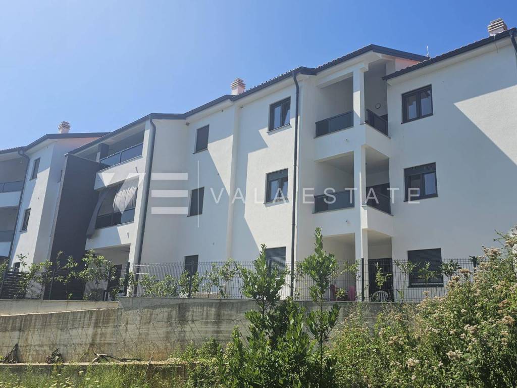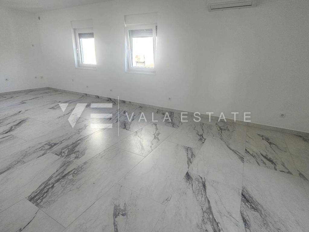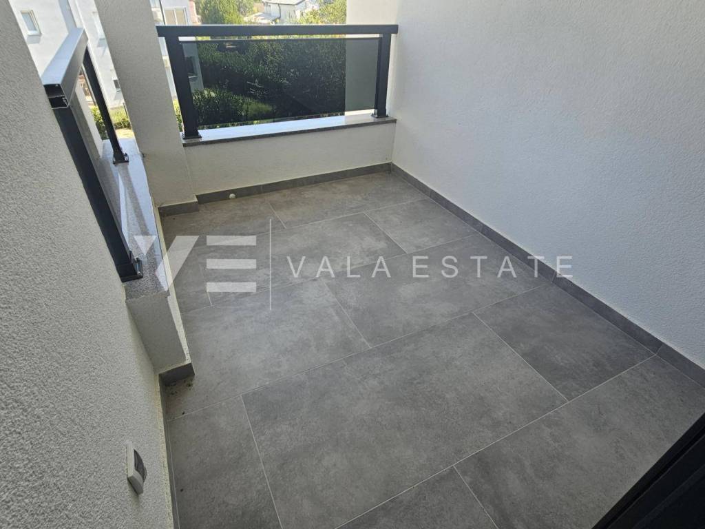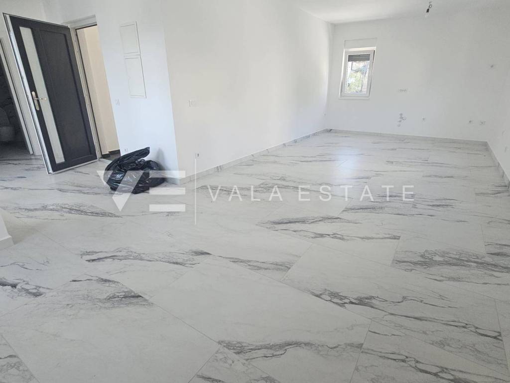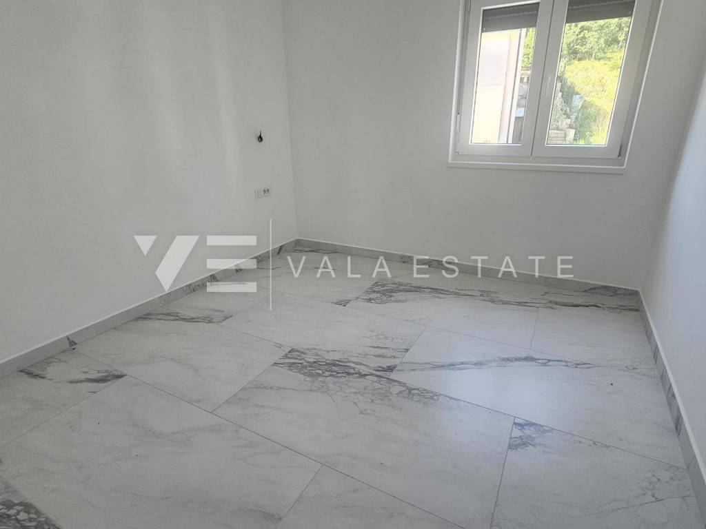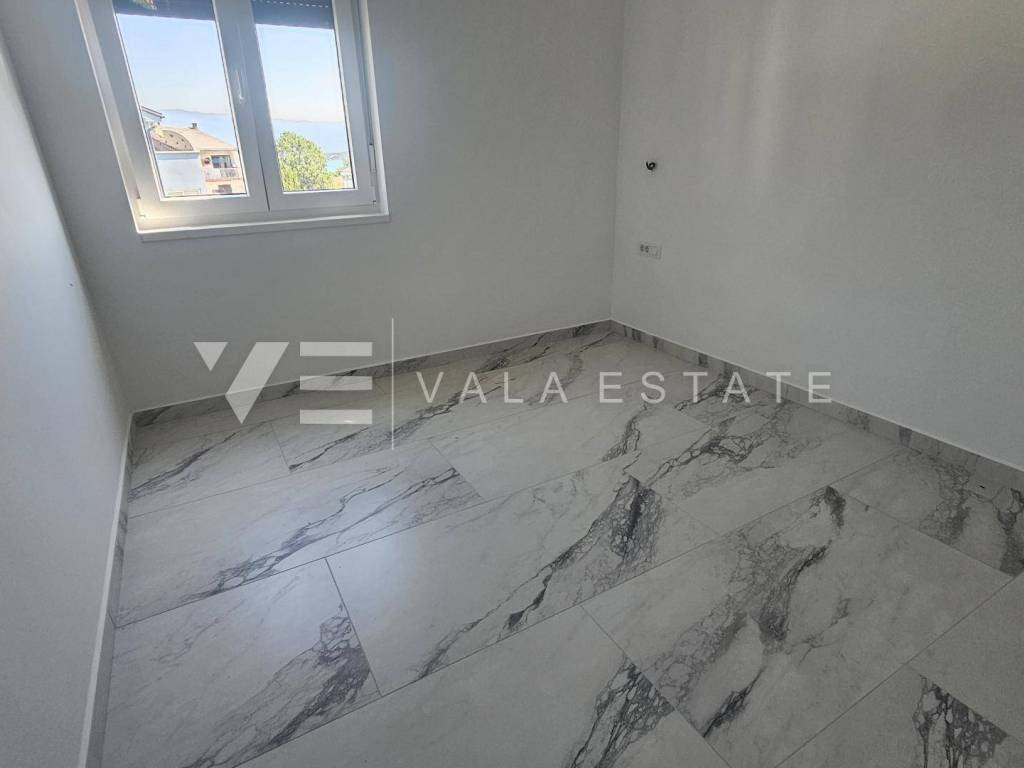 Real estate Island Krk, Soline bay - for sale is an apartment with an excellent layout on the first floor of a new building consisting of three buildings in a row with a total of nine residential units. The apartment has a living area of 71 m2 and consists of an entrance hall, two bedrooms, a bathroom, a covered terrace with a view of the sea, a kitchen with a dining room and a living room. It has one parking space in the common courtyard of the building. Quality materials and equipment are used for construction, including ceramic floor coverings, quality sanitary facilities, room air conditioning, built-in high-quality PVC carpentry with blinds and burglar-proof doors. It is located in a quiet location only 450 m from the sea and beautiful beaches. VAT is included in the price and the buyer does not pay real estate sales tax.