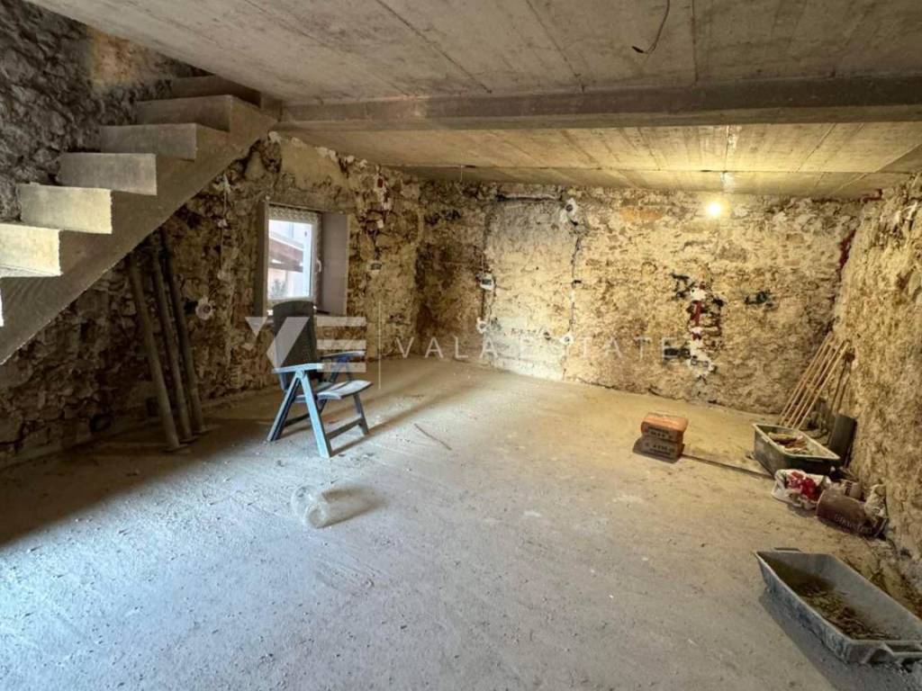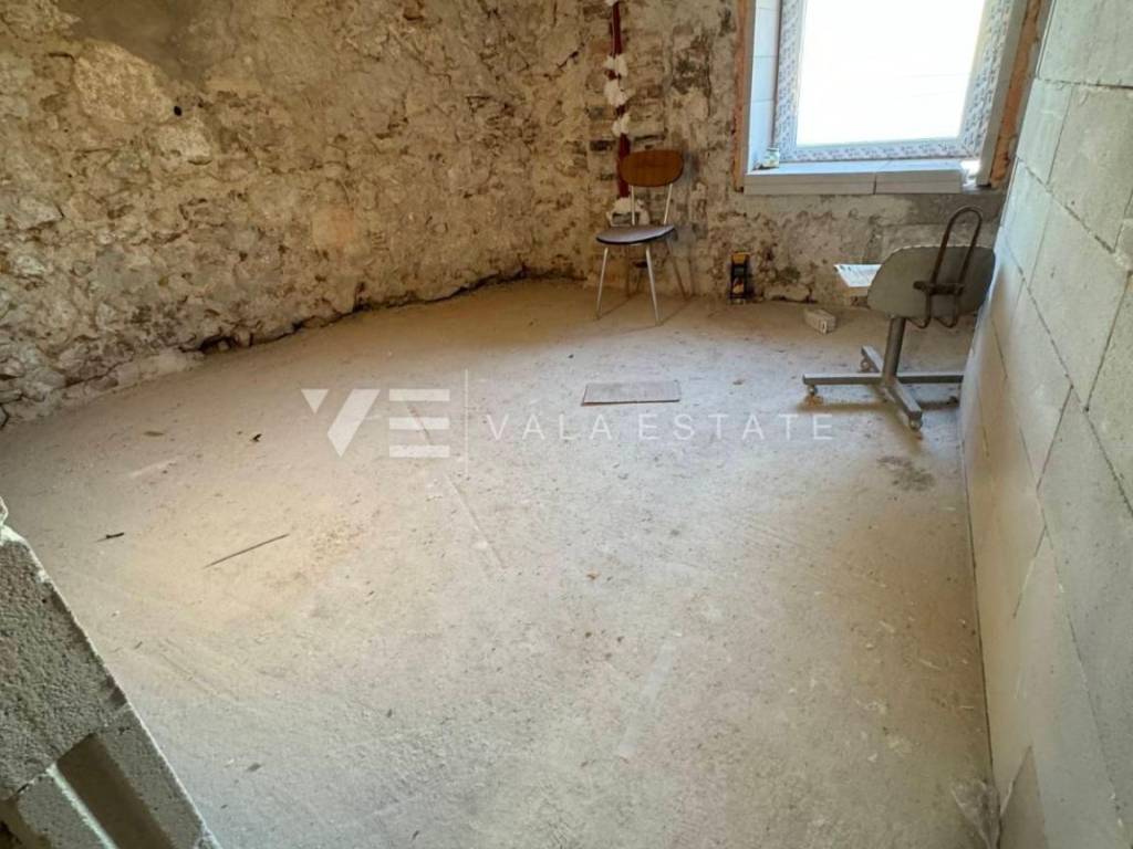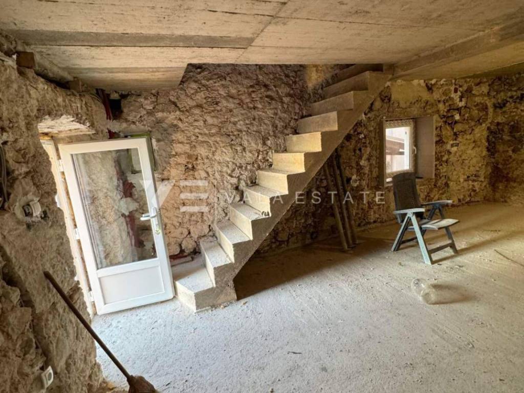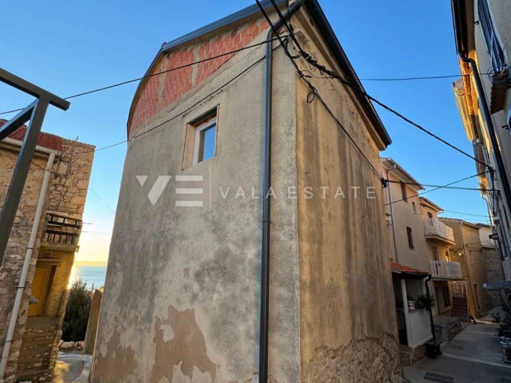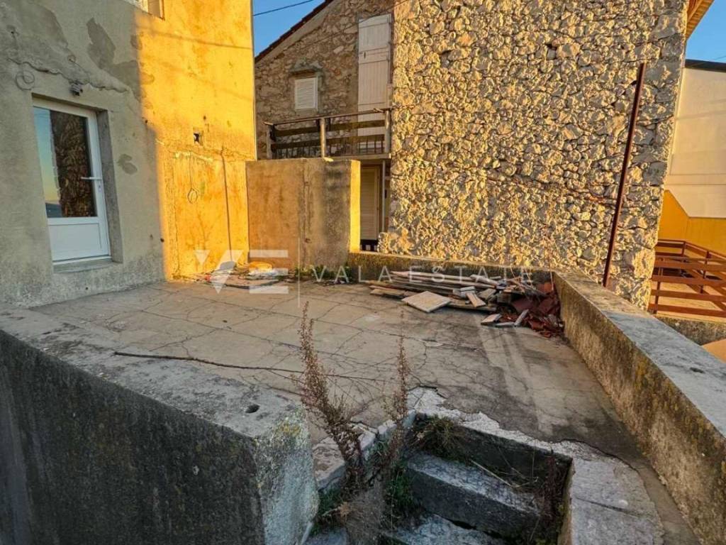 Real estate island of Krk, Punat area - for sale a detached stone house only 50m from the sea and beautiful beaches. Renovation of the house has started with new mezzanine concrete slabs, a new roof, new PVC carpentry and partition walls, as well as electricity, while the water connection still needs to be run through the floors. The layout of the house consists of four floors, namely the basement with two separate taverns, the upper ground floor with access to the terrace and the planned living room and kitchen, the first floor with two bedrooms and a bathroom, and a high attic as an additional room. Access by vehicle is possible to the house itself, but a parking space is not provided.