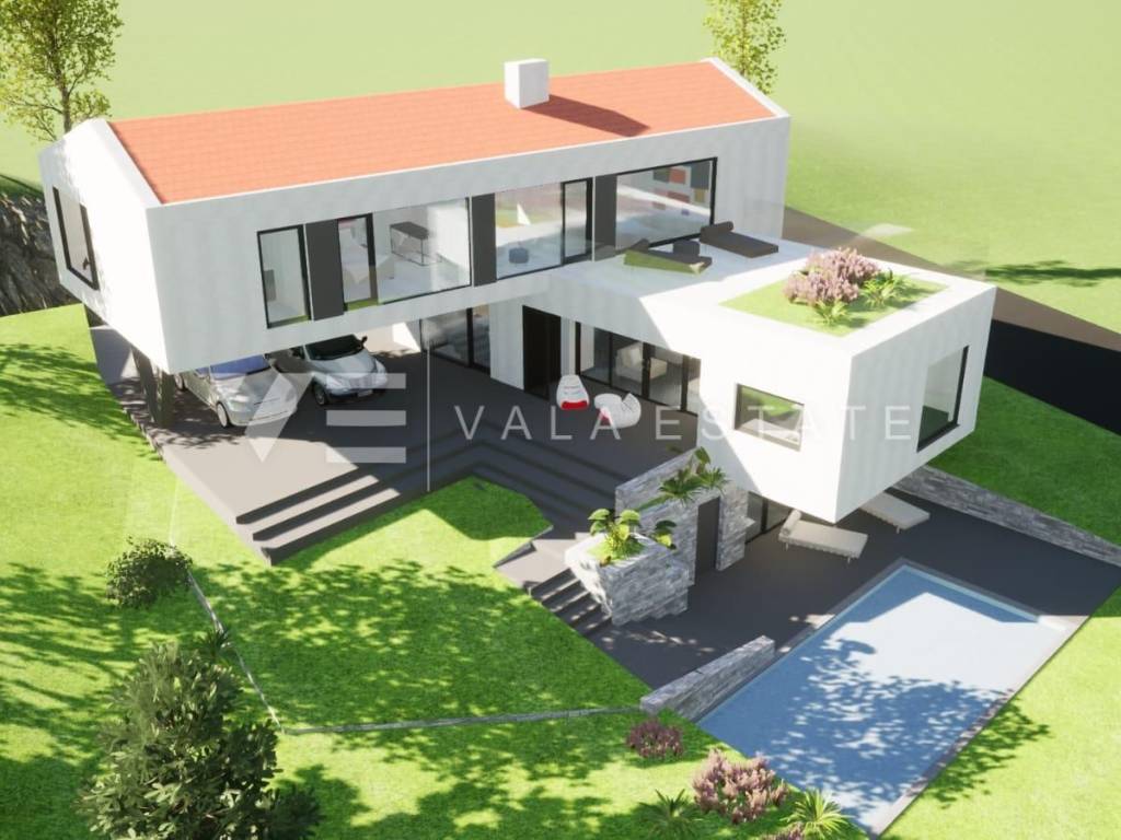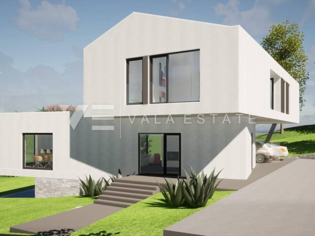 Nekretnine otok Krk, Vrbnik - na prodaju je građevinsko zemljište ukupne površine 1231 m2 sa idejnim projektom za izgradnju moderne ville sa bazenom. Villa je raspoređena na suteren, prizemlje i kat ukupne stambene površine 315 m2. U suterenu je predviđena strojarnica, bazen, sauna, kupaonica i vešeraj. U prizemlju je garaža, ulazni prostor, garderoba, toalet, kuhinja i blagovaona te dnevni boravak sa izlazom na terasu. Na katu su predviđene tri spavaće sobe svaka sa svojom kupaonicom i velika terasa sa lijepim pogledom na more. Sve etaže povezane su liftom i unutarnjim stubištem. Na prostranoj, uređenoj i ozelenjenoj okućnici ville smješten je bazen, sunčalište i nekoliko parkirnih mjesta. Lokacija je atraktivna, u blizini lijepih plaža i centra sa svim sadržajima.