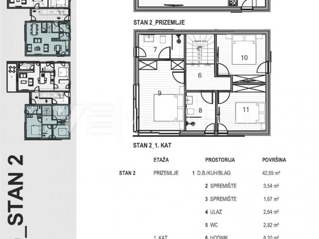 Real estate island Krk, city of Krk - in a very attractive location in the city of Krk, only 650 m from the sea and beaches, a new modern apartment is for sale located in a new urban villa with a total of four residential units. The two-story apartment with a total living area of 106.26 m2 comprises the ground floor, which consists of an entrance area, two storage rooms, a toilet, a kitchen with a dining room and a living room with access to a covered terrace. Internal stairs lead to the first floor, where there are three bedrooms, two bathrooms, a hallway and a covered terrace with a view of the sea. High-quality construction and equipment, first-class ceramics and sanitary ware, aluminum joinery, underfloor heating and multisplit air conditioning are the main features of this luxurious new building. It has two parking spaces in the common courtyard of the building. The property is currently in the initial phase of construction, and the planned completion for occupancy is by the end of 2023.