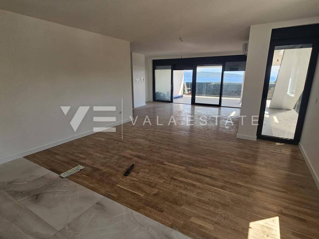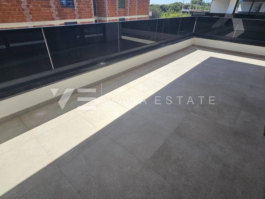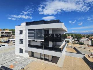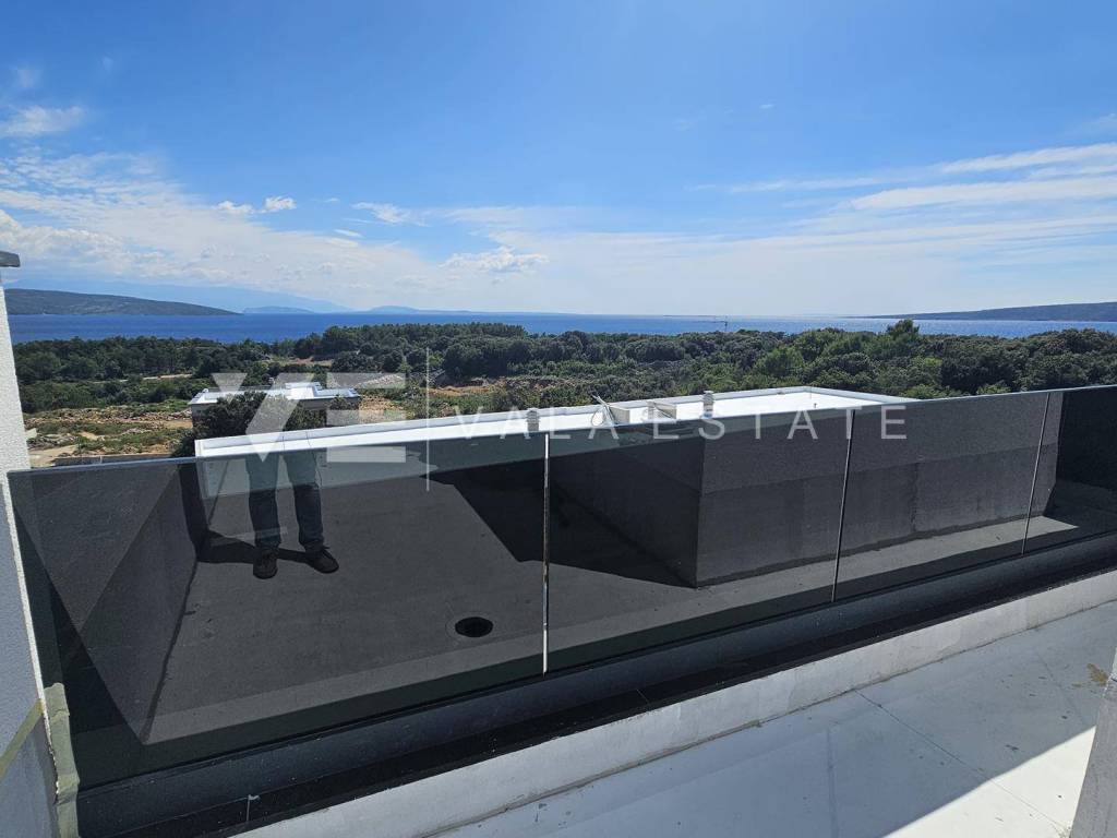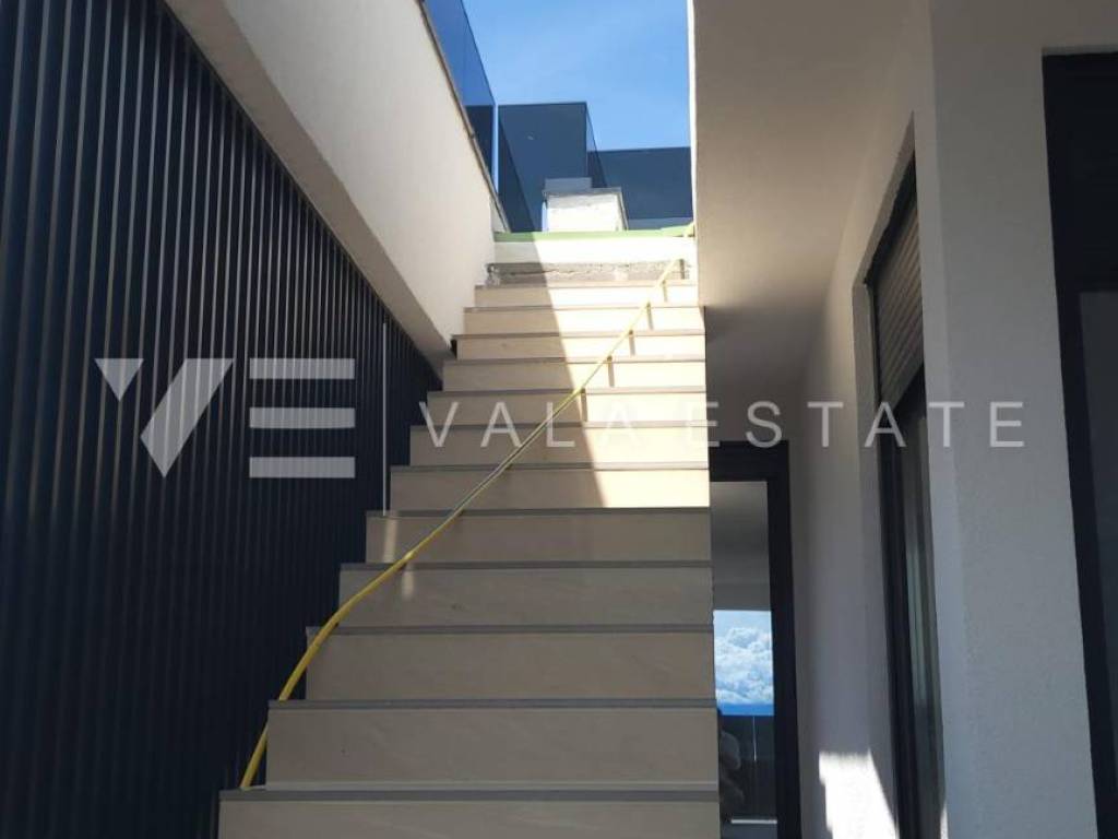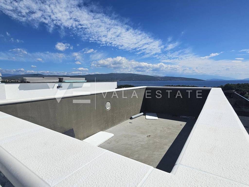 Real estate island of Krk, city of Krk - for sale is a two-story apartment with a total area of 160m2 on the first and second floor of a new building with a total of four apartments. An external staircase leads to the first floor, where there is an entrance hall, two bathrooms and three bedrooms that lead to a covered balcony with an open view of the sea. Internal stairs lead to the second floor, where there is a kitchen with a dining room, a toilet, and a living room with access to a terrace with a view of the sea. The staircase leads to the roof terrace of 60m2 where there is a swimming pool of 16m2 and a sunbathing area. High-quality construction and equipment. The apartment is located in an excellent location in the city of Krk, only 600 m from the center, beaches and all amenities. The property has two parking spaces. The apartment is under construction and the completion of the works is planned for the summer of 2023.