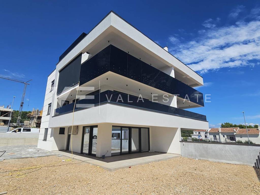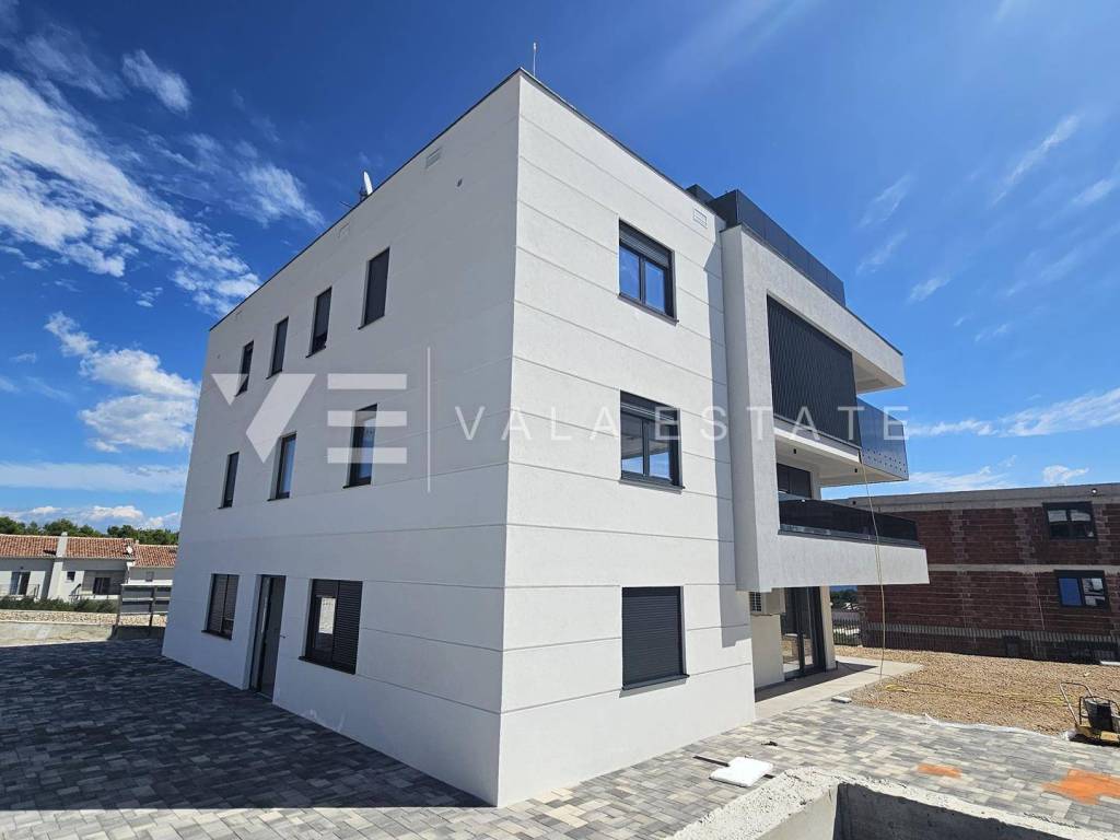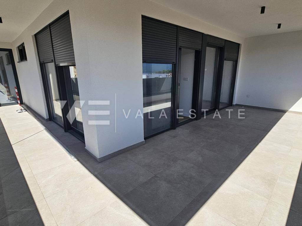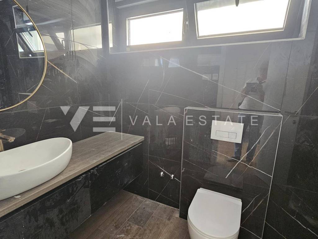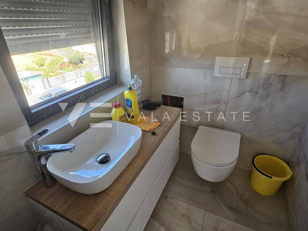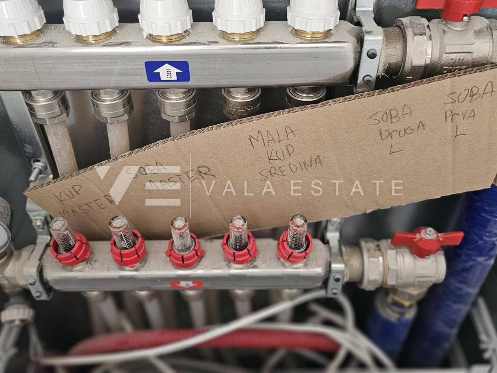 Real estate island of Krk, city of Krk - for sale is a two-story apartment with a total area of 160m2 on the first and second floor of a new building with a total of four apartments. An external staircase leads to the first floor, where there is an entrance hall, two bathrooms and three bedrooms that lead to a covered balcony with an open view of the sea. Internal stairs lead to the second floor, where there is a kitchen with a dining room, a toilet, and a living room with access to a terrace with a view of the sea. The staircase leads to the roof terrace of 60m2 where there is a swimming pool of 16m2 and a sunbathing area. High-quality construction and equipment. The apartment is located in an excellent location in the city of Krk, only 600 m from the center, beaches and all amenities. The property has two parking spaces. The apartment is under construction and the completion of the works is planned for the summer of 2023.