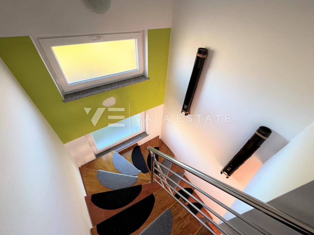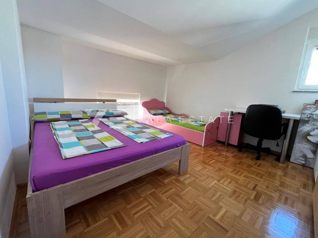 Real estate island of Krk, city of Krk - for sale is a four-room two-story apartment on the first floor and a high attic with a total area of 83 m2. On the first floor there is a bedroom, a kitchen with a dining room that opens onto a balcony, and a bathroom. Internal stairs lead to the second floor of the apartment in the high attic, which consists of three bedrooms and a bathroom. The apartment is fully furnished and ready to move into. The property has a 19m2 garden/courtyard and two parking spaces. The building is located 800 m from the sea and the first beaches. Proper documentation, ready to move in immediately.