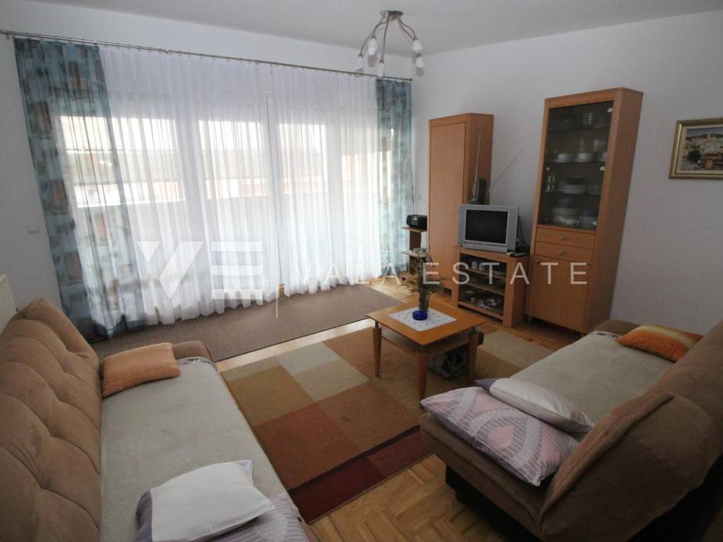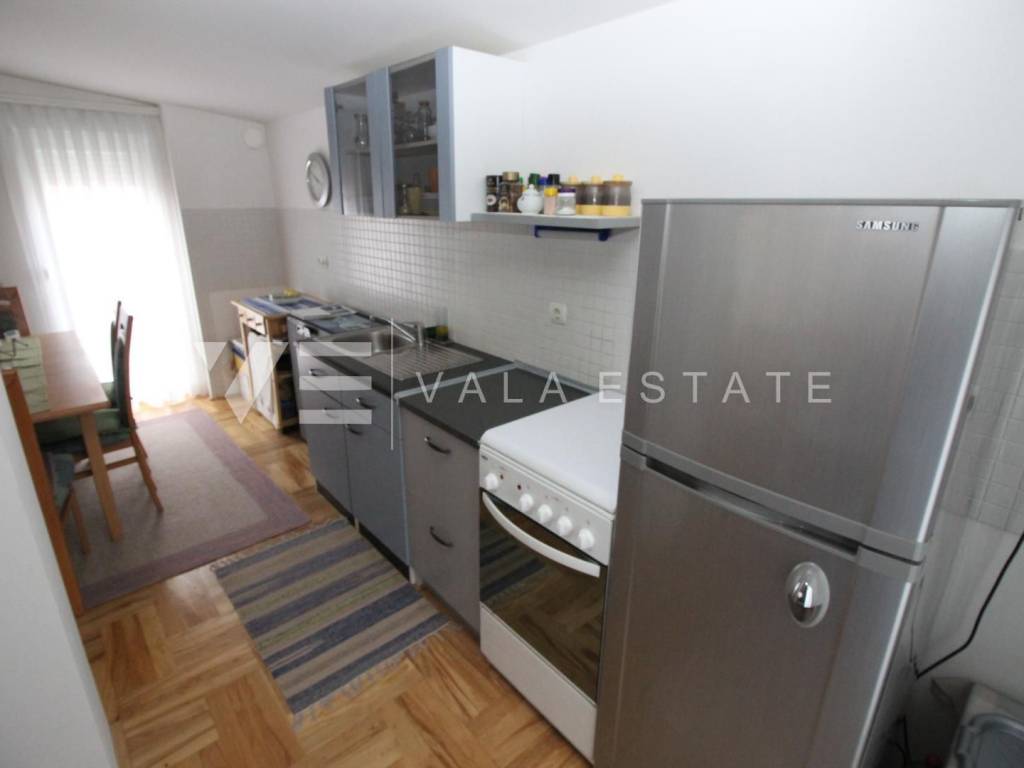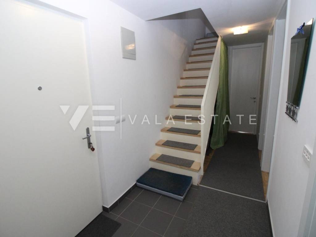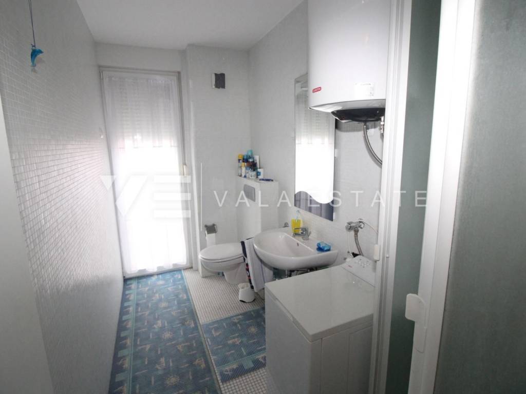 We have a duplex apartment located on the first floor and in the attic of an apartment house with 3 residential units. The apartment has 85,15 m2 and consists of three bedrooms, one bathroom, living room, kitchen, dining area and a balcony with a partial view of the sea. Quality construction, air conditioner, PVC joinery. The apartment has one parking space and a courtyard. 1000 m from the sea.