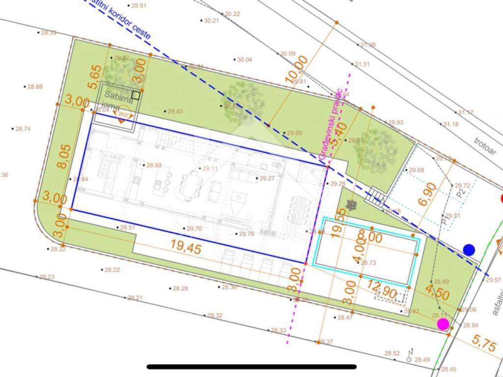 Prodaje se građevinsko zemljište sa ishodovanom građevinskom dozvolom za gradnju vile sa bazenom (plaćeni komunalni i vodni doprinosi). Površina zemljišta iznosi 575m2. Sa terena se pruža otvoreni pogled na more. Udaljenost do plaže cca. 300m.
