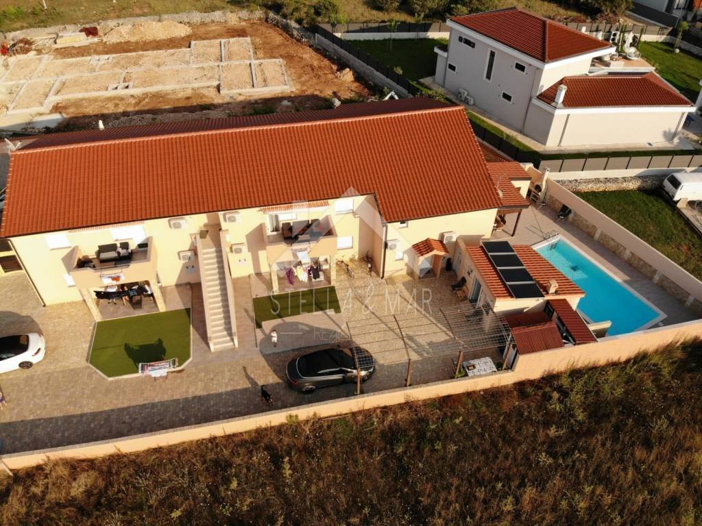 A two-story apartment with a swimming pool is for sale in an urban settlement in Zaton near the town of Nin. All facilities necessary for tourism and life are located in the immediate vicinity. Detailed description of the property below: