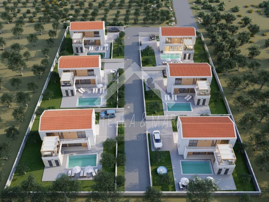 Prodaju se građevinske parcele za izgradnju 6 vila s bazenom, ishođenim i pravomoćnim građevinskim dozvolama, plaćenim priključcima električne energije.